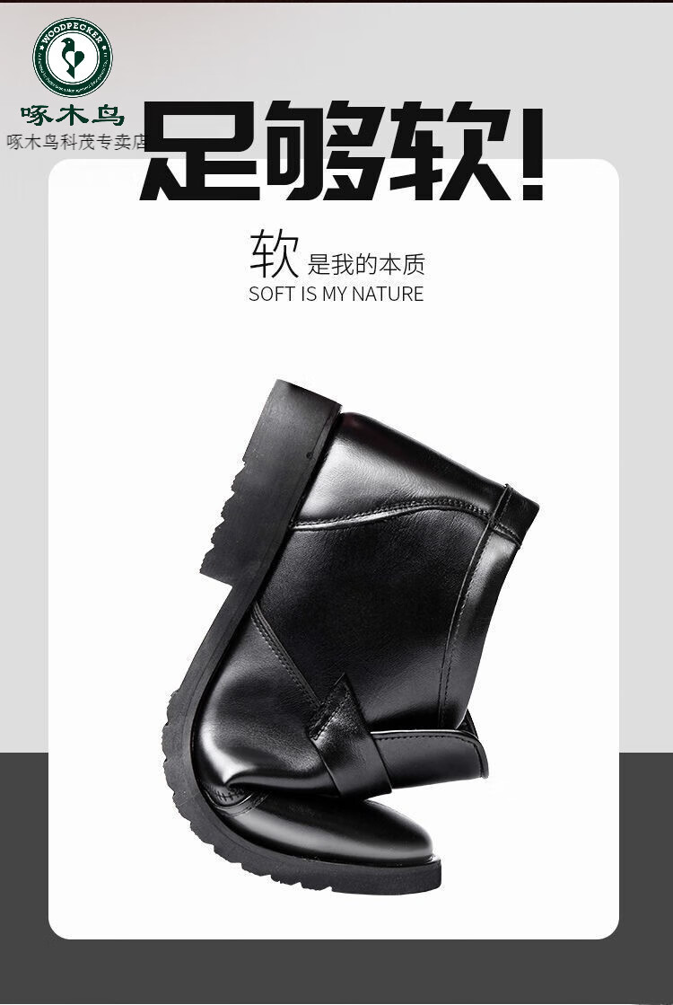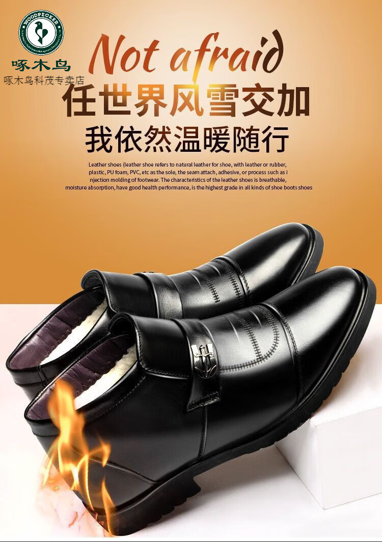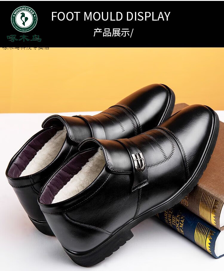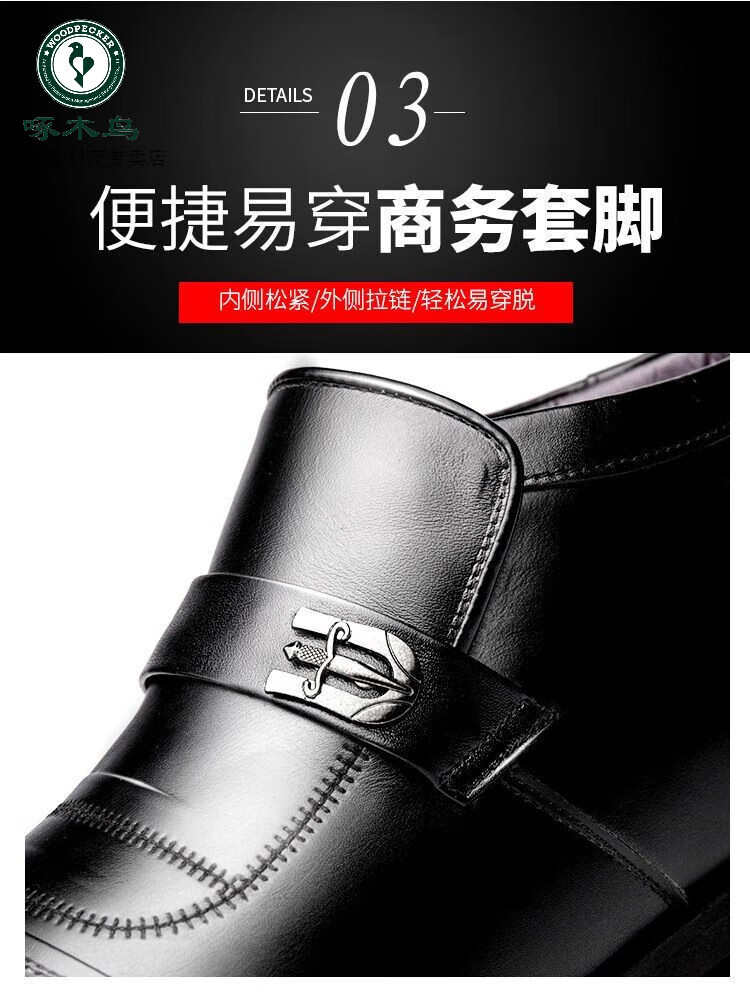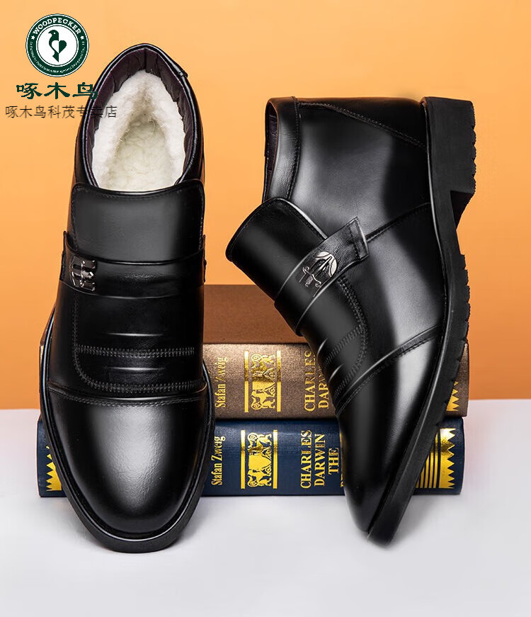 Woodpecker genuine leather large cotton shoes for men in winter plus velvet to keep warm and waterproof Northeastern cotton leather shoes genuine leather middle-aged and elderly dad's shoes 9900 black 42 Woodpecker brand