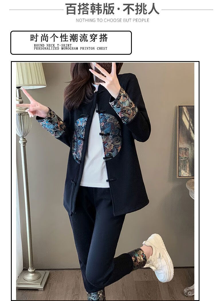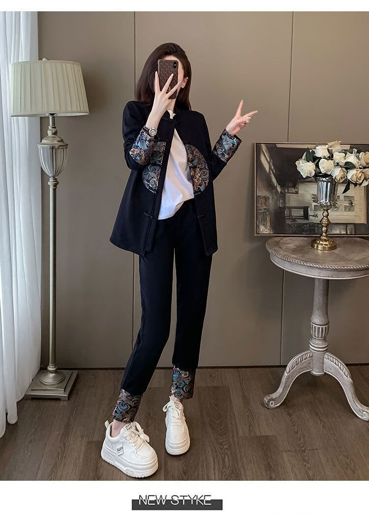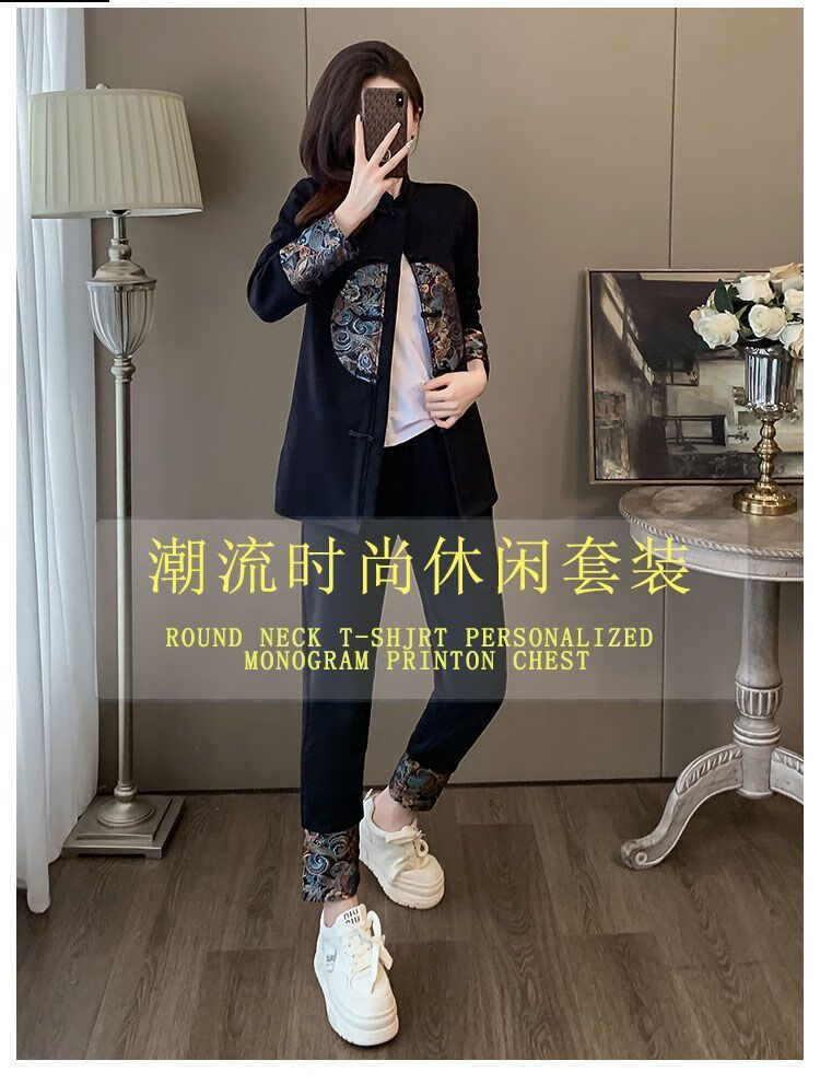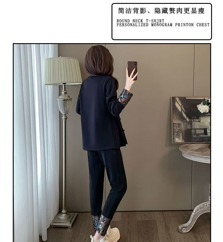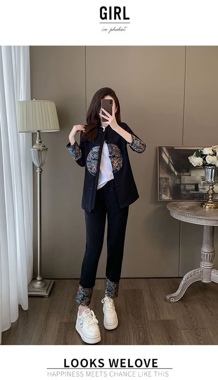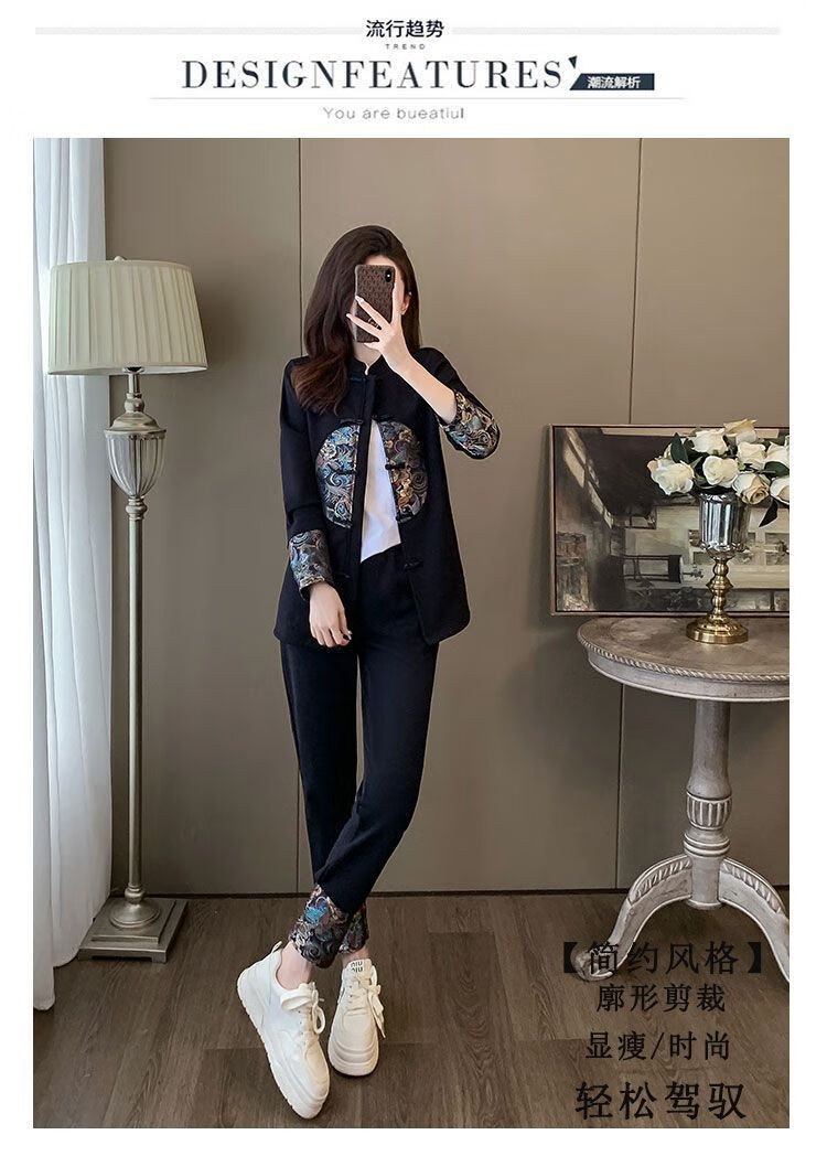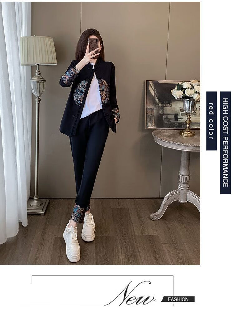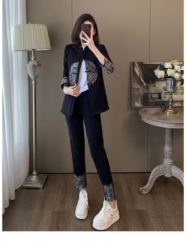Fenling Herbst-Outfits Damenanzüge 40 bis 50 Jahre alt, hochwertiger, leicht fetter Tang-Anzug, neuer chinesischer Stil, Nationalstil 2024, neuer Frühlingsanzug 1048#, komplettes Set aus Hosen und Oberteil 4XL (empfohlen 160–180 Jin Jin entspricht 0,5 kg)