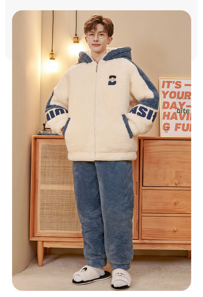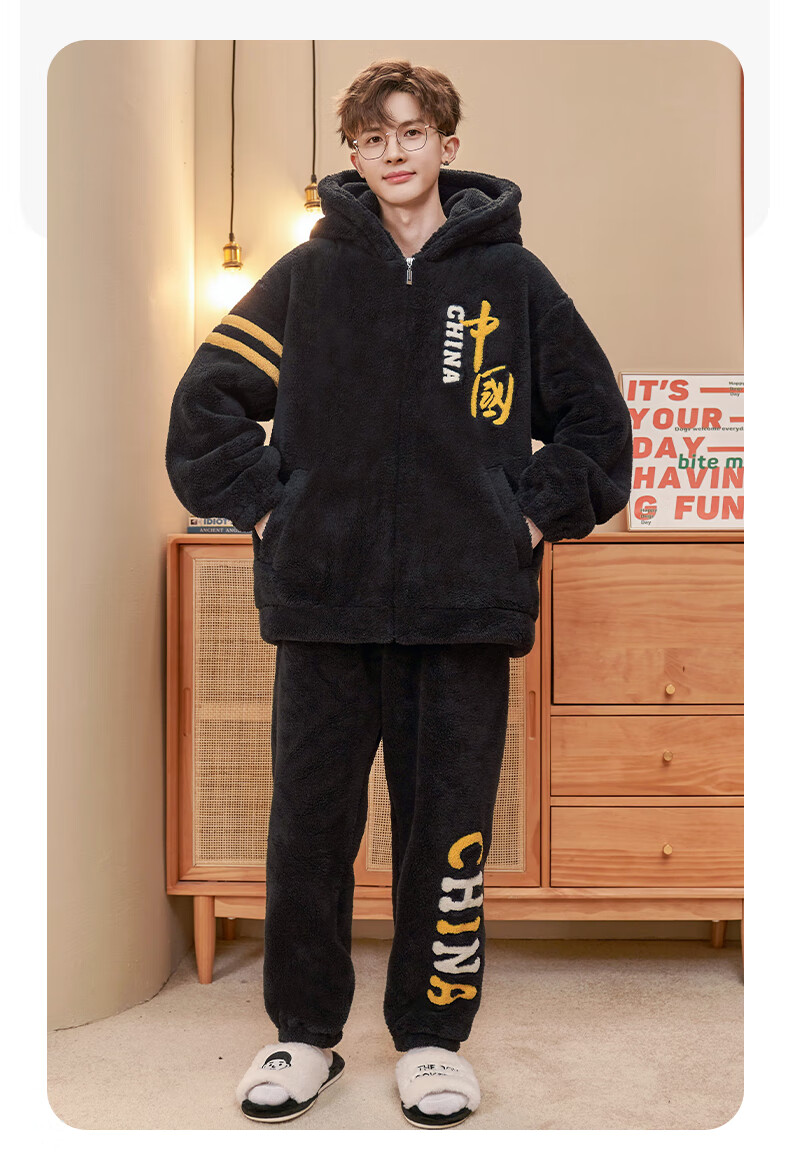 NO DIE Pajamas Men's Coral Velvet Winter Thickened Velvet 2025 New Youth Large Size Autumn and Winter Home Clothing for Boys 829 Buttons