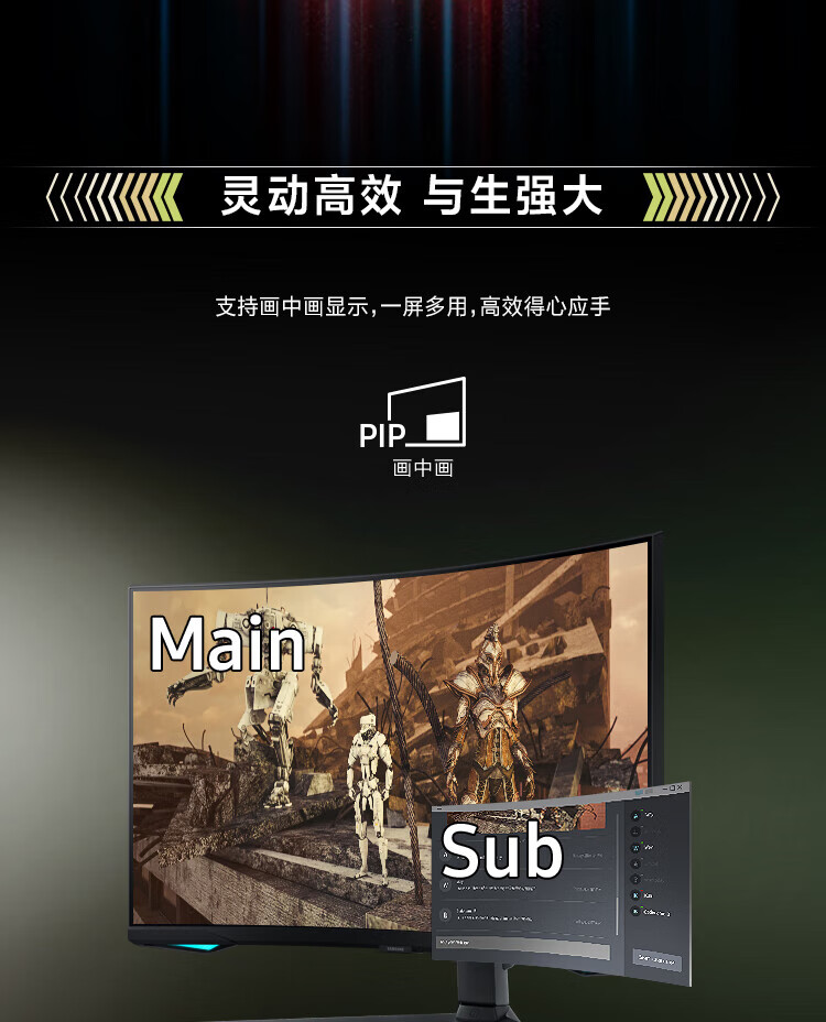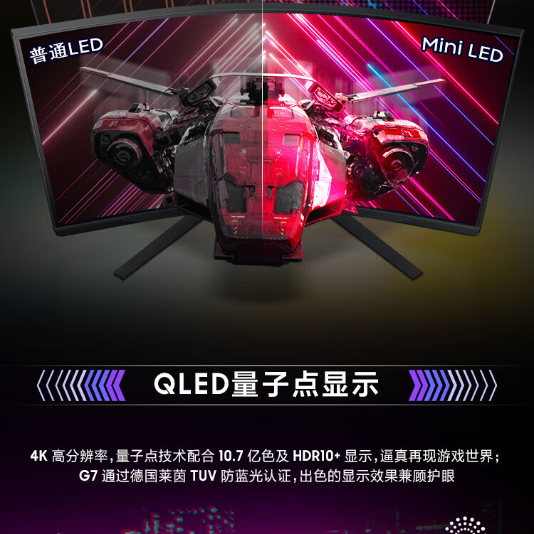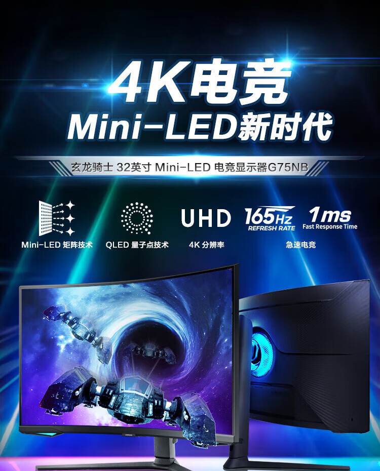 三星(SAMSUNG)玄龙骑士G8 32英寸 4K Mini LED 高刷游戏电竞曲面显示器 升降旋转 送无忧服务 32’4K’240HZ高刷S32BG854NC关