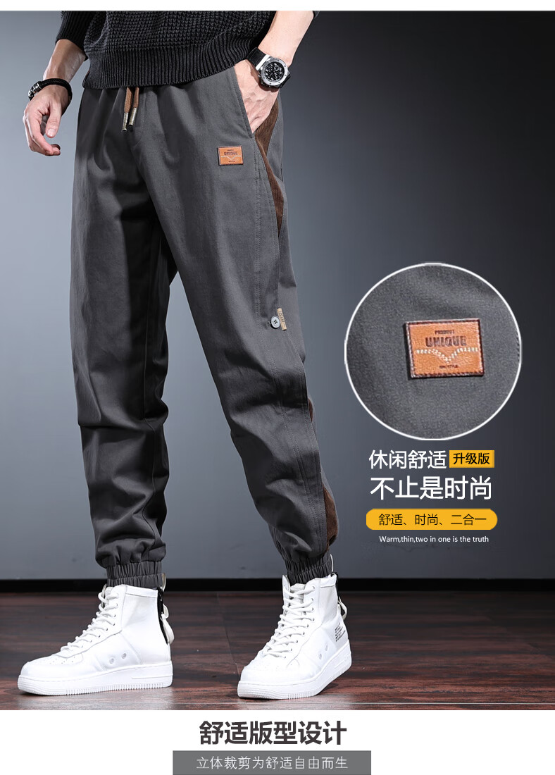 Jeanswest workwear casual pants for men in spring and autumn, loose-fitting men's pants, versatile design, long pants, personality, handsome harem pants, gray 3XL