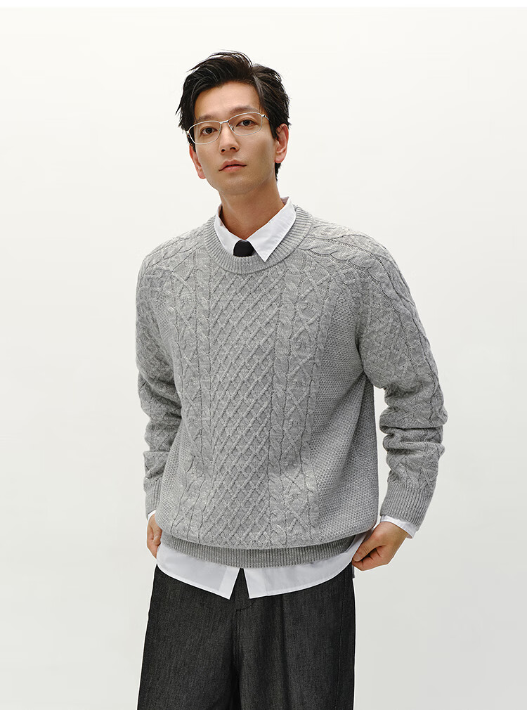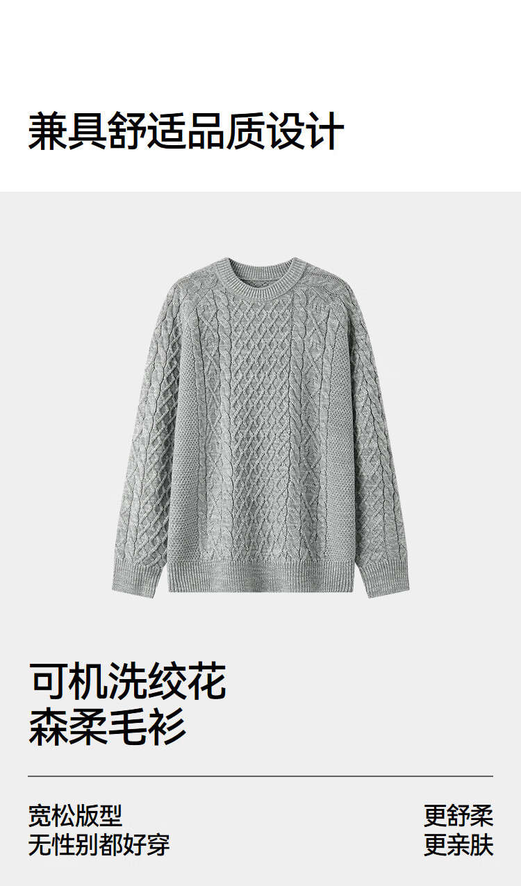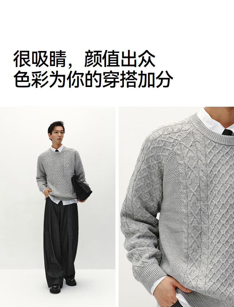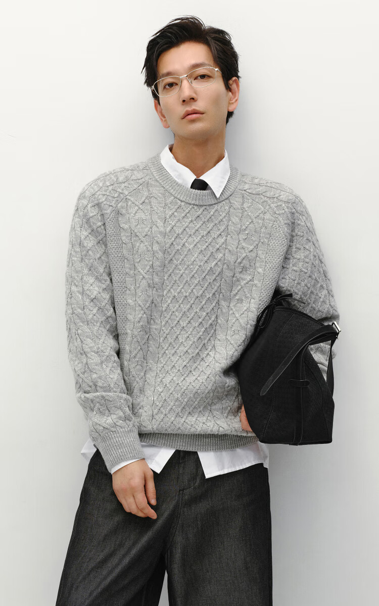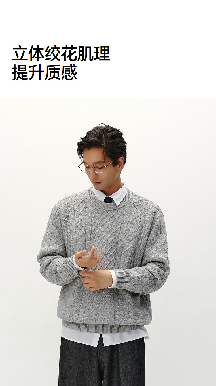 Semir (Semir) Sweater sweater knitted sweater machine washable rope sweater solid color inner top winter couple outfit loose gray tone 00322 L