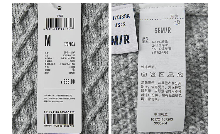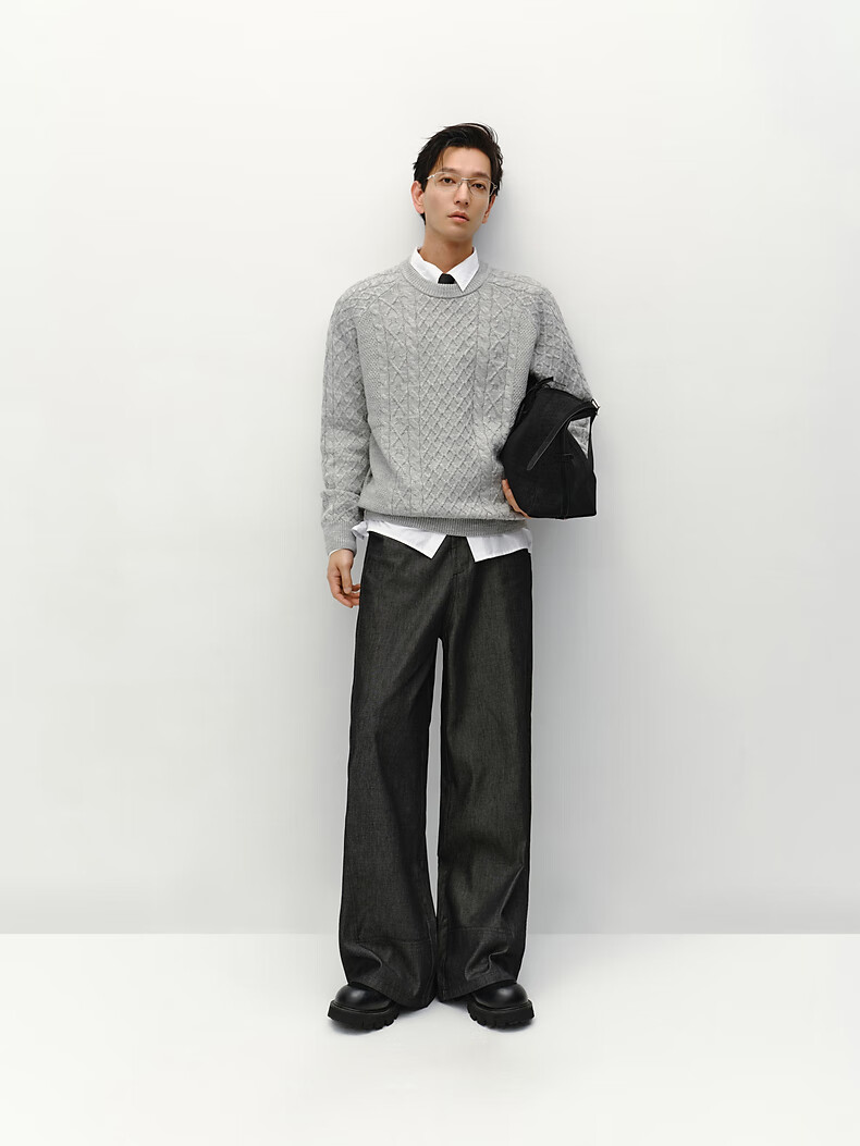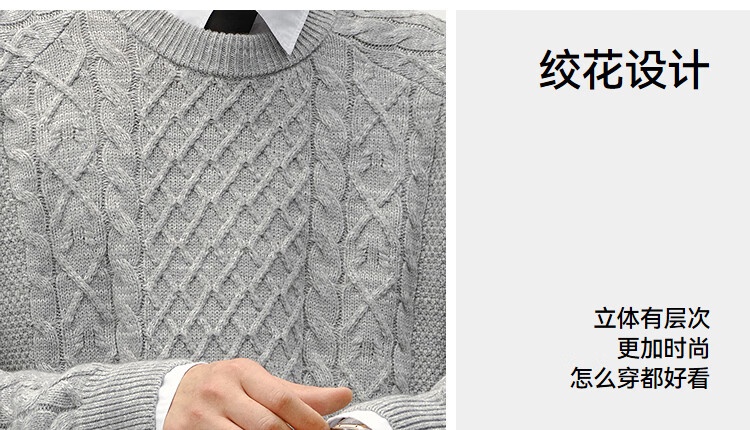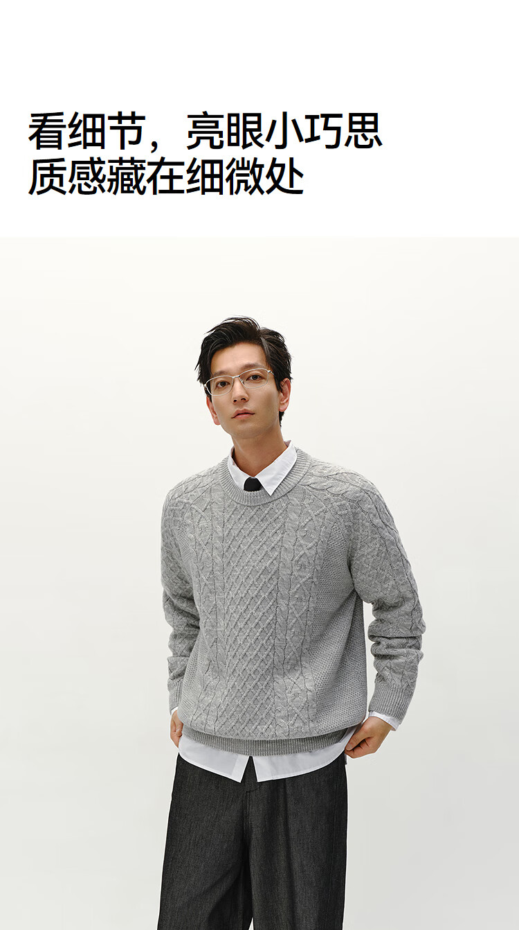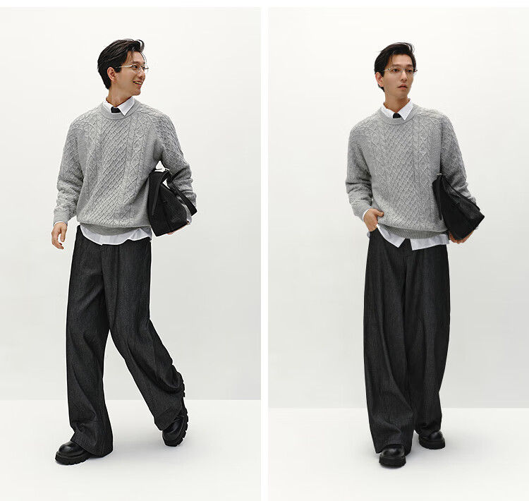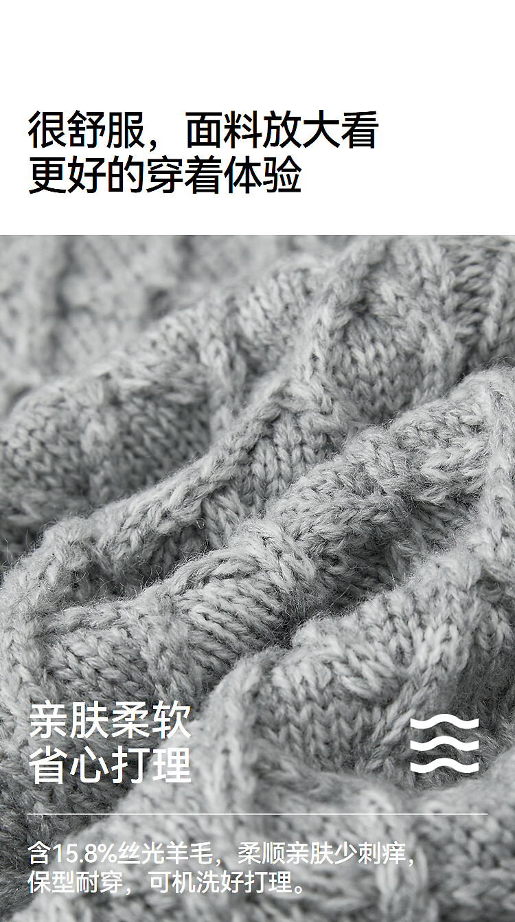Semir (Semir) Sweater sweater knitted sweater machine washable rope sweater solid color inner top winter couple outfit loose gray tone 00322 L