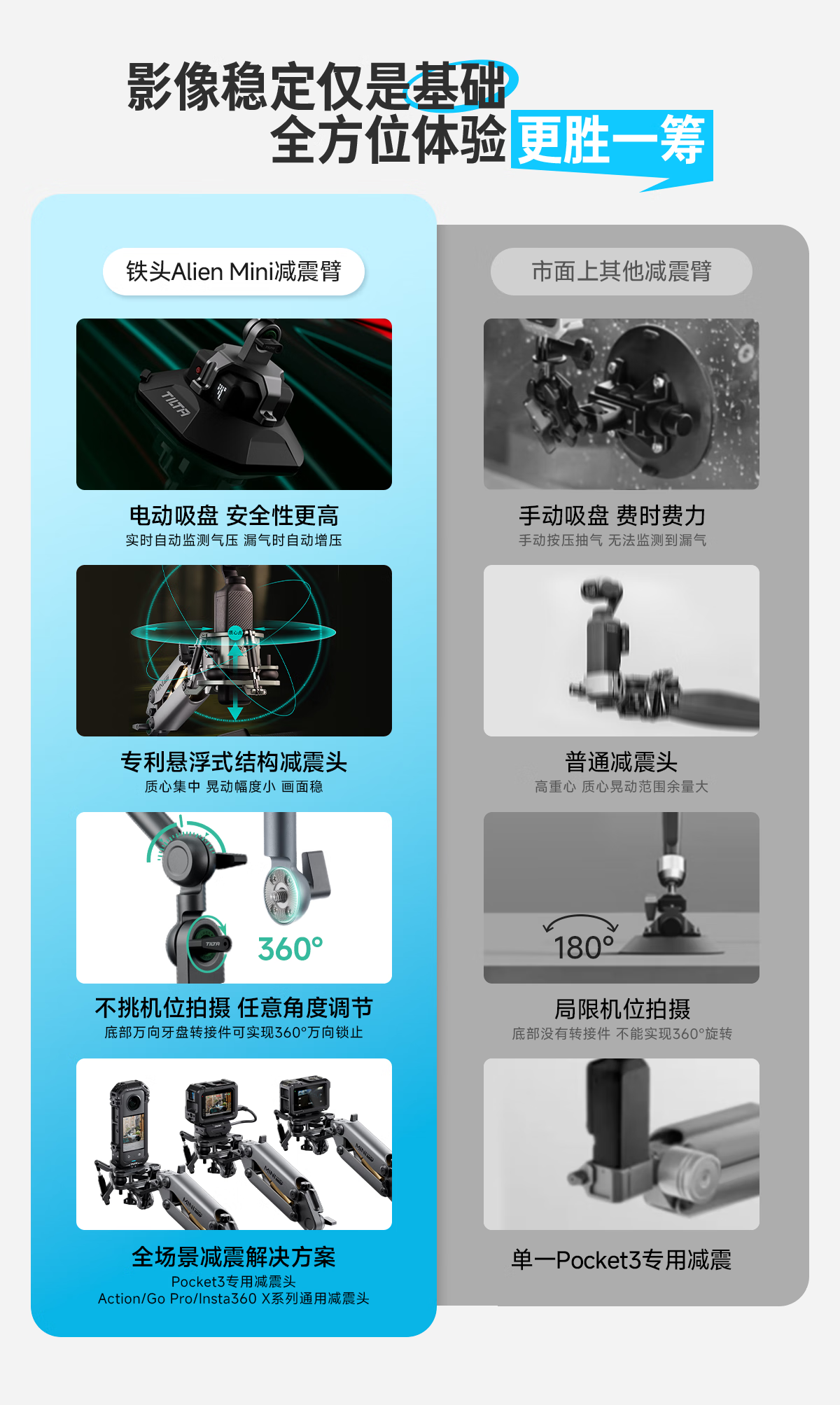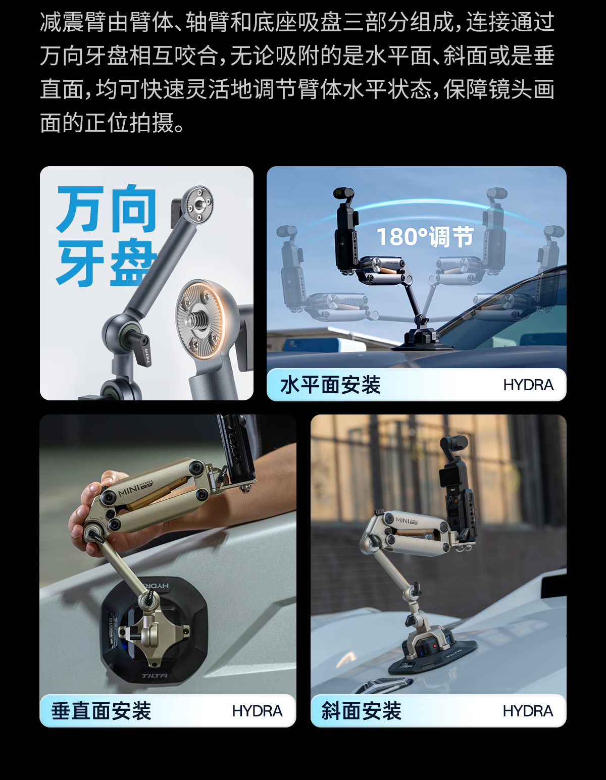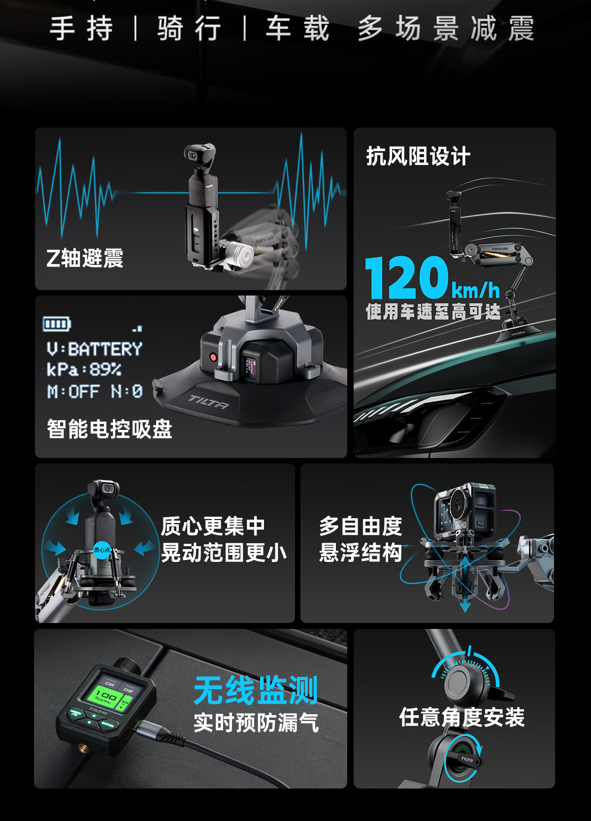 Iron head TILTA pocket shock-absorbing arm mobile master pocket3 car shooting stand mini cycling running sports shooting auxiliary suction cup shock absorber live broadcast car shooting shock absorption system [vehicle shooting] electric suction cup set - titanium gray