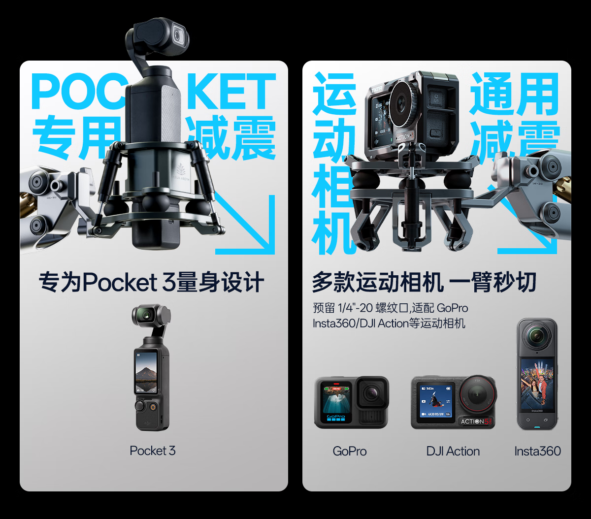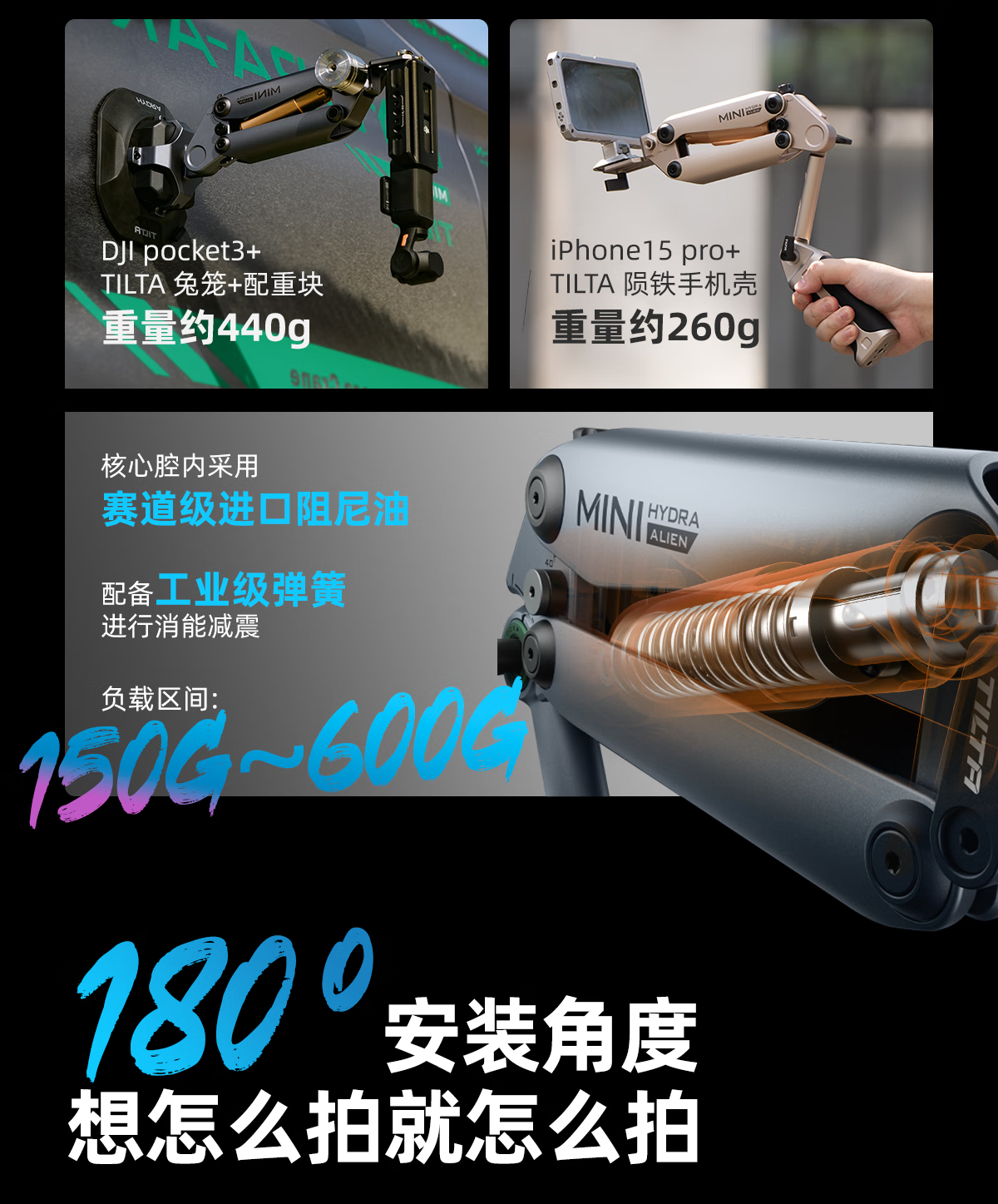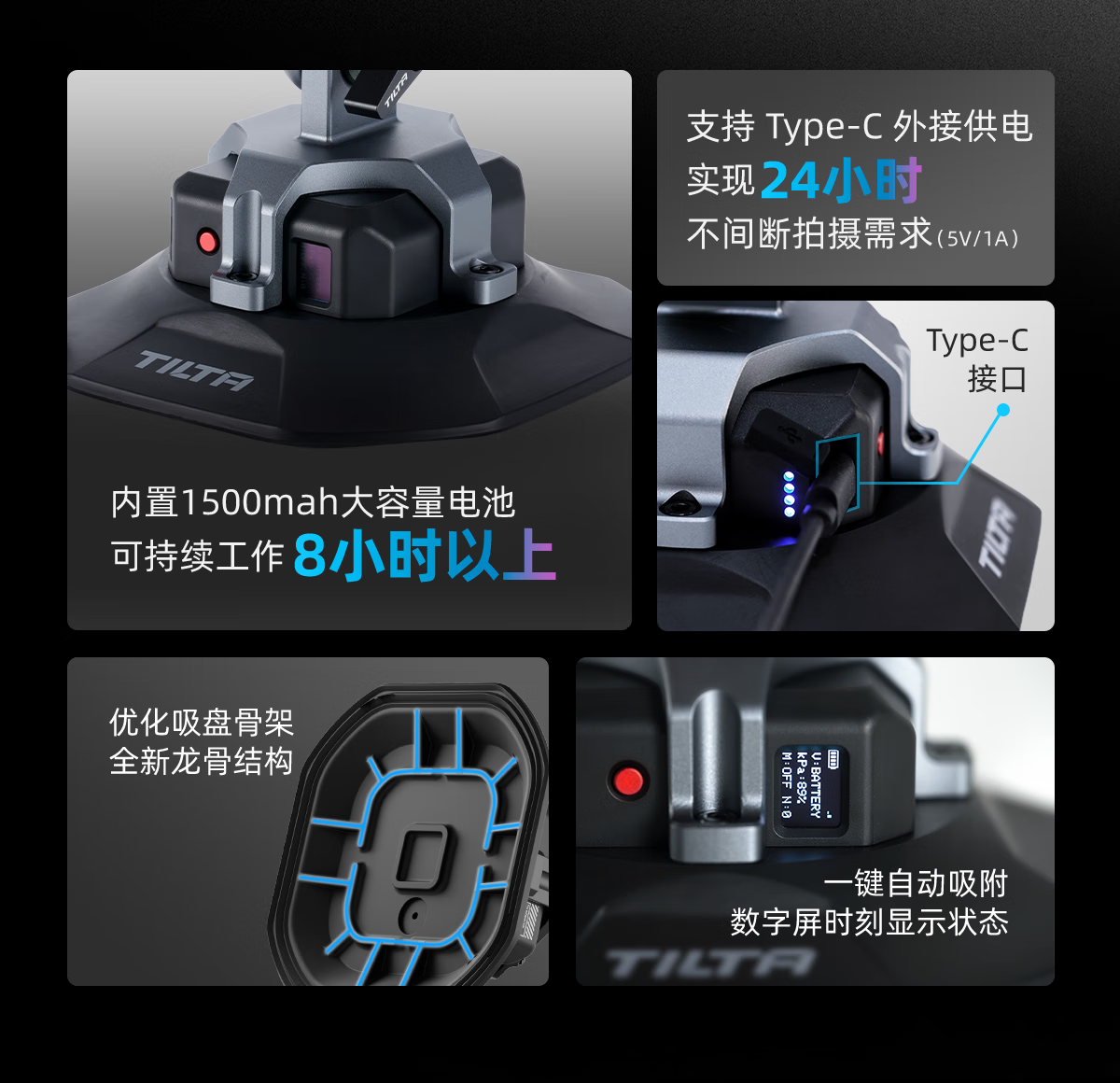 Iron head TILTA pocket shock-absorbing arm mobile master pocket3 car shooting stand mini cycling running sports shooting auxiliary suction cup shock absorber live broadcast car shooting shock absorption system [vehicle shooting] electric suction cup set - titanium gray