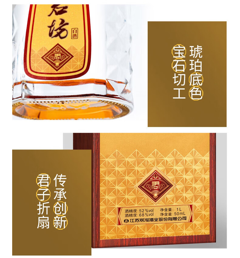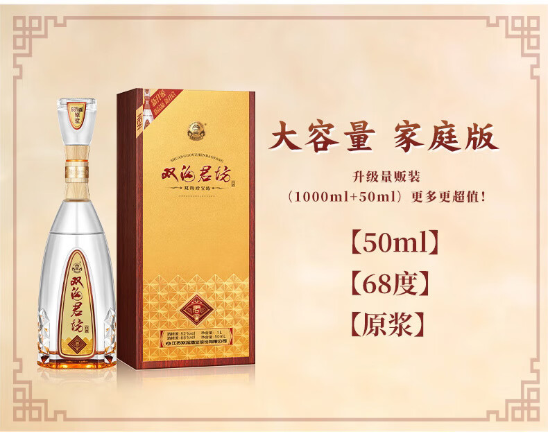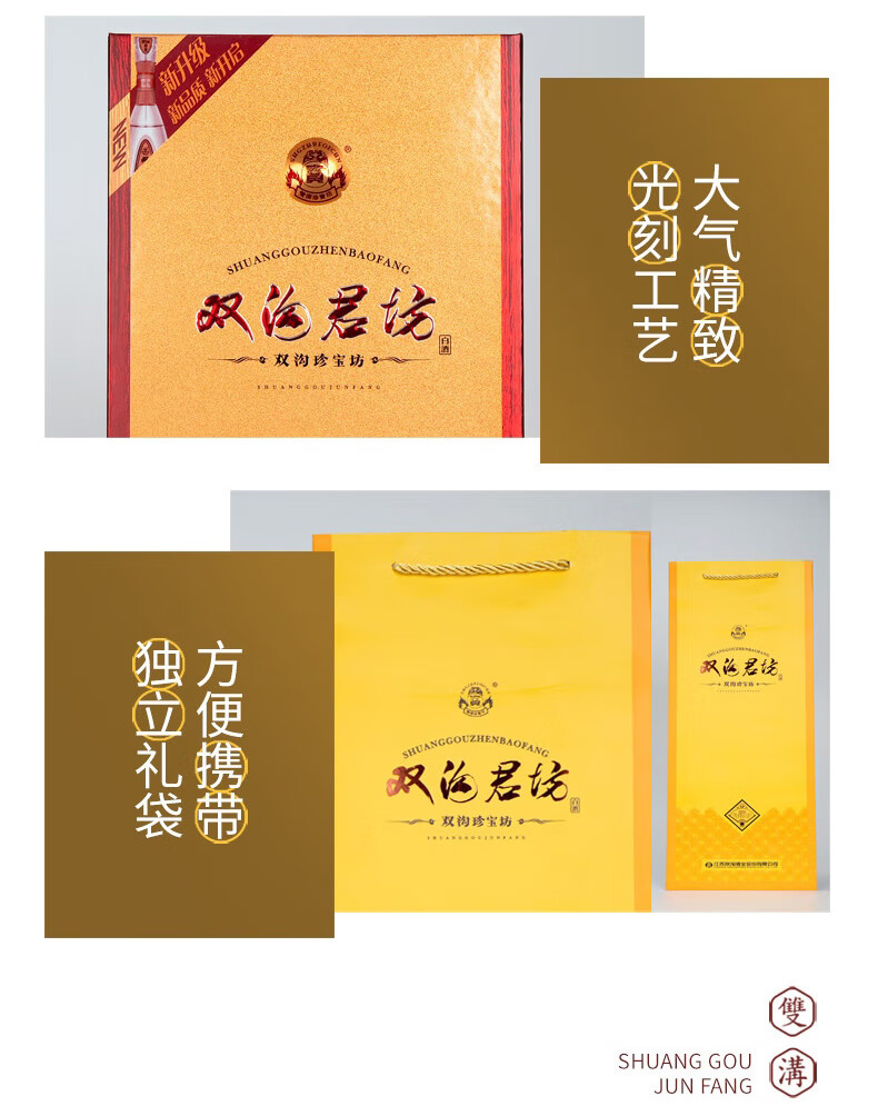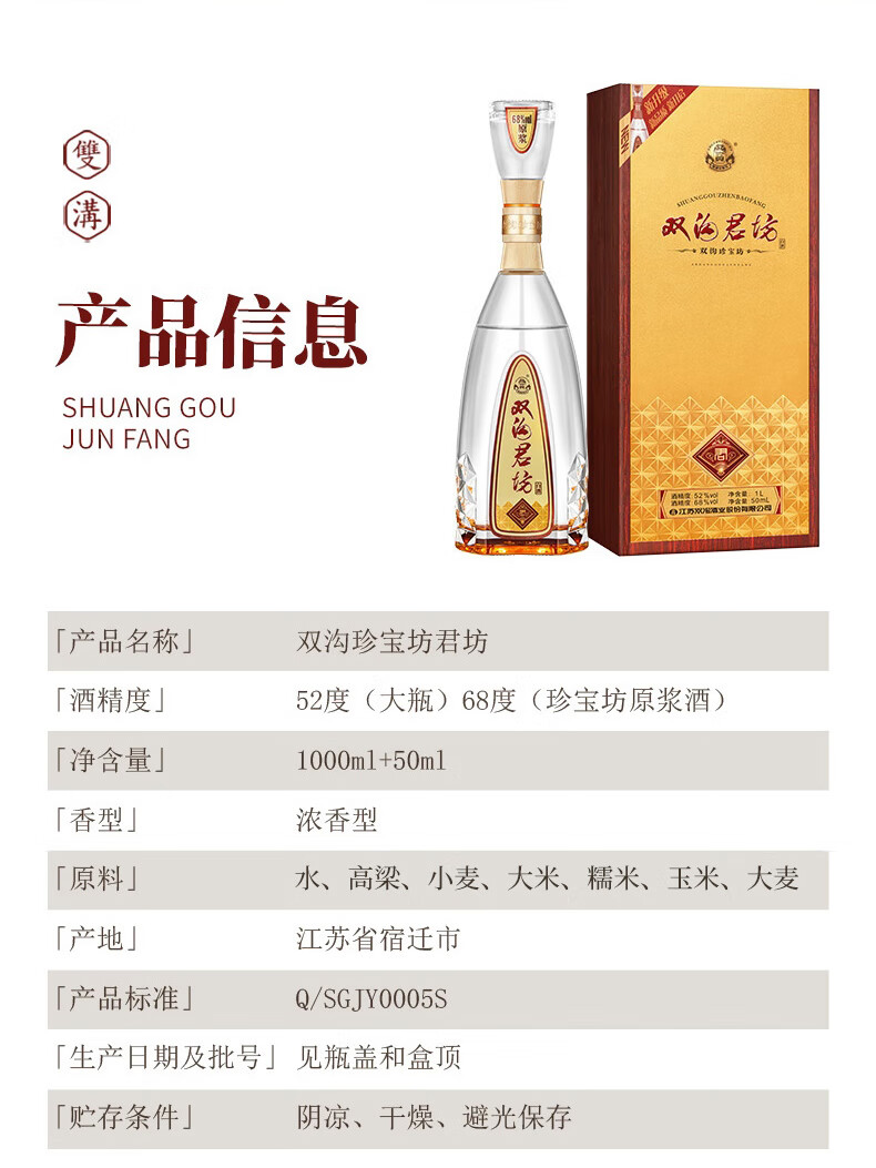Shuanggou Zhenbaofang Junfang 52% (1000ml+50ml) double bottles of strong-flavor liquor 52% 1050mL 2 bottles