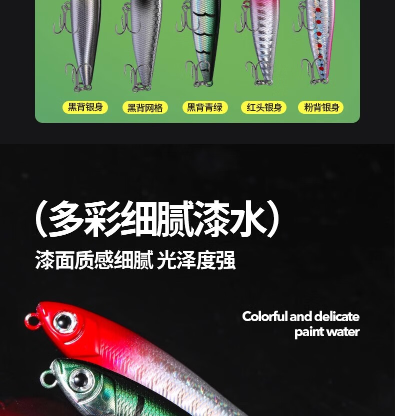Zigzag dog water surface lure long-range micro-object mini fake bait floating small pencil white strip mino wave climbing set 3 pieces black back grid 1.8g