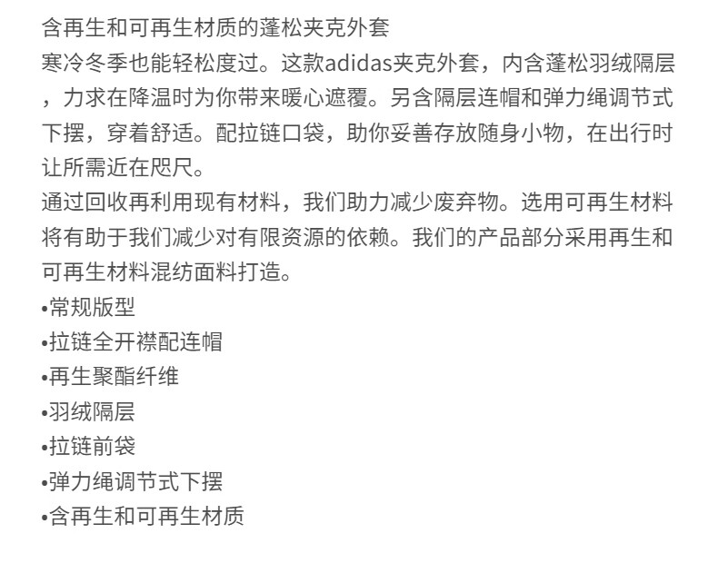 Adidas Jinlang Sports Men's Warm Core Technology Warm 600 Puff Hooded Duck Down Bread Down Jacket JV6187 Picture Color XL