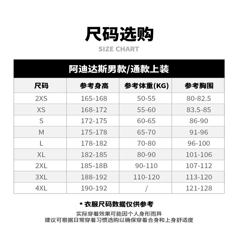 China (cm) 165 / 88-90 170 / 96-98 175 / 108-110 180 / 118-122 185 / 126-130