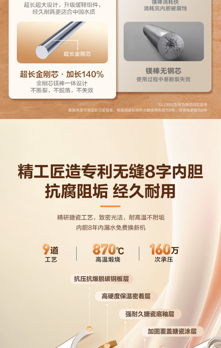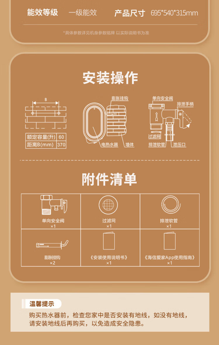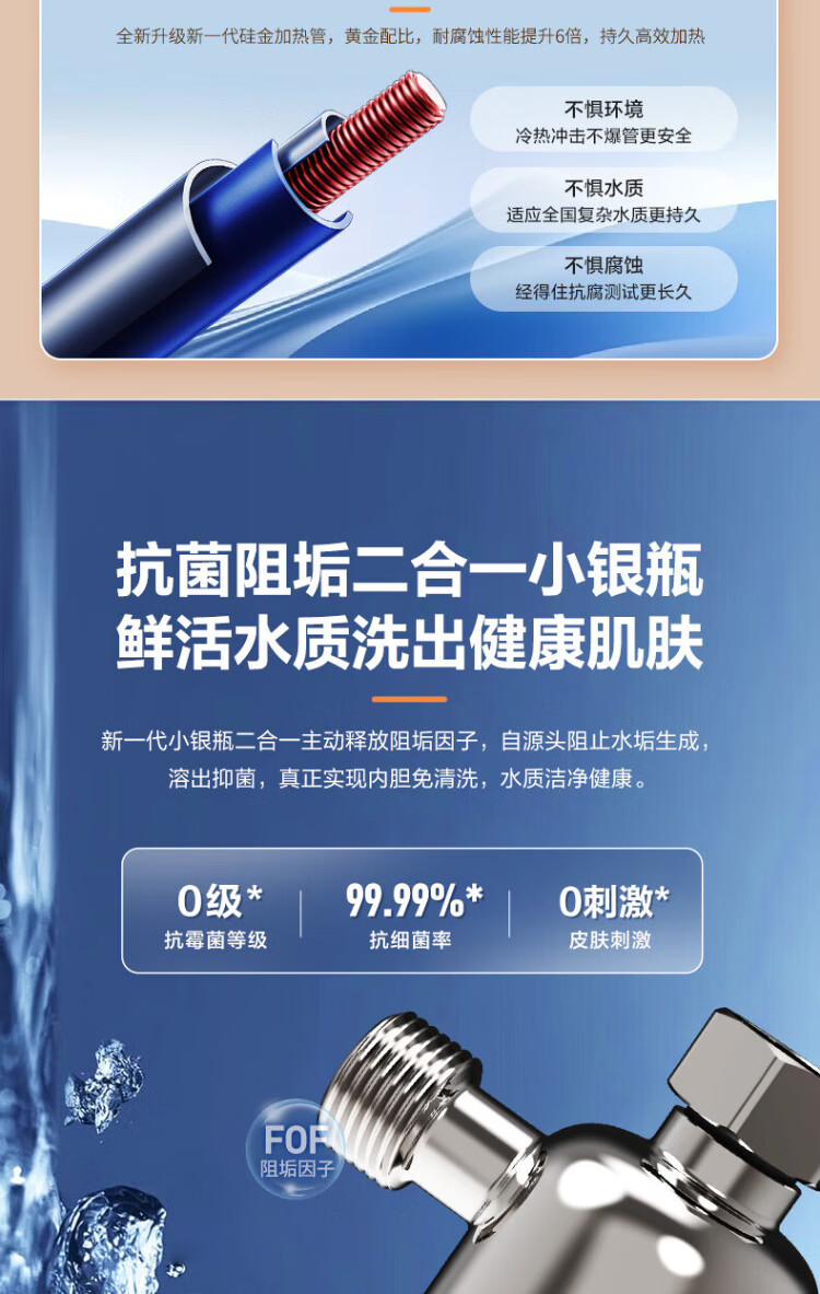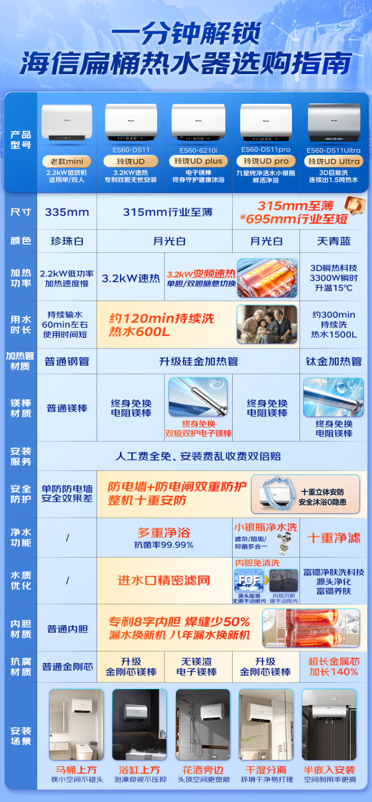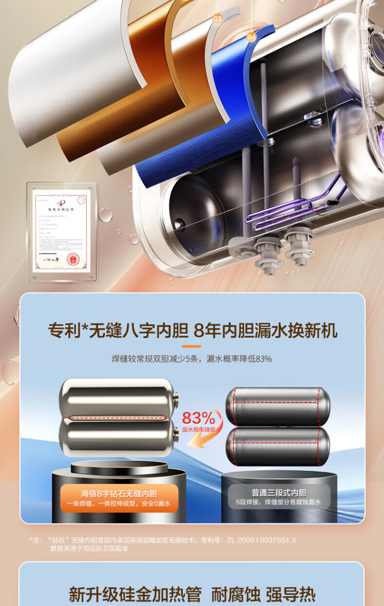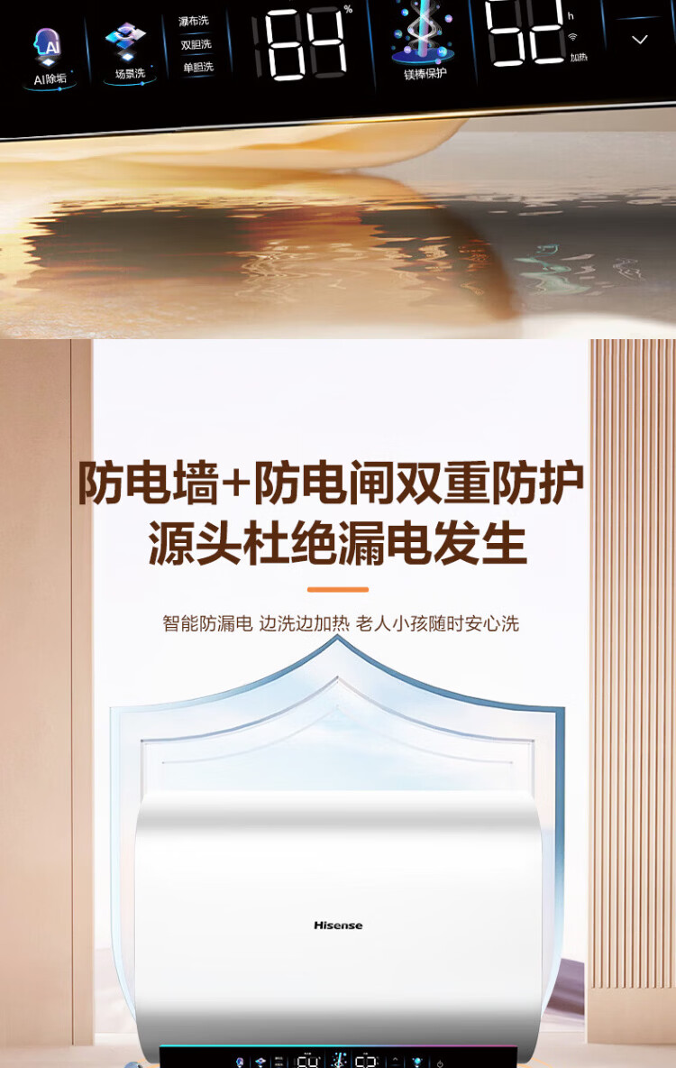 Hisense elektrischer Warmwasserbereiter, flaches Fass, kleine silberne Flasche, 60 Liter, ultradünner 695-mm-Körper, 3200 W, ersatzfreier Magnesiumstab, super erstklassige Energieeffizienz, exquisites UD ES60-DS11Pro