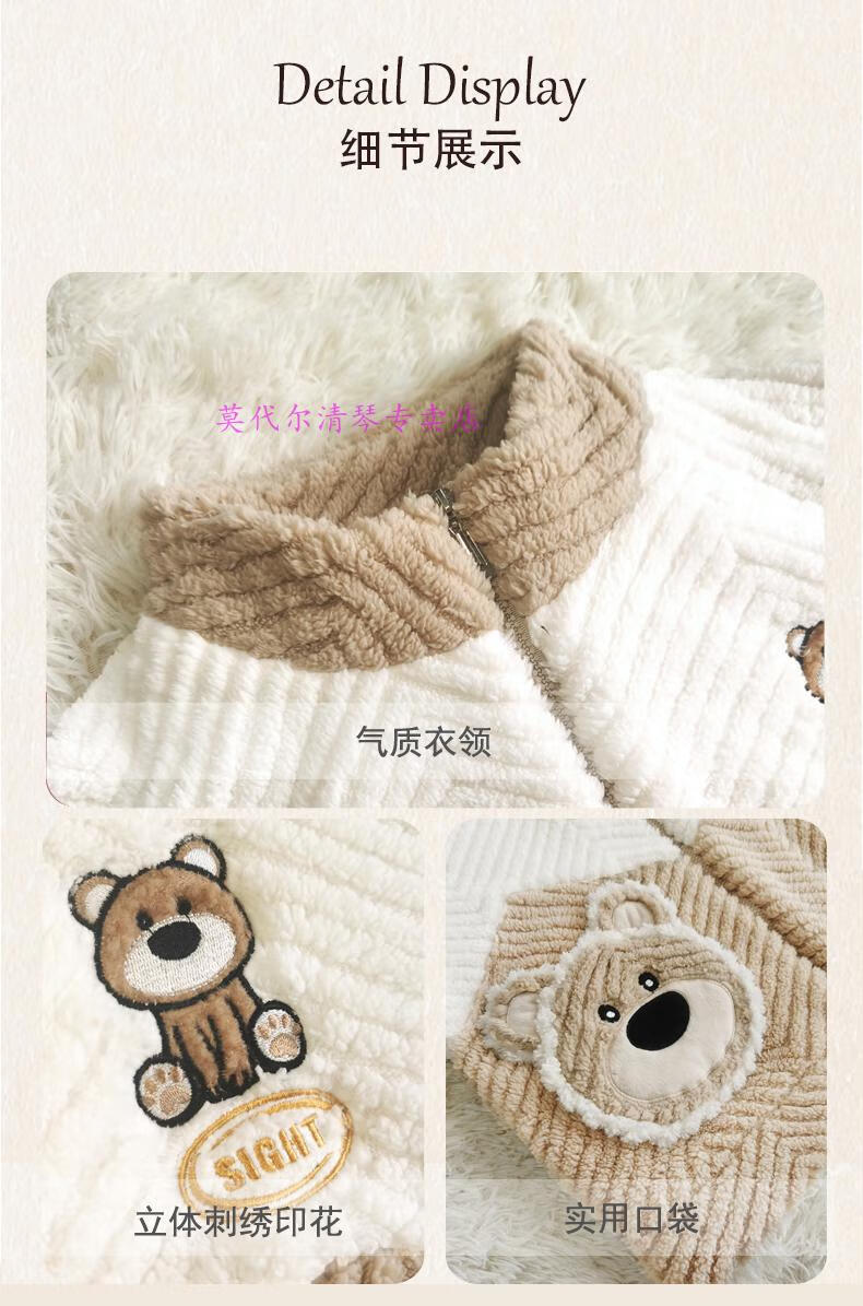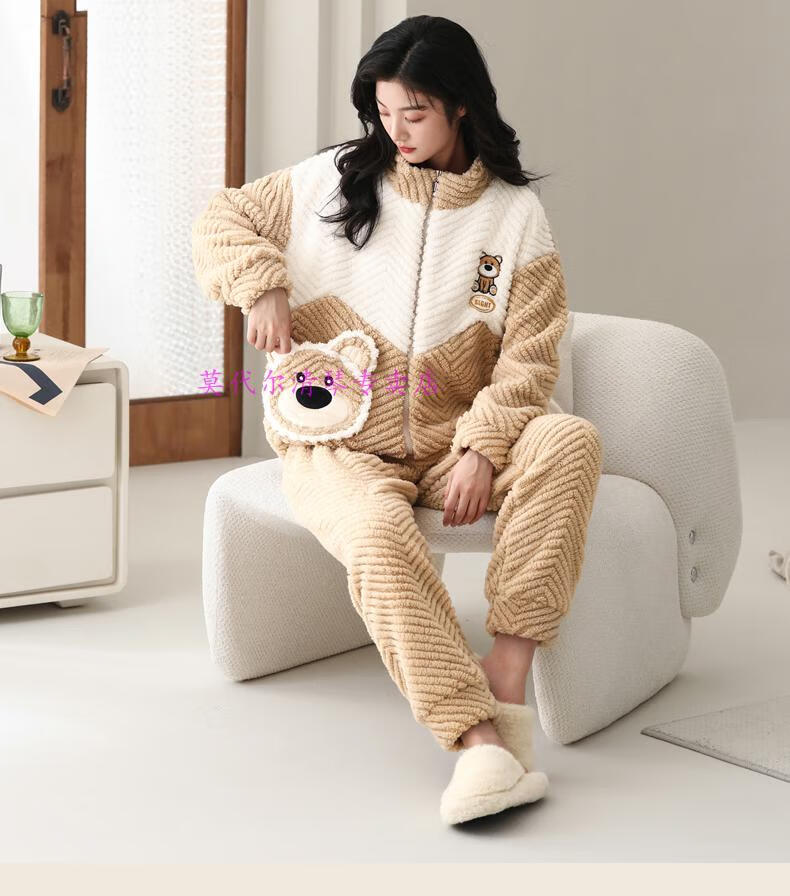 Modal Pajamas for Women Autumn and Winter Coral Velvet Thickened Flannel Winter Cute Cartoon Internet Celebrity Style Home Clothes Set H9712 Female M 90-105Jin Jin is equal to 0.5 kg