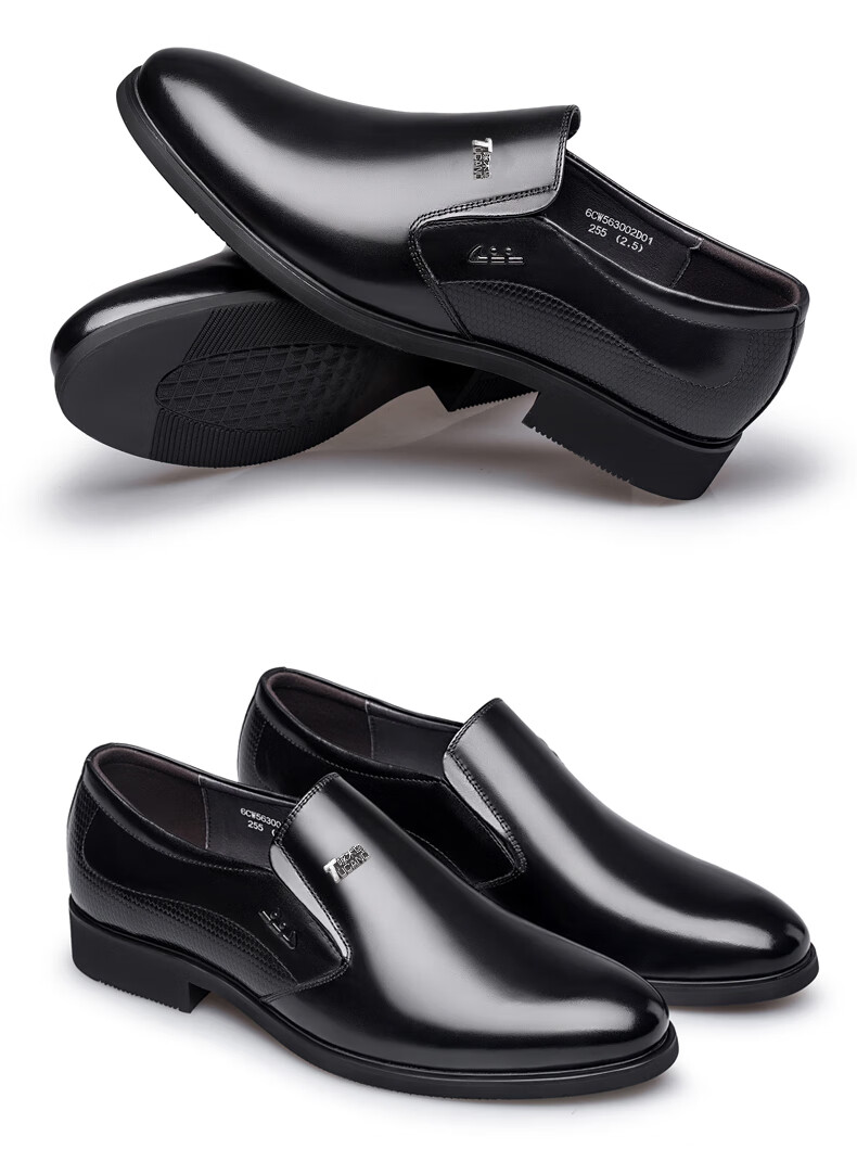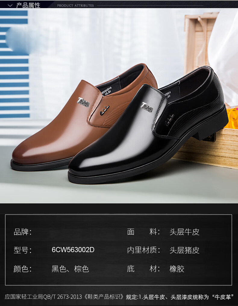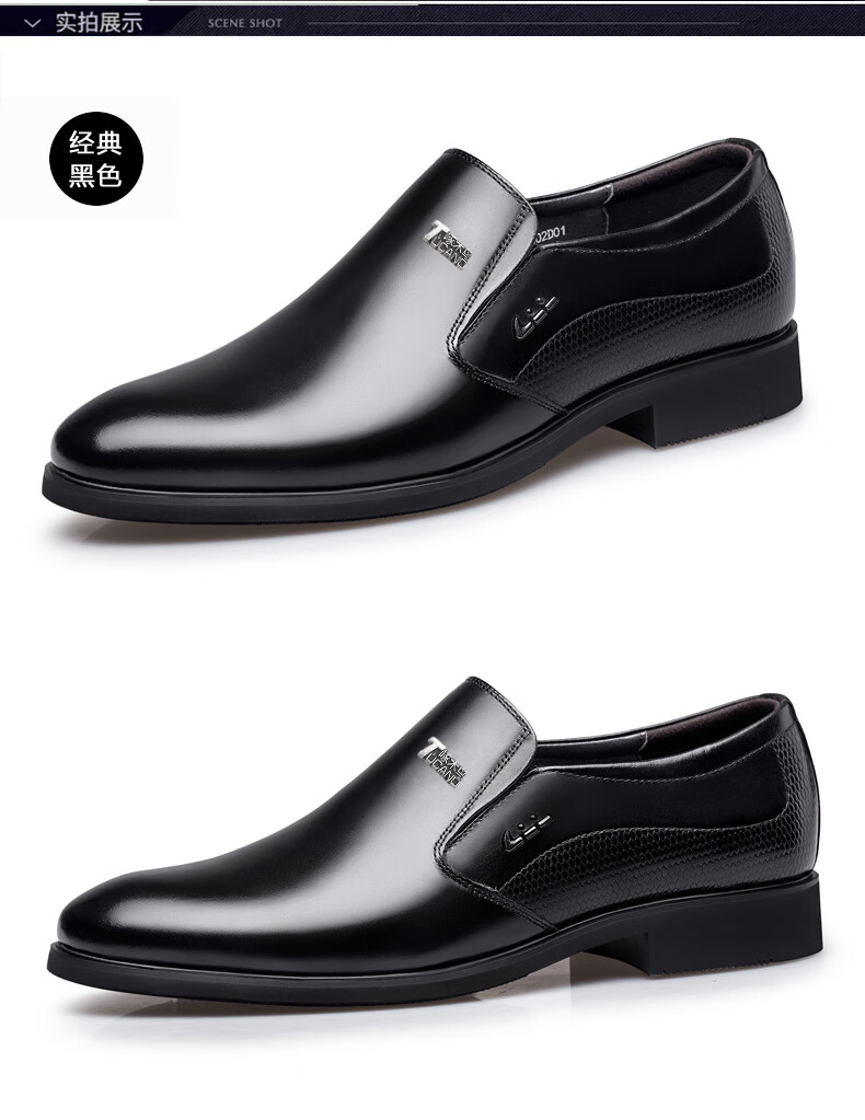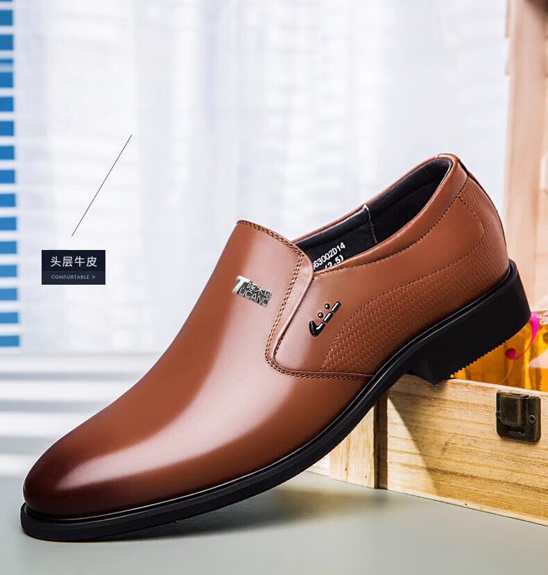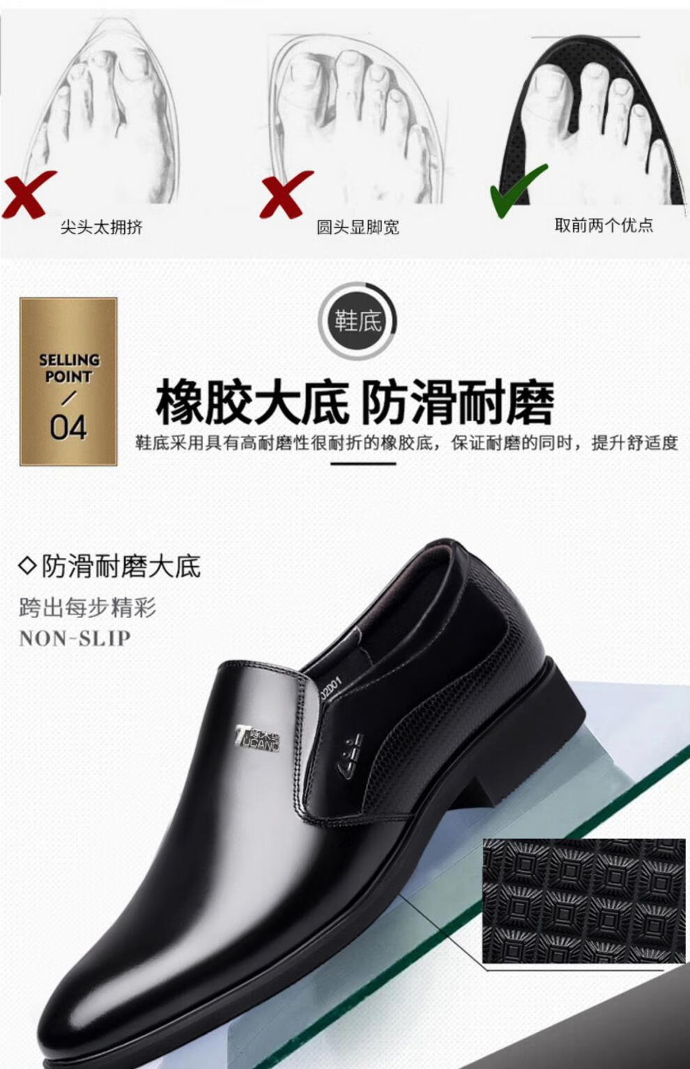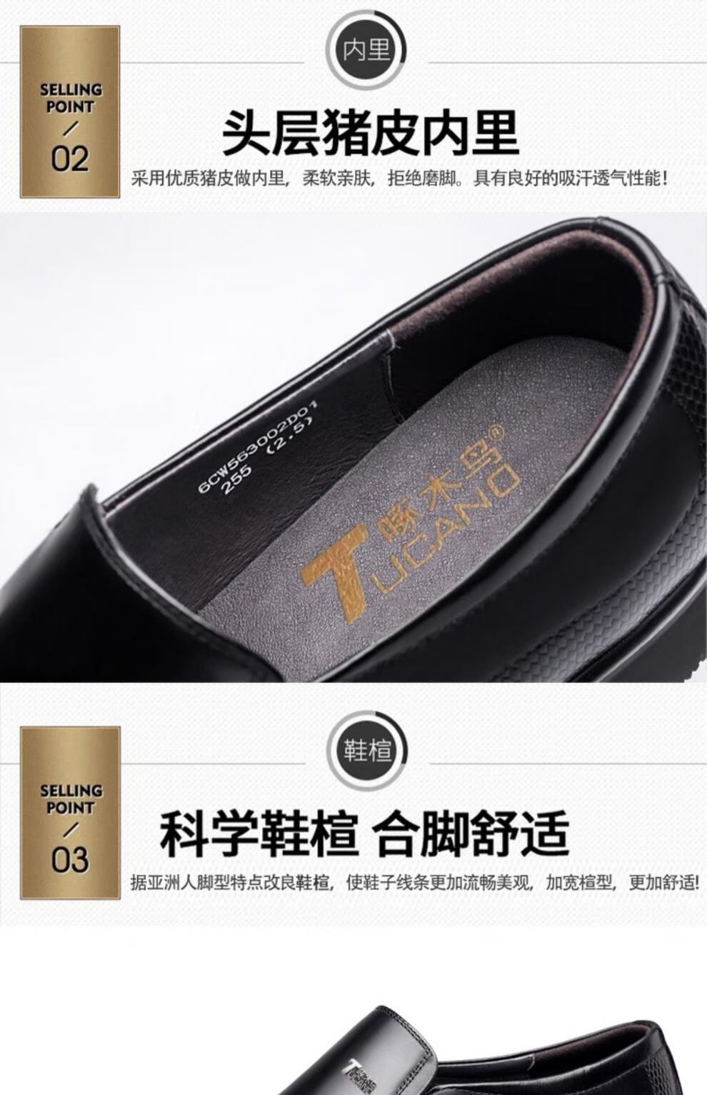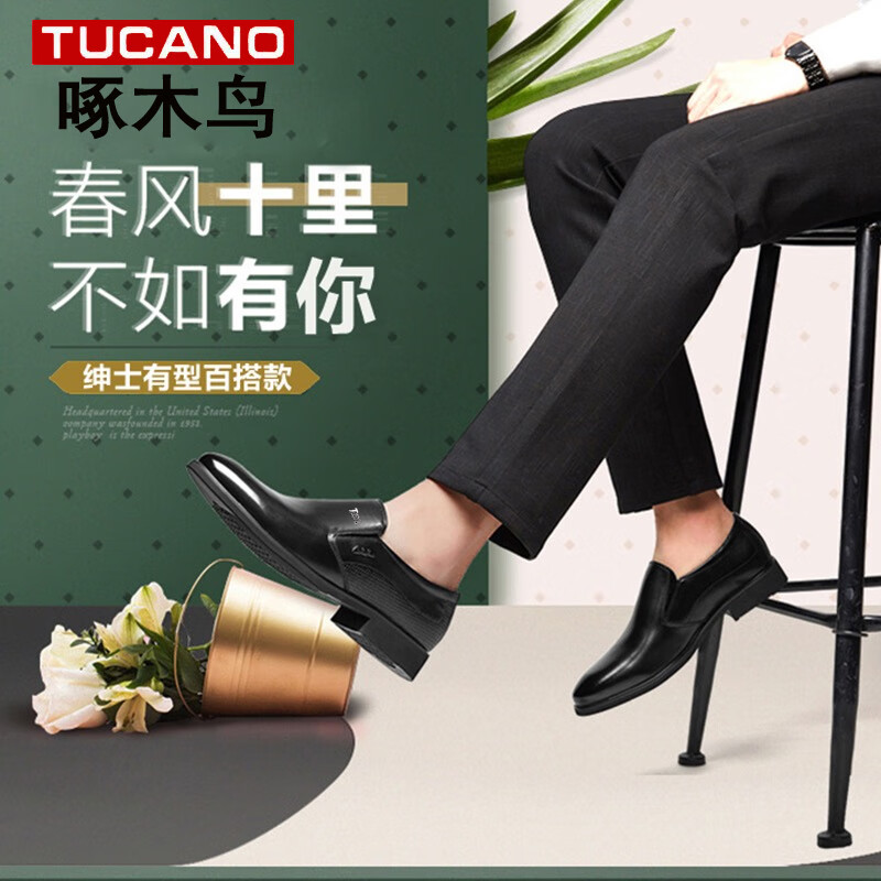 啄木鸟皮鞋男鞋春秋季新款休闲真皮商务正装棕色英伦百搭一脚蹬内增高潮 9908黑色增高 38