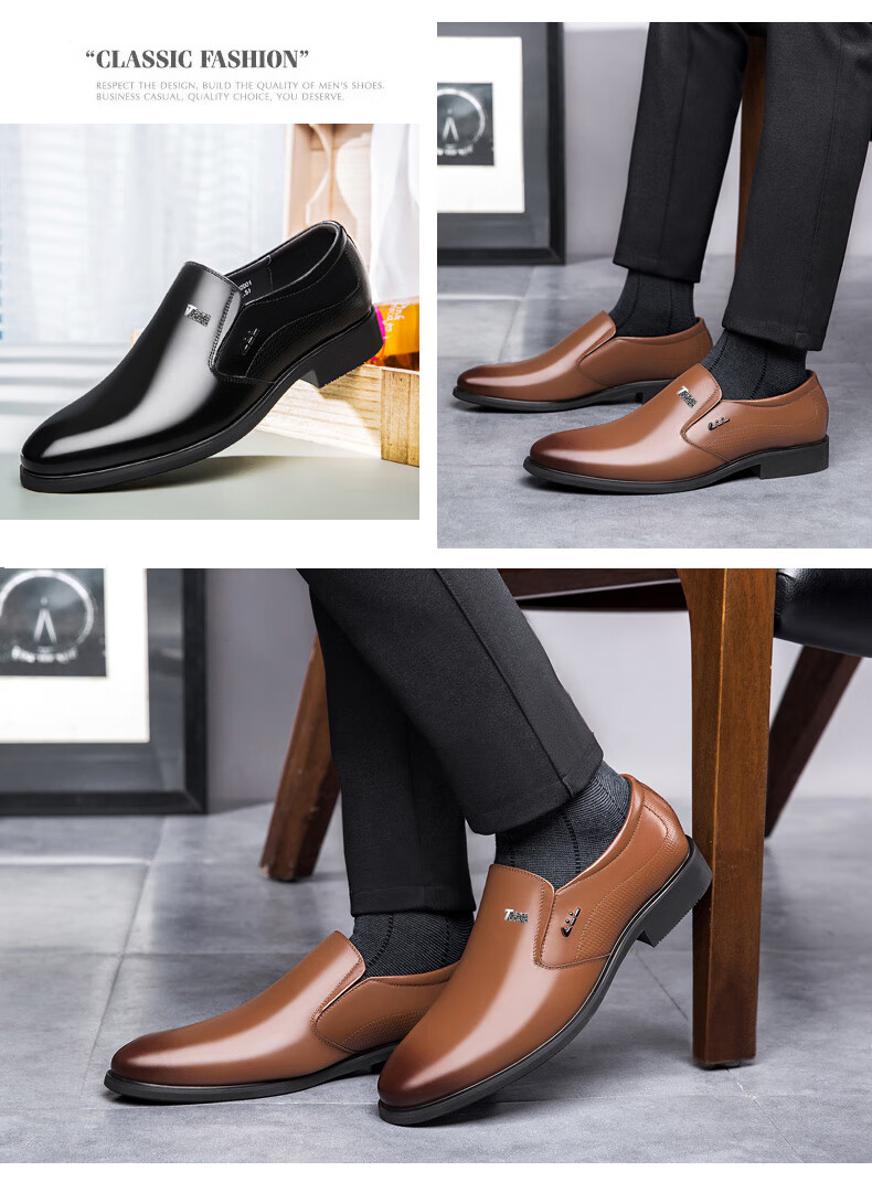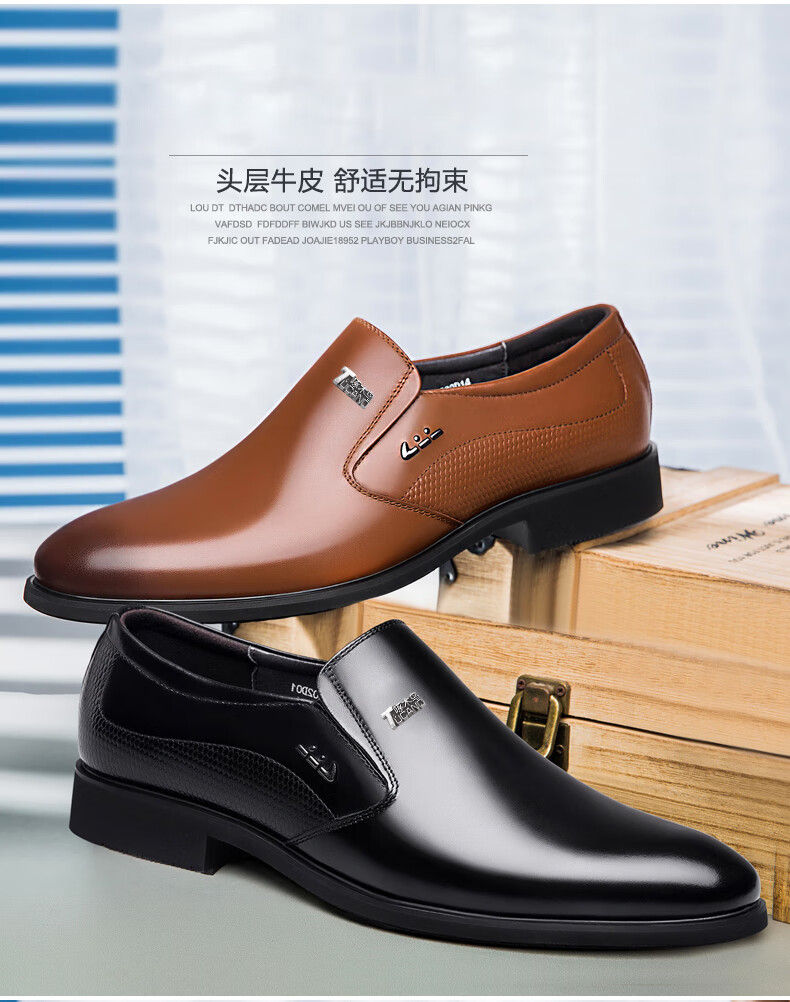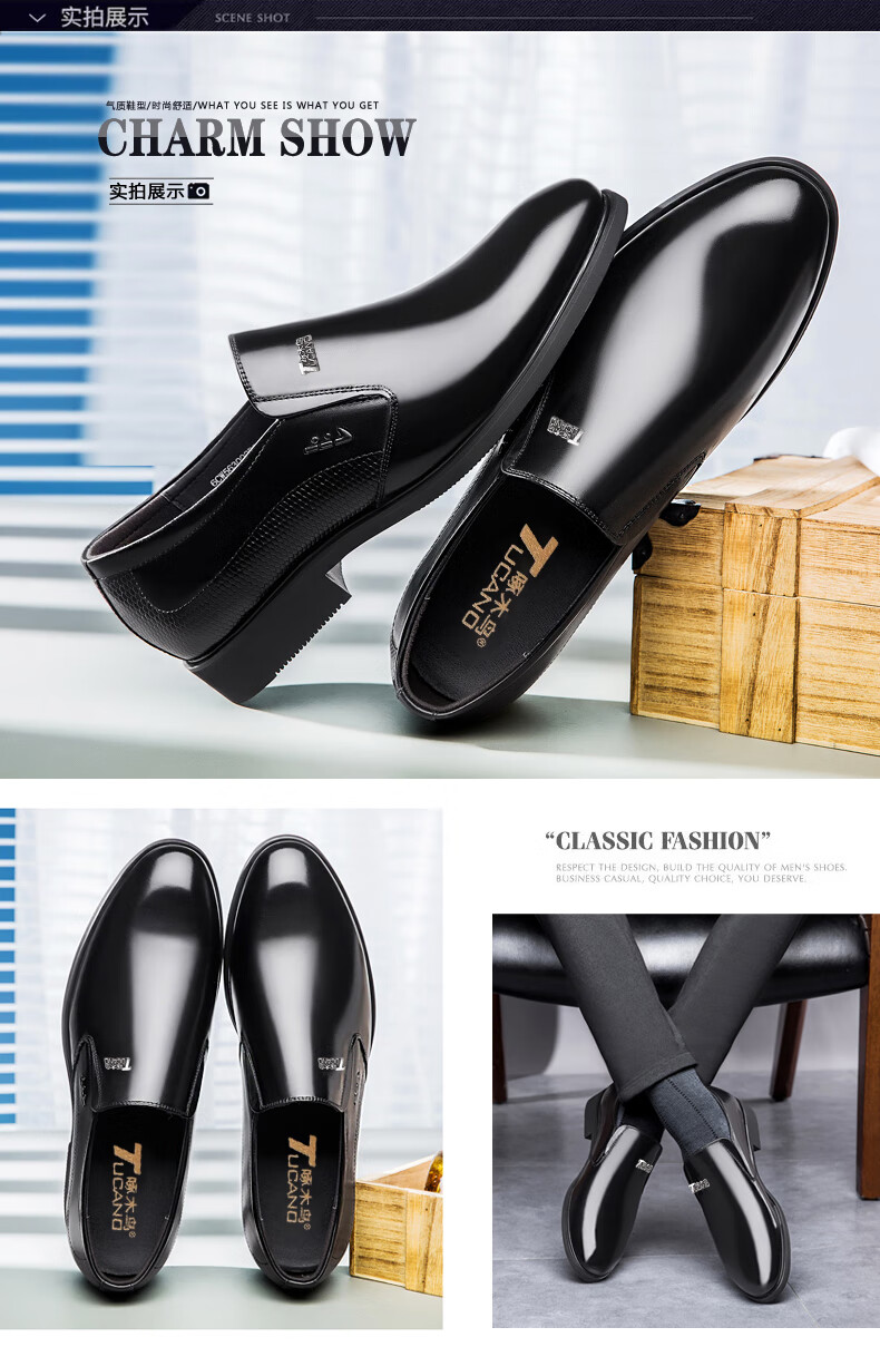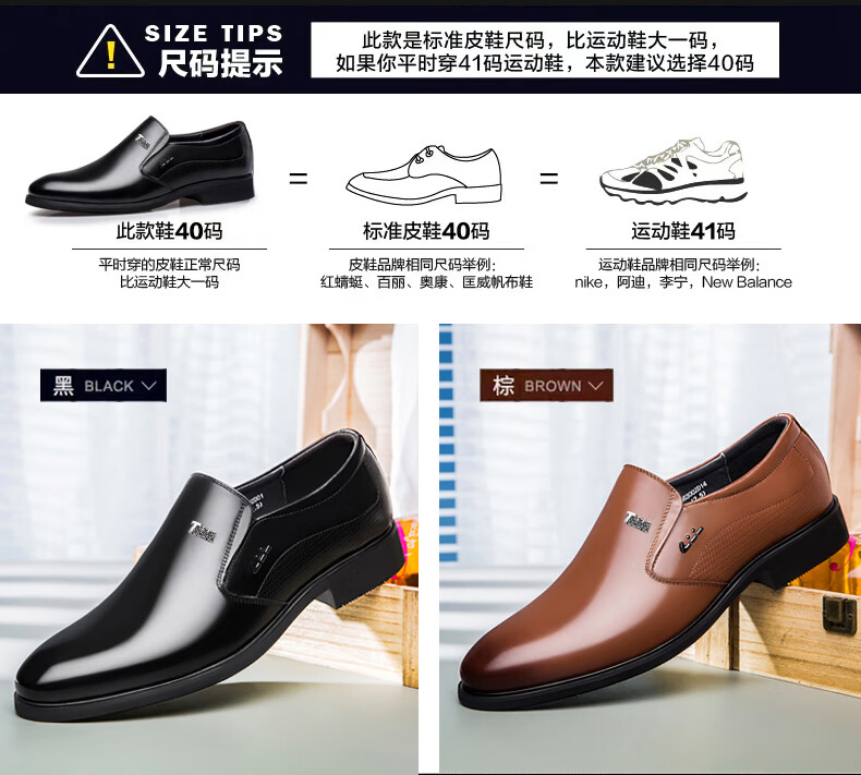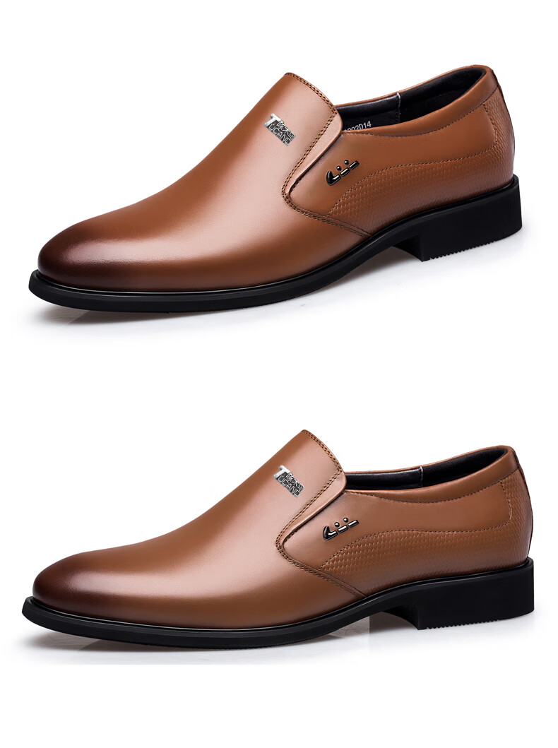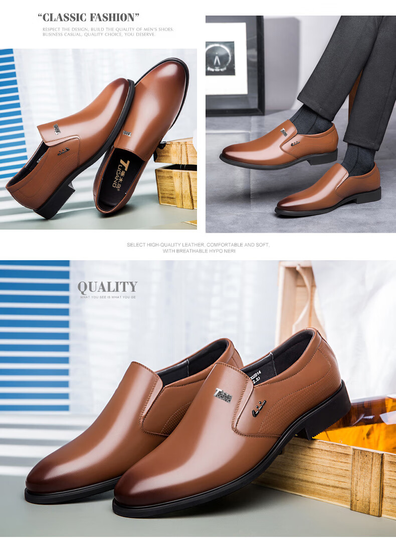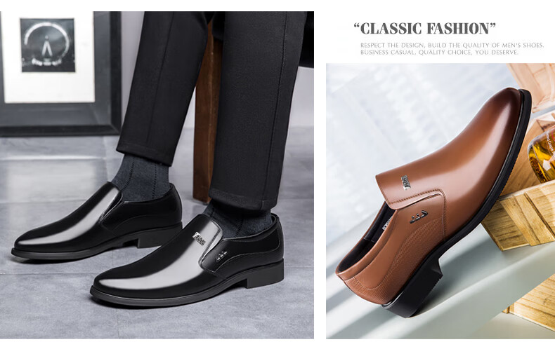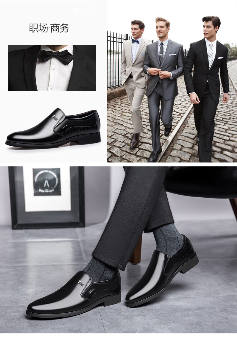 啄木鸟皮鞋男鞋春秋季新款休闲真皮商务正装棕色英伦百搭一脚蹬内增高潮 9908黑色增高 38