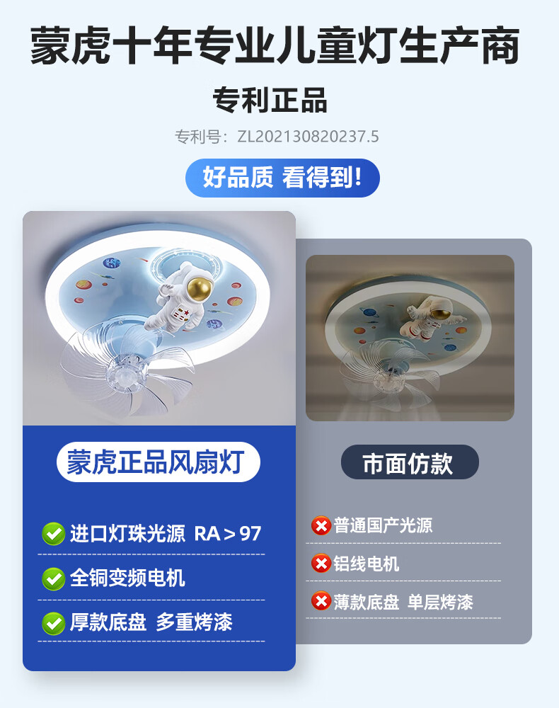 Menghu Boy's Bedroom Ceiling Fan Light 360 Degree Shaking Head Inverter Motor Full Spectrum Eye Protection LED Astronaut Electric Fan 9194 Fan Light Stepless Dimming + Tmall Genie