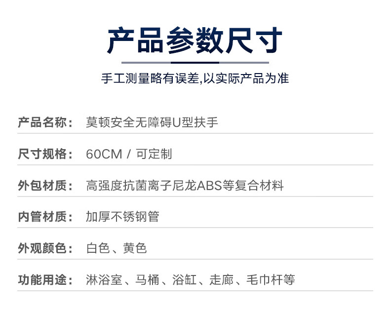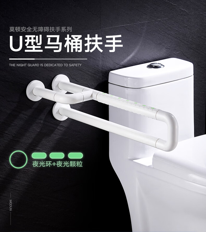 莫顿卫生间马桶厕所防滑老人安全残疾人无障碍起身坐便器扶手架 MD-9903-2白色