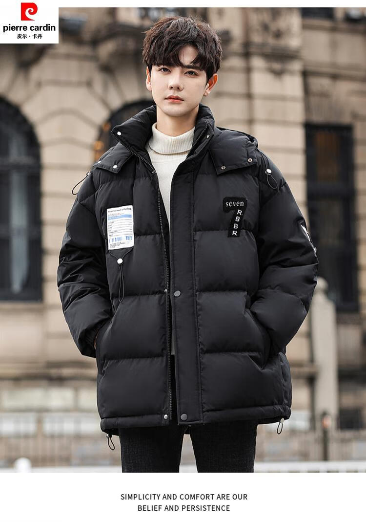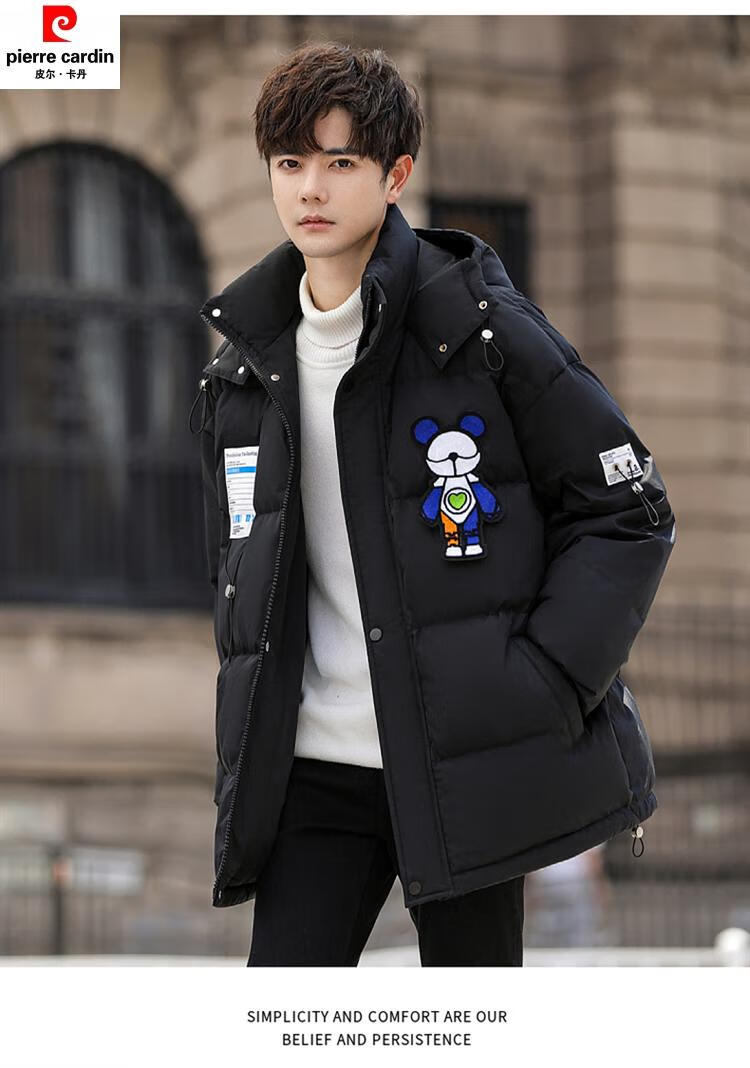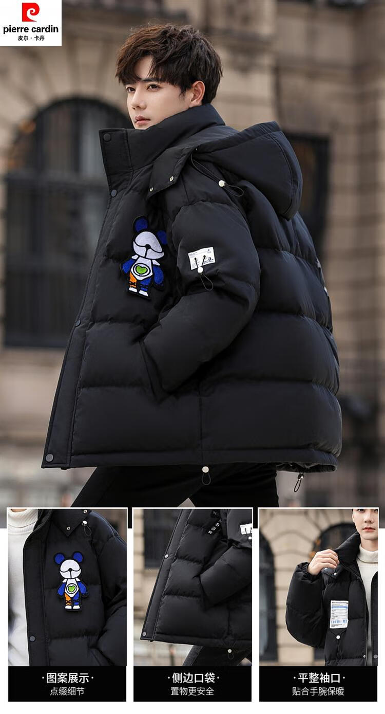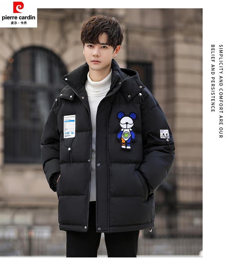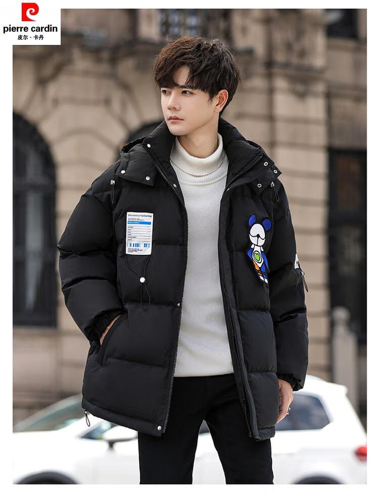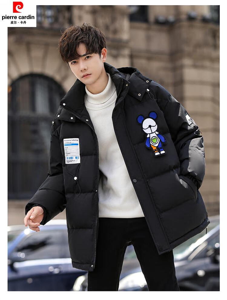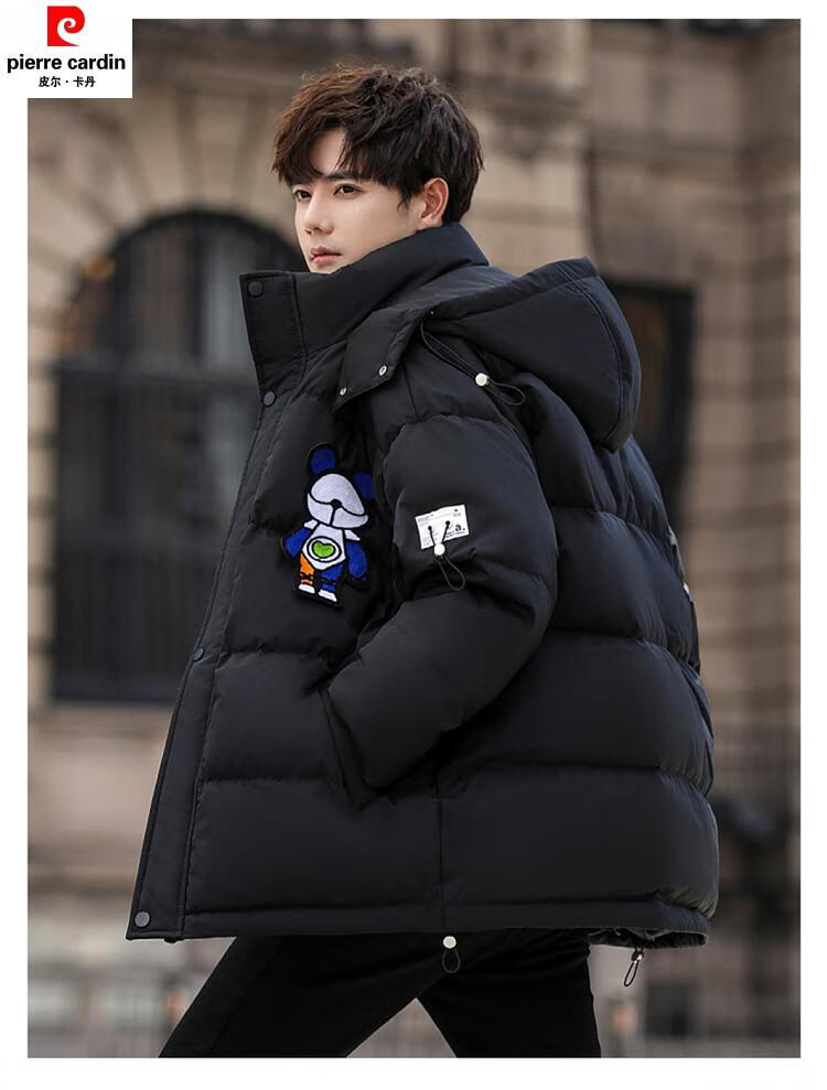 Pierre Cardin Jugend-Baumwolljacke, 13, Jungen, Mittelstufe, Schüler, 14, mittellange Baumwolljacke, 15 Jahre, ältere Kinder, Winterjacke, 6198 Bärenschwarz (verdickt und warm), Qualitätsgarantie, L (100–120 Jin Jin entspricht etwa 0,5 kg)
