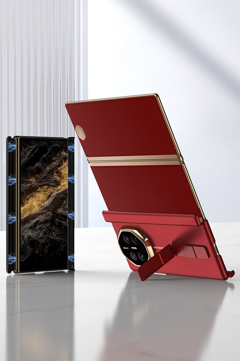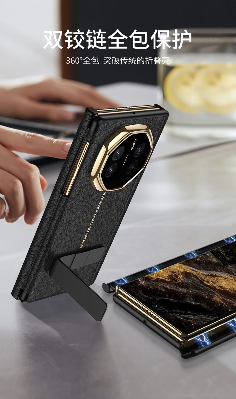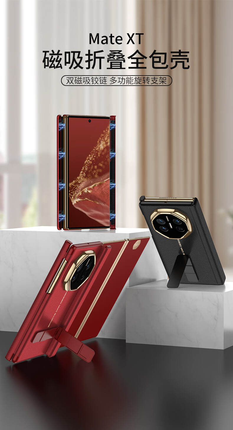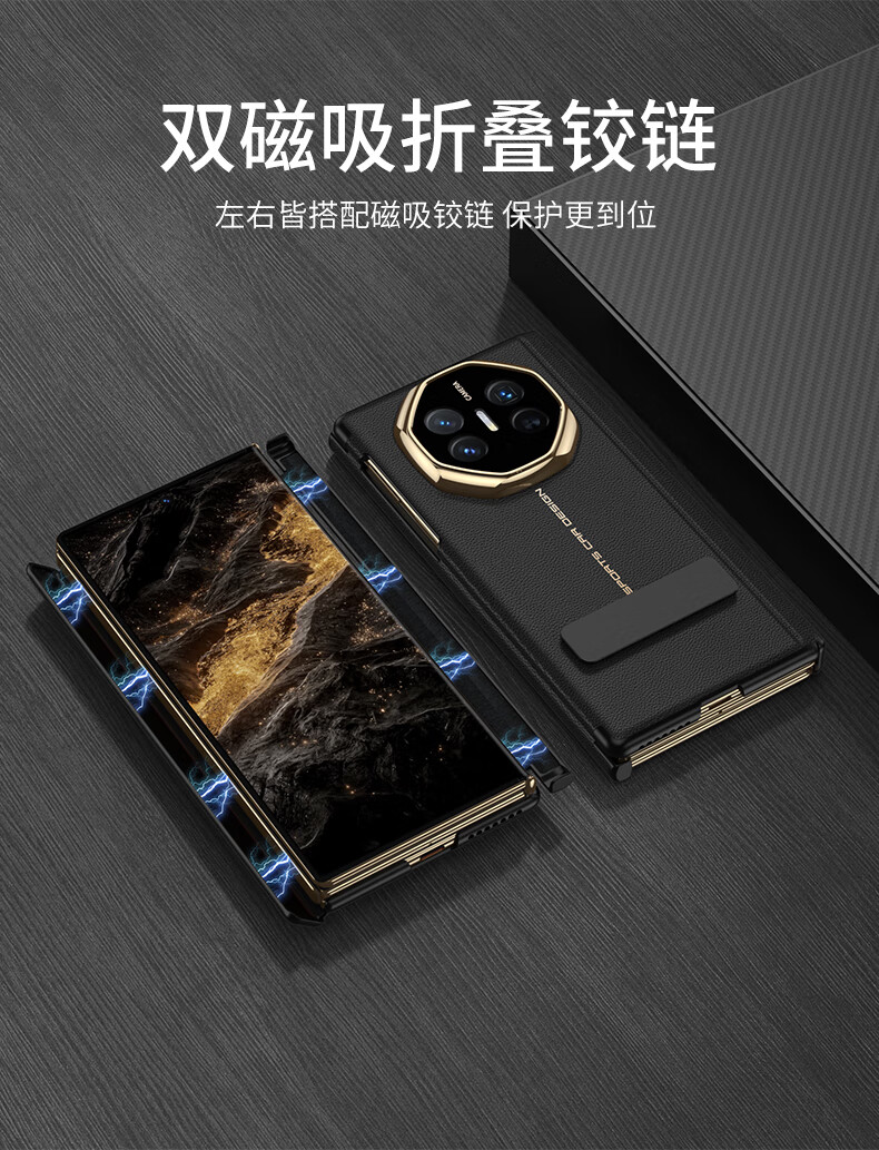 Minnie Lu Huawei materialxt phone case double magnetic suction hinge MateXTs Extraordinary Master Protective Case High-end Plain Leather All-inclusive Anti-fall Rotary Bracket Three-fold Leather Case Men and Women [Black Black] Lens Full-inclusive Magnetic Hinge Huawei MateXT/MateXTs Extraordinary Master General