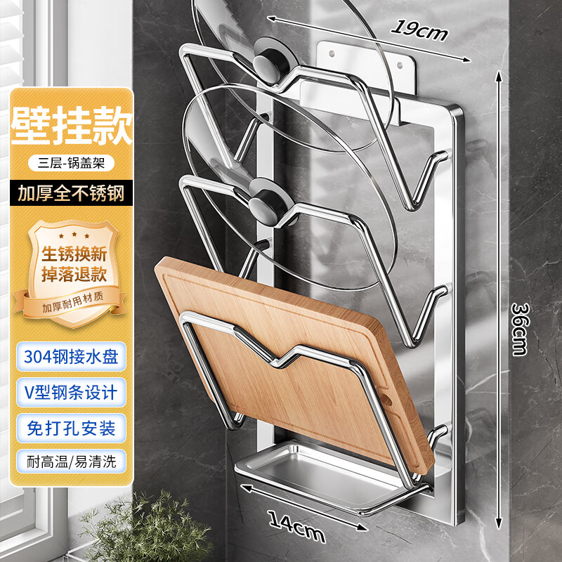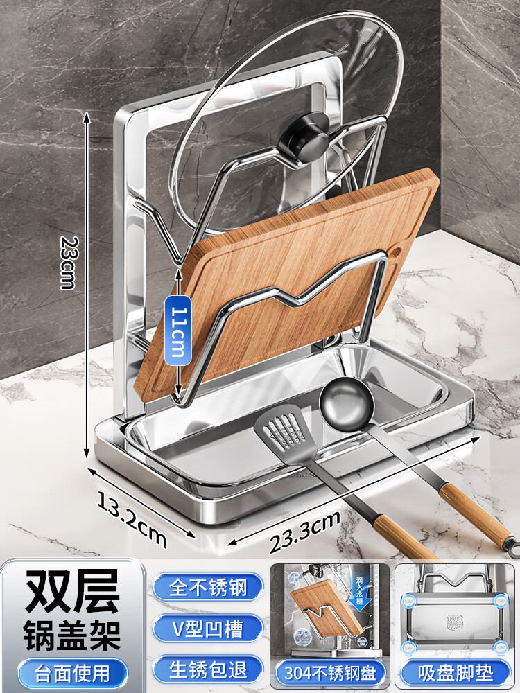 Pangdonglai quality stainless steel storage rack household pot lid rack cutting board rack seat 1-pack [stainless steel cutting board rack]