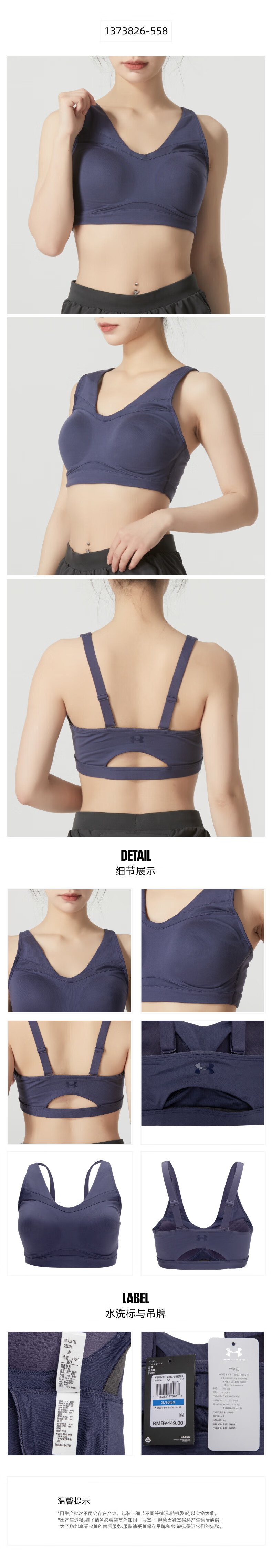 Under Armor Official Women's Underwear 2025 Autumn New Sports Bra Running Training Fitness Breathable Back Beautiful Casual Bra 1372557-667 S