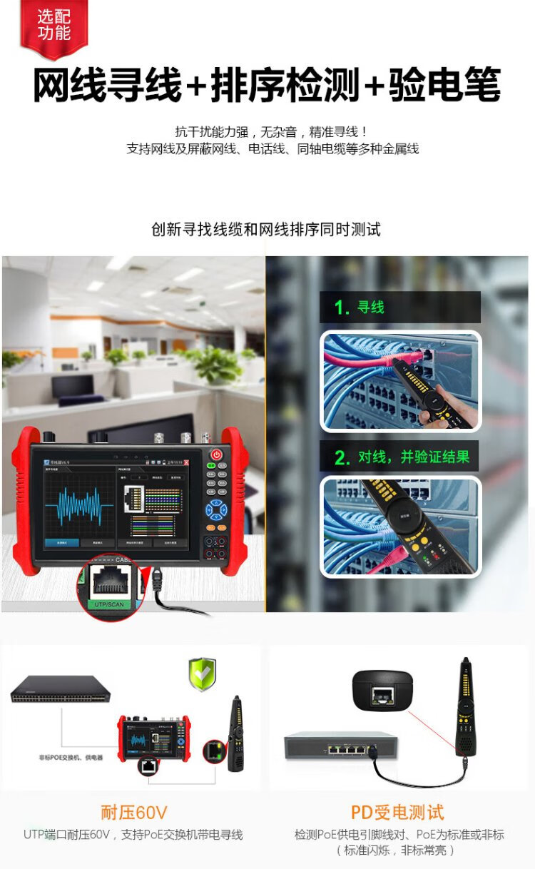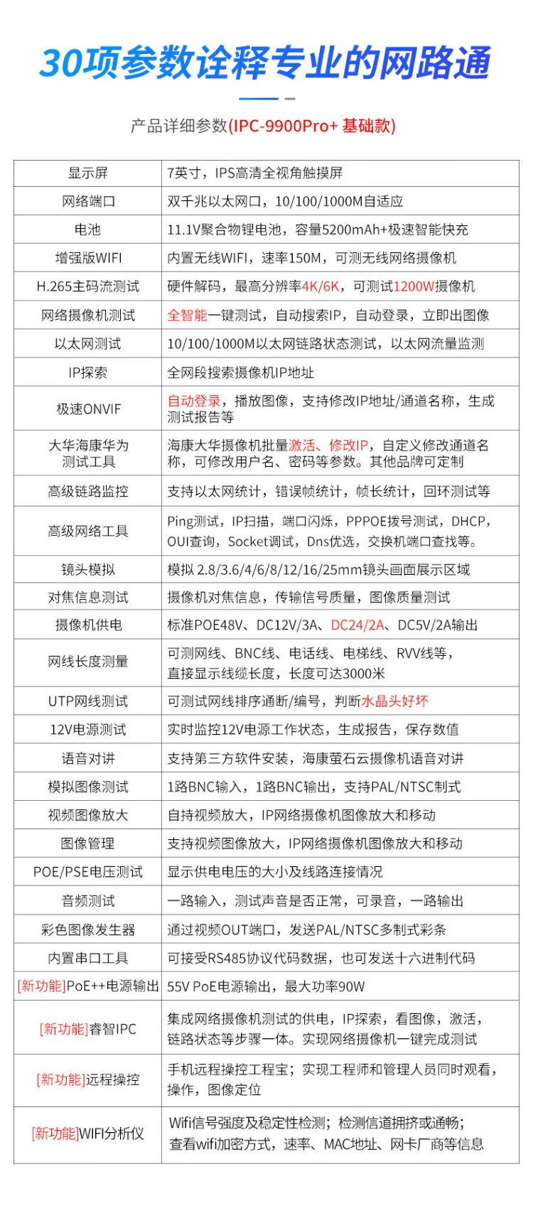 WANGLU Network Engineering Treasure IPC-9910 Pro-FT Network Simulation Video Surveillance Tester POE Network Cable Breakpoint IPC-9910 MOVT Pro-FT