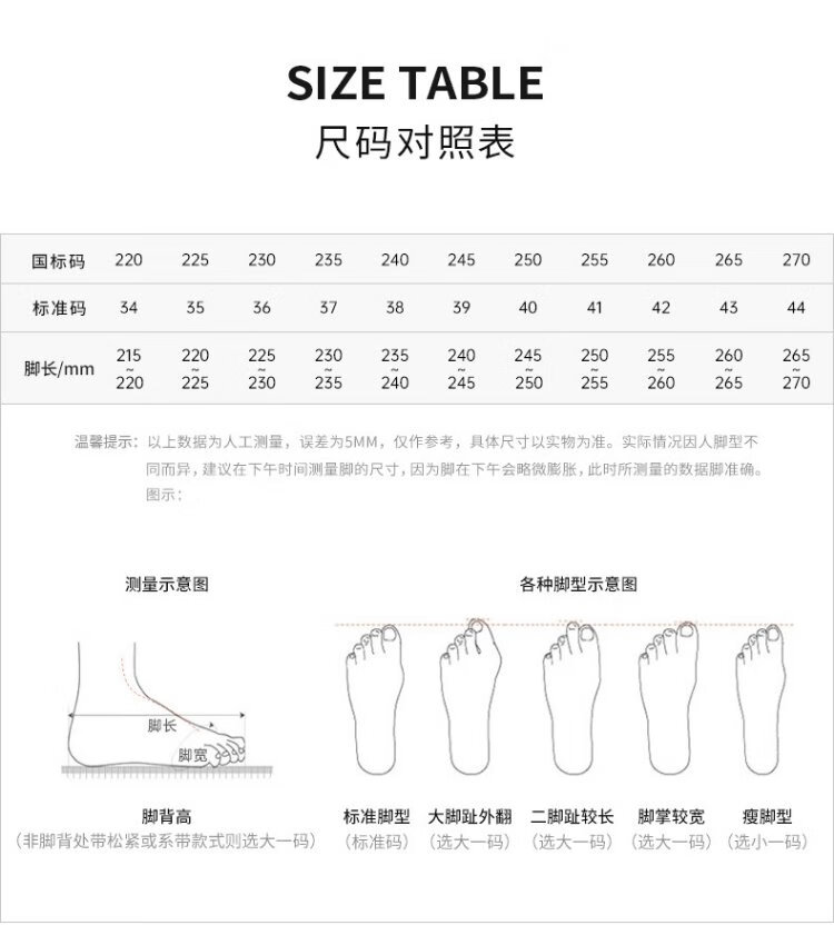 China (cm) 36 - 37 38 - 39 40 - 42 43 - 44 45 - 47