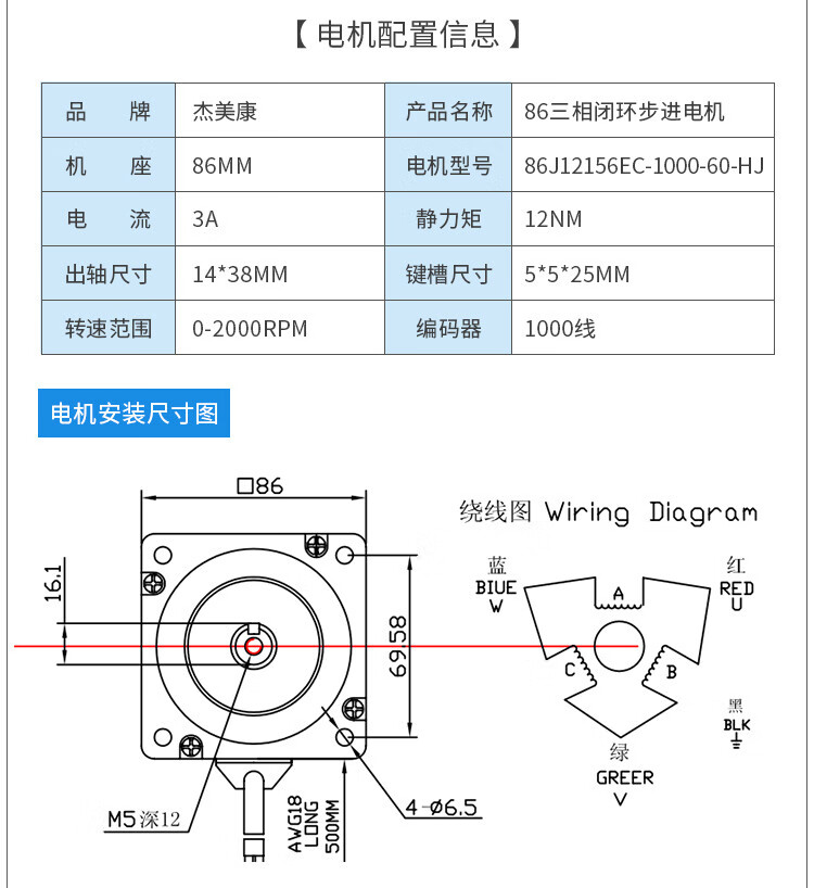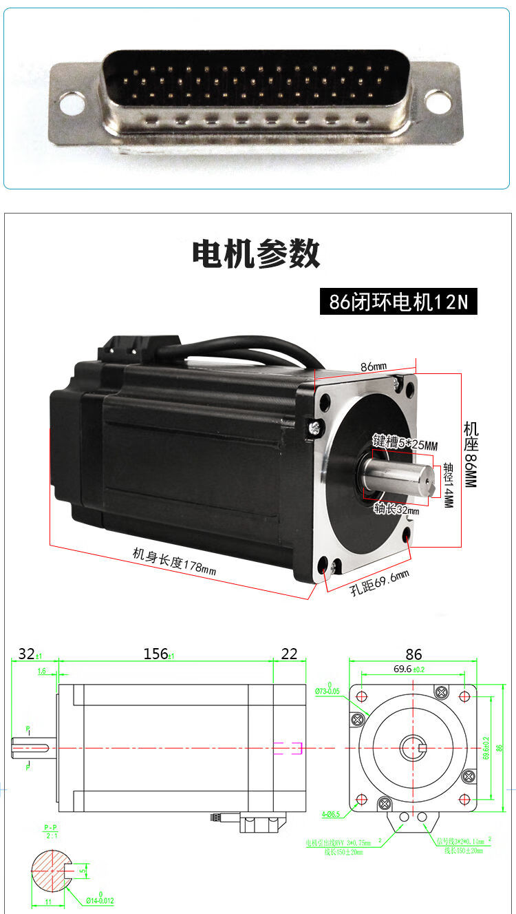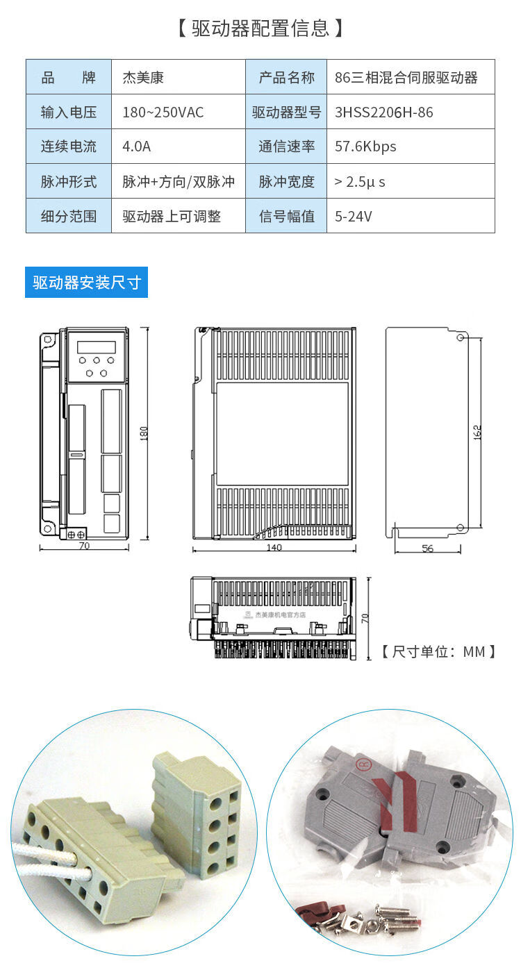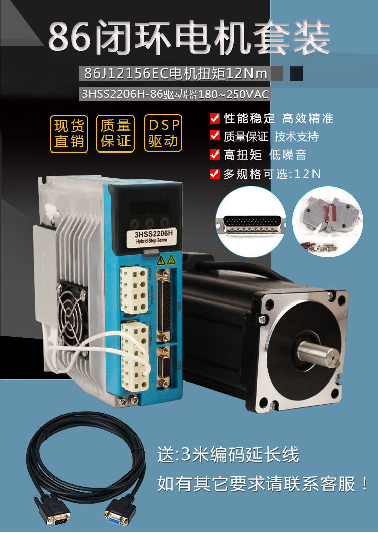 科至途86高压三相闭环电机套装12N 220V数显驱动器3HSS2206H高速不丢步 86J12156EC+3HSS2206H套装