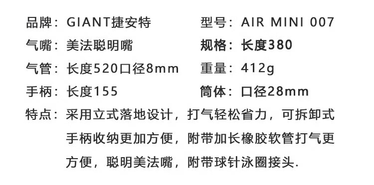 Giant bicycle pump mountain bike road bike ATX830 XTC800 American French mouth mini inflatable pump AIR 007 pump