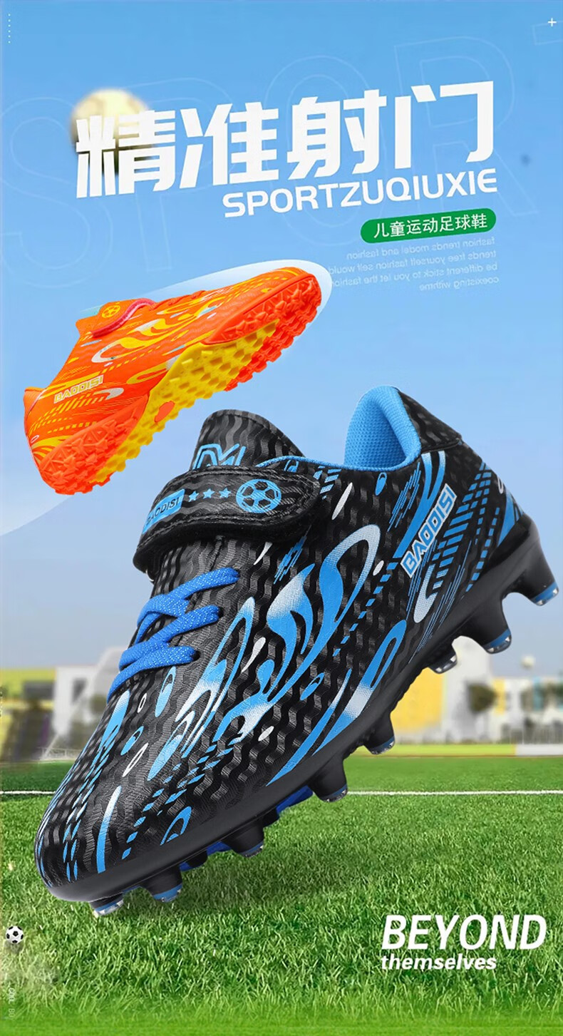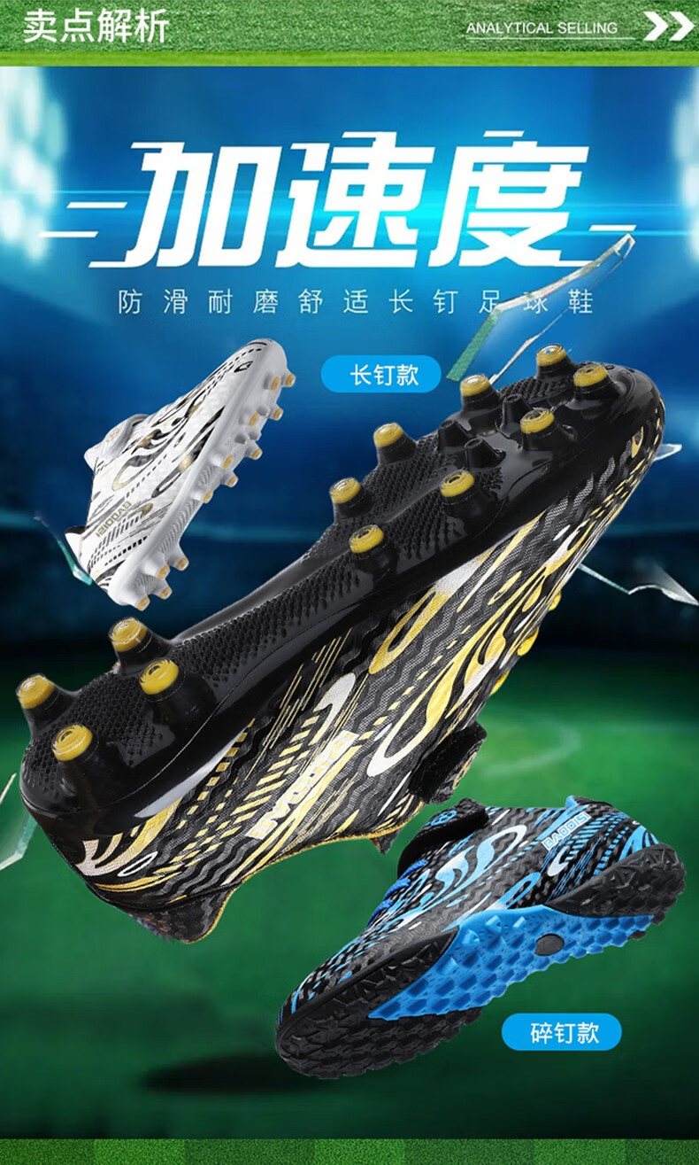 Anshoes autumn and winter Ronaldo children's football shoes for boys, teenagers, primary school boys, sports training competition shoes for boys 189 sky blue broken nails 34