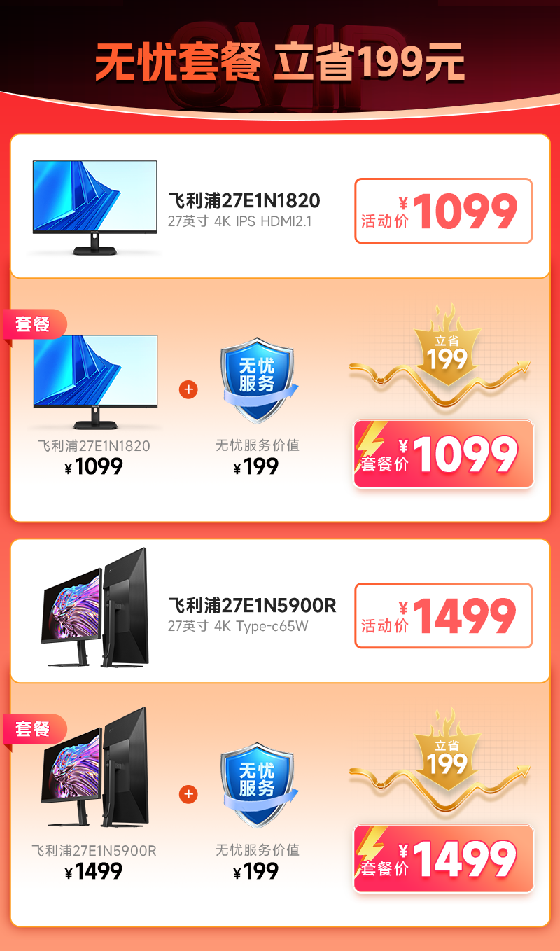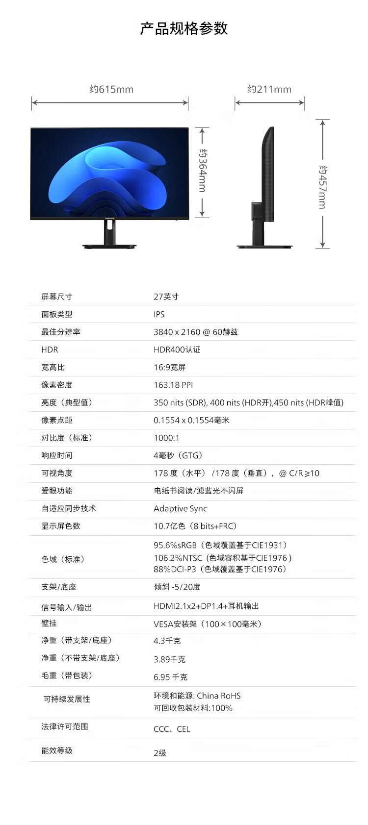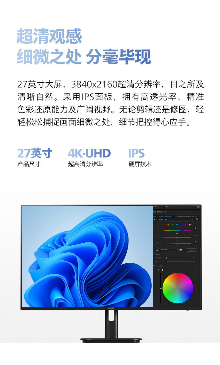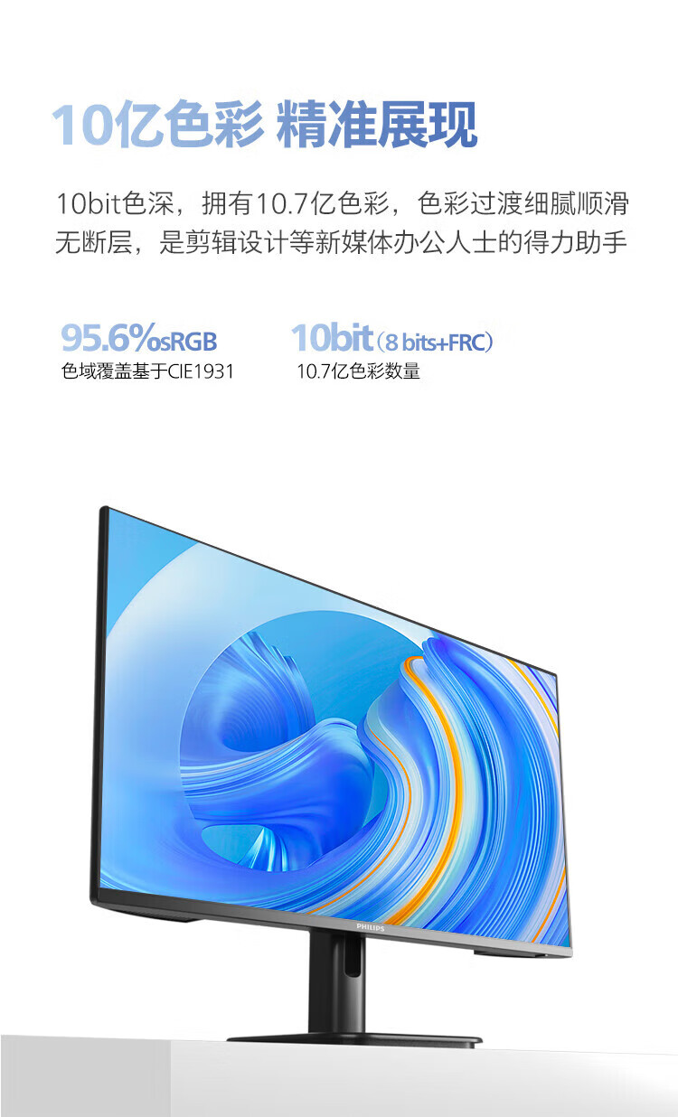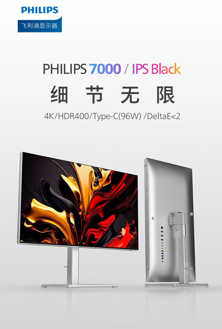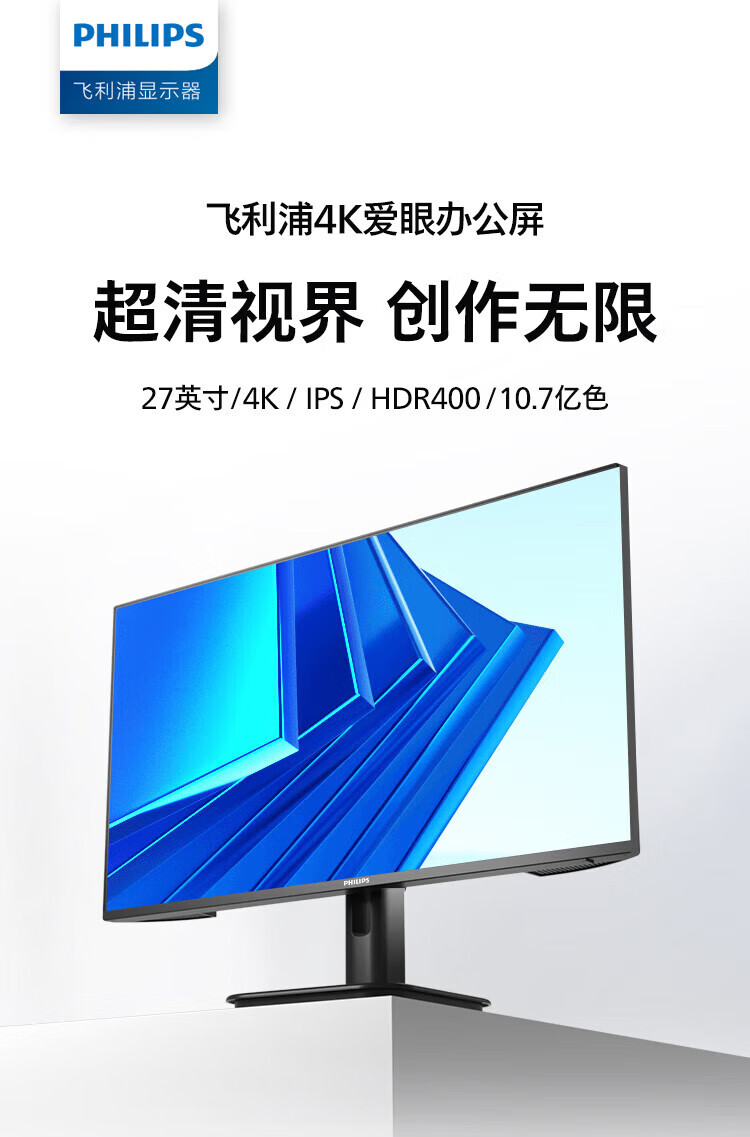 Philips (PHILIPS) 27-inch 4K display IPS 10bit HDR400 low blue light non-flicker screen HDMI2.1+DP1.4 built-in power supply office design display 27E1N1820 27E1N5900R worry-free service 4K/TypeC65W 3 years worry-free