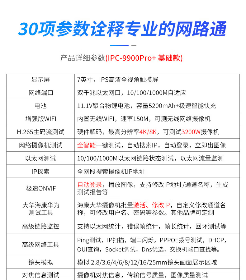 WANGLU Internet Communication 8K Engineering Treasure IPC-9900Pro+ Digital Network Video Comprehensive Tester HDMI VGA IPC-9900 MOVTADHS Plus Enhanced Edition