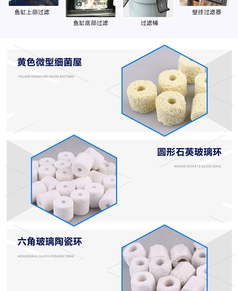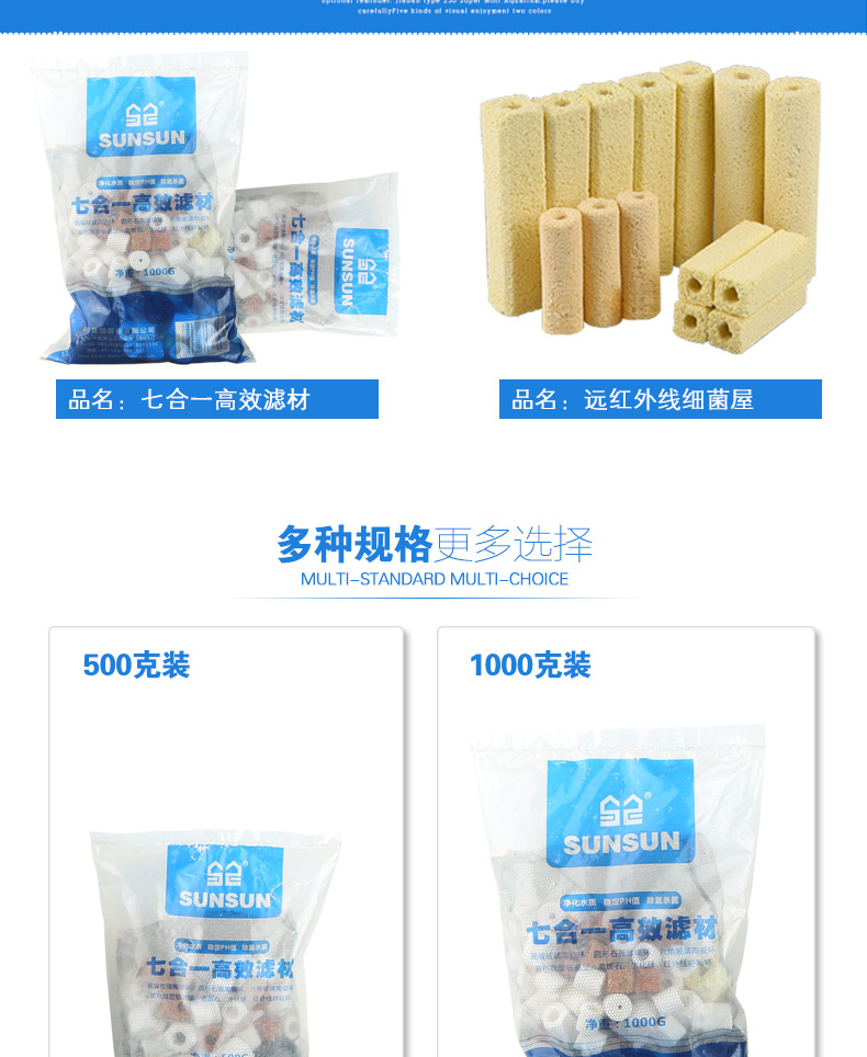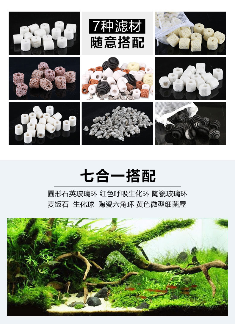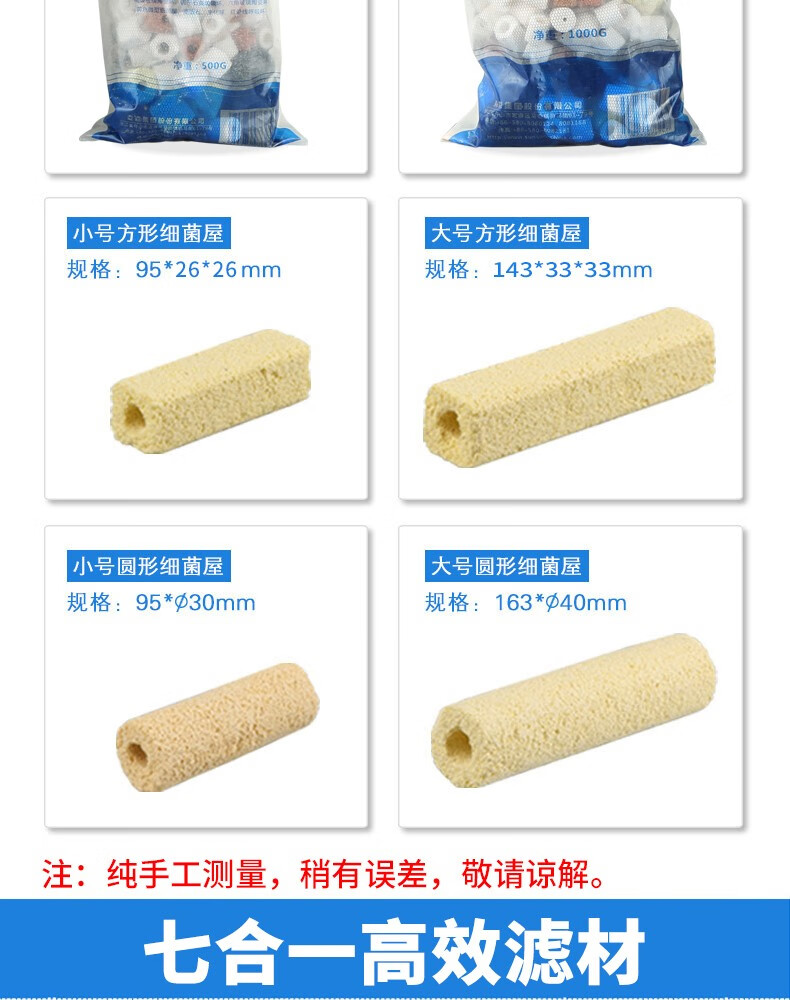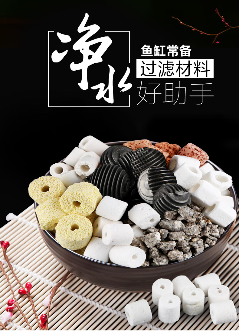 Sensen Fish Tank Filter Material Ceramic Ring Bacteria House Maifan Stone Glass Ring Aquarium Fish Pond Filter Material Set 7-in-1 Filter Material 1000g* with mesh bag
