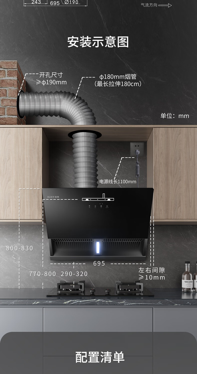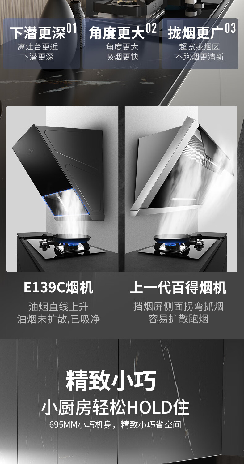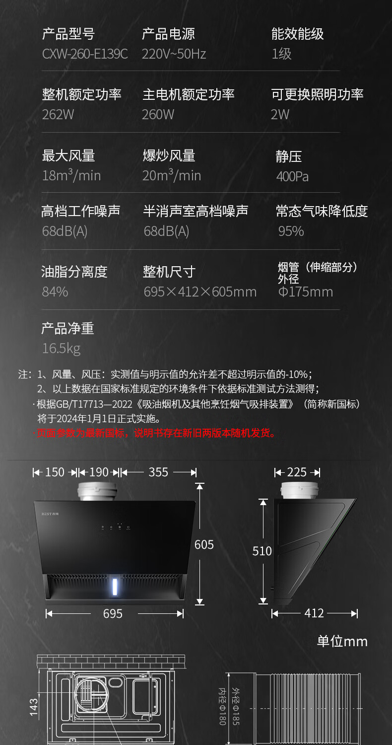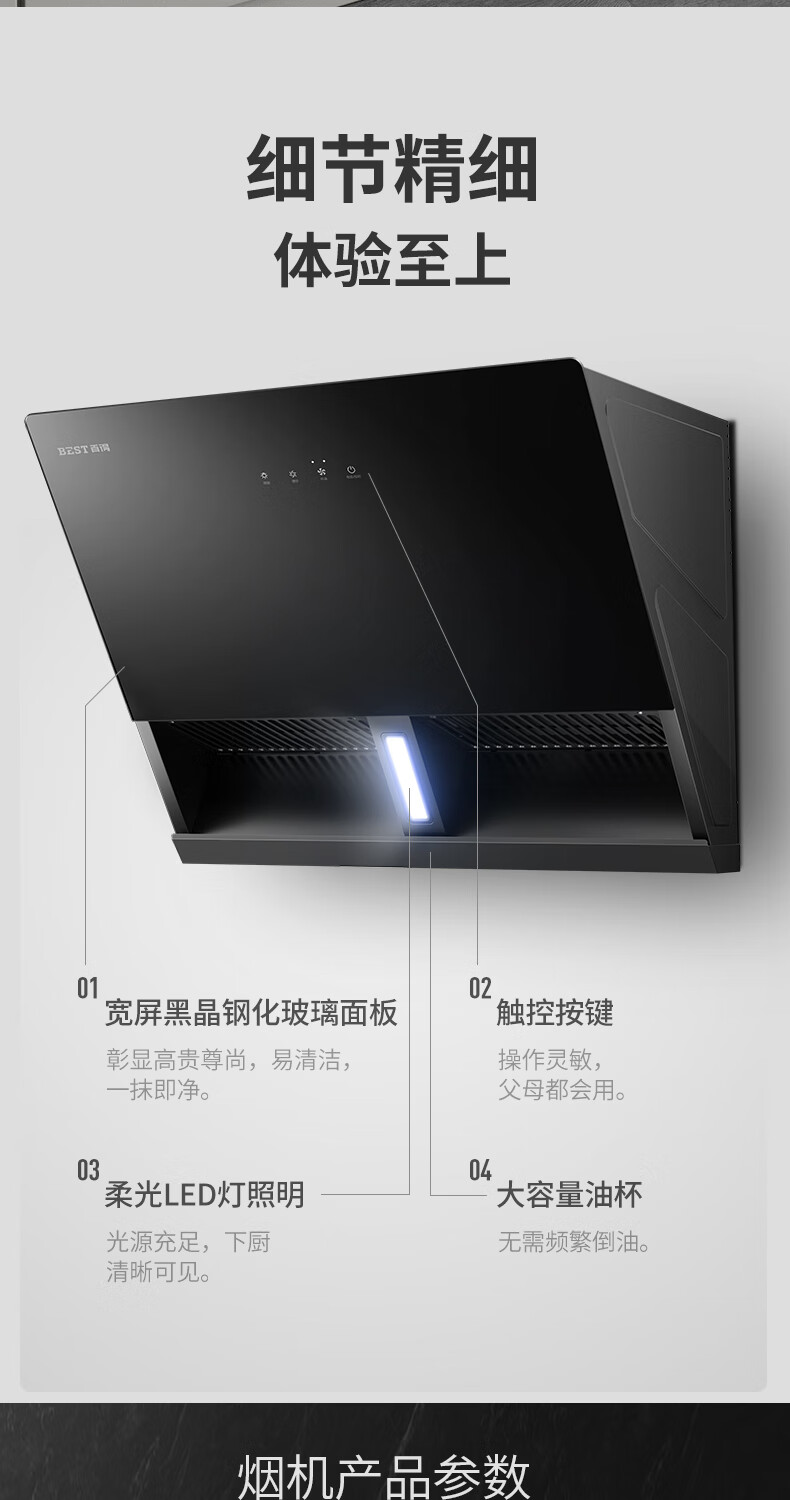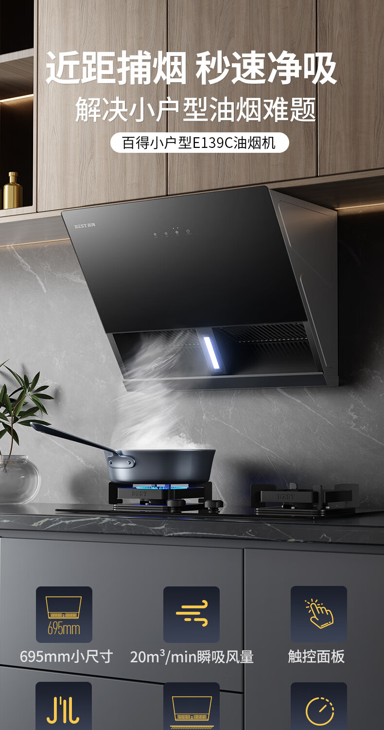 百得(BEST)华帝出品侧吸式抽油烟机家用小尺寸695mm触控式一级能效20立方大吸力烟机脱排油烟机 补贴20% 【单烟机】CXW-260-E151C