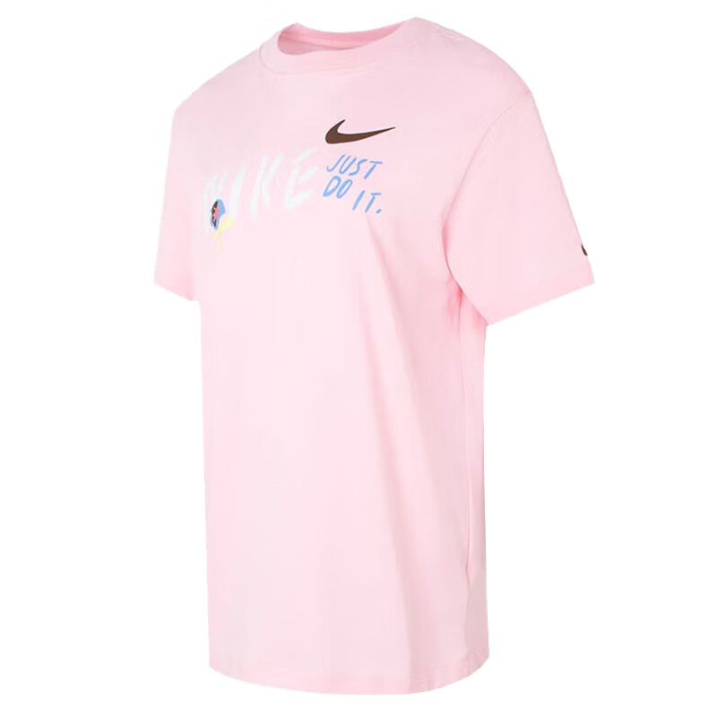 Nike (NIKE) sports suit women's 25 summer new style comfortable and breathable printed pink short-sleeved T-shirt casual trousers two-piece set DV6095+ white mesh lining pants pants too big XL