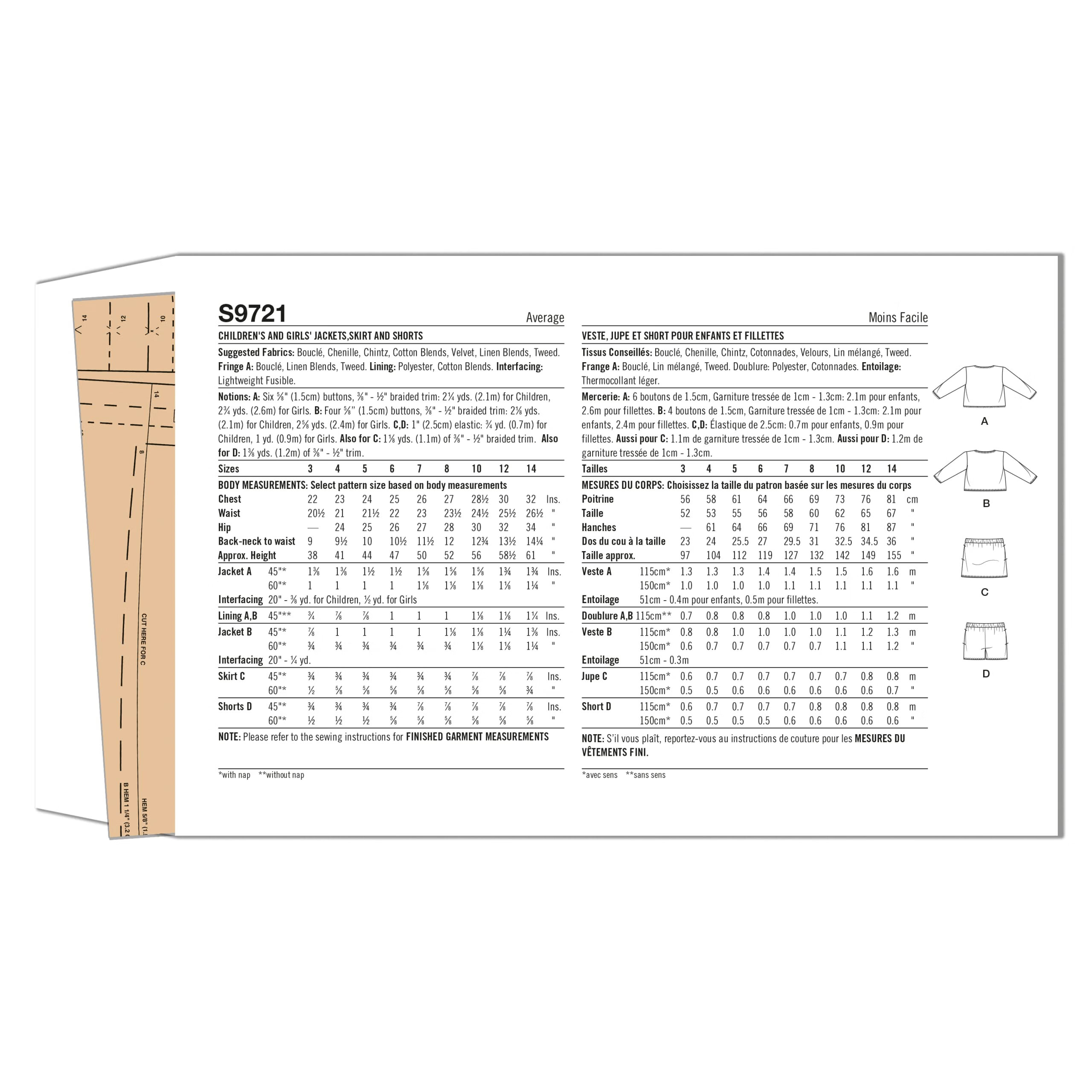 SIMPLICITYSS9721HH Girls Jacket Skirt and Shorts