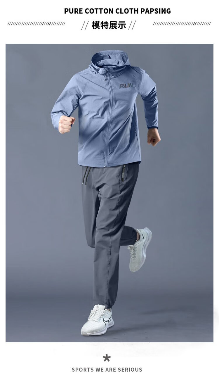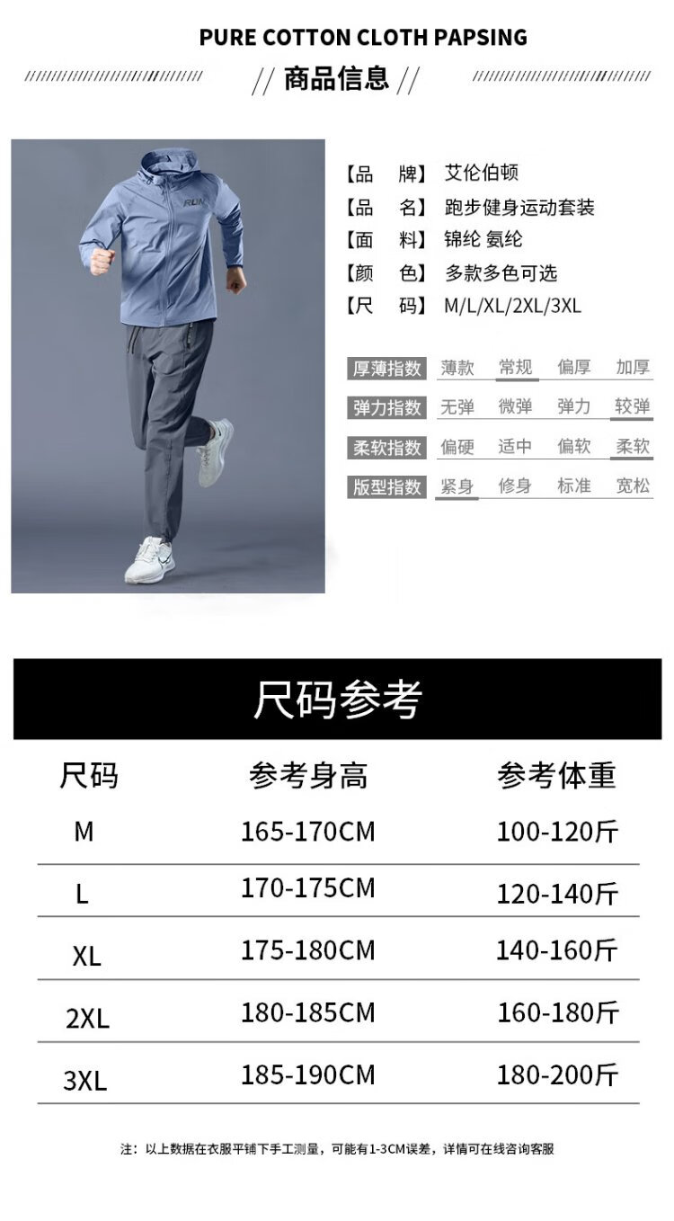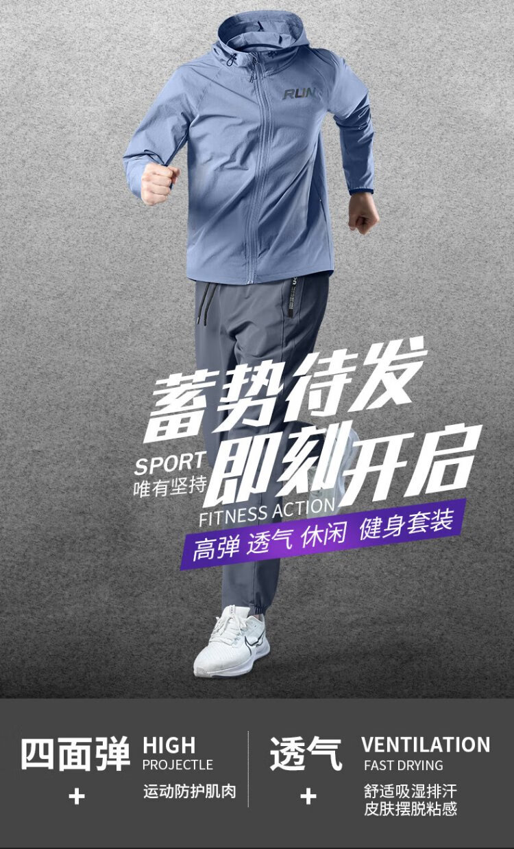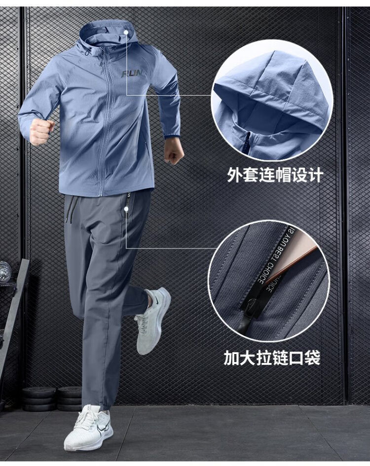 Allen Burton Sports Suit Men's Autumn Running Quick-Drying Professional Morning Running Suit Windproof Jacket Mountain Hiking Training Fitness Clothing Three-piece Set Gray Blue Sports Quick-drying Back Waist Pocket XL (140-160Jin Jin equals 0.5kg)