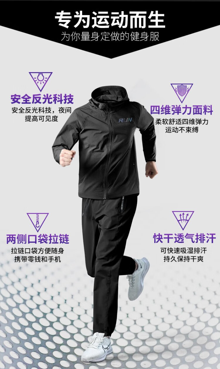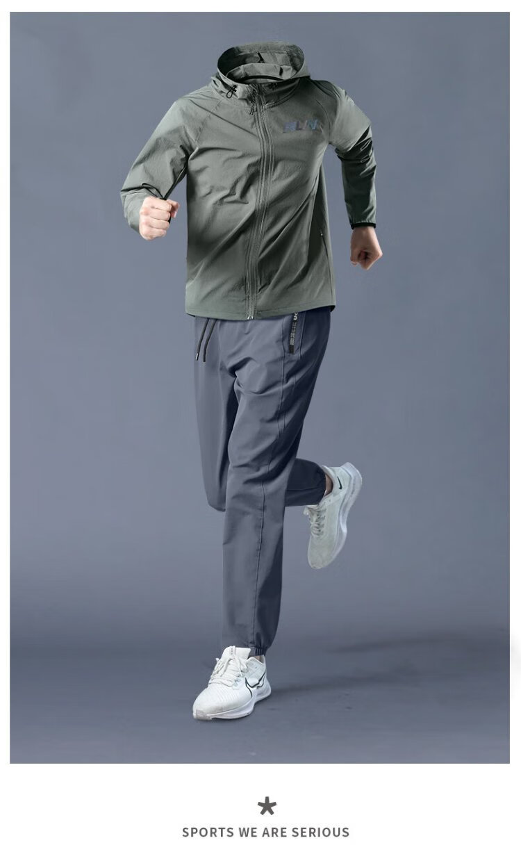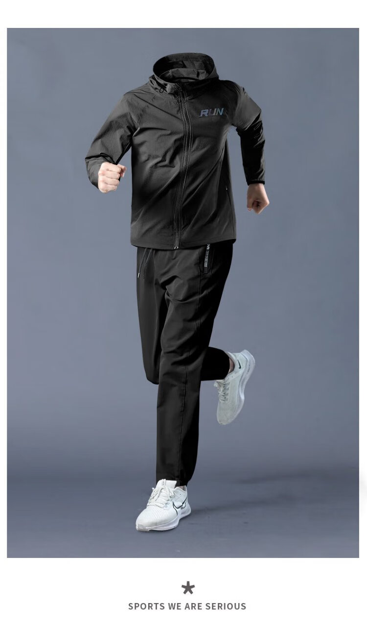Allen Burton Sports Suit Men's Autumn Running Quick-Drying Professional Morning Running Suit Windproof Jacket Mountain Hiking Training Fitness Clothing Three-piece Set Gray Blue Sports Quick-drying Back Waist Pocket XL (140-160Jin Jin equals 0.5kg)