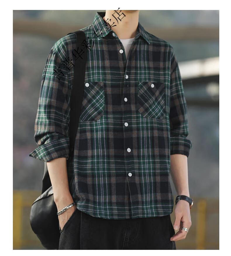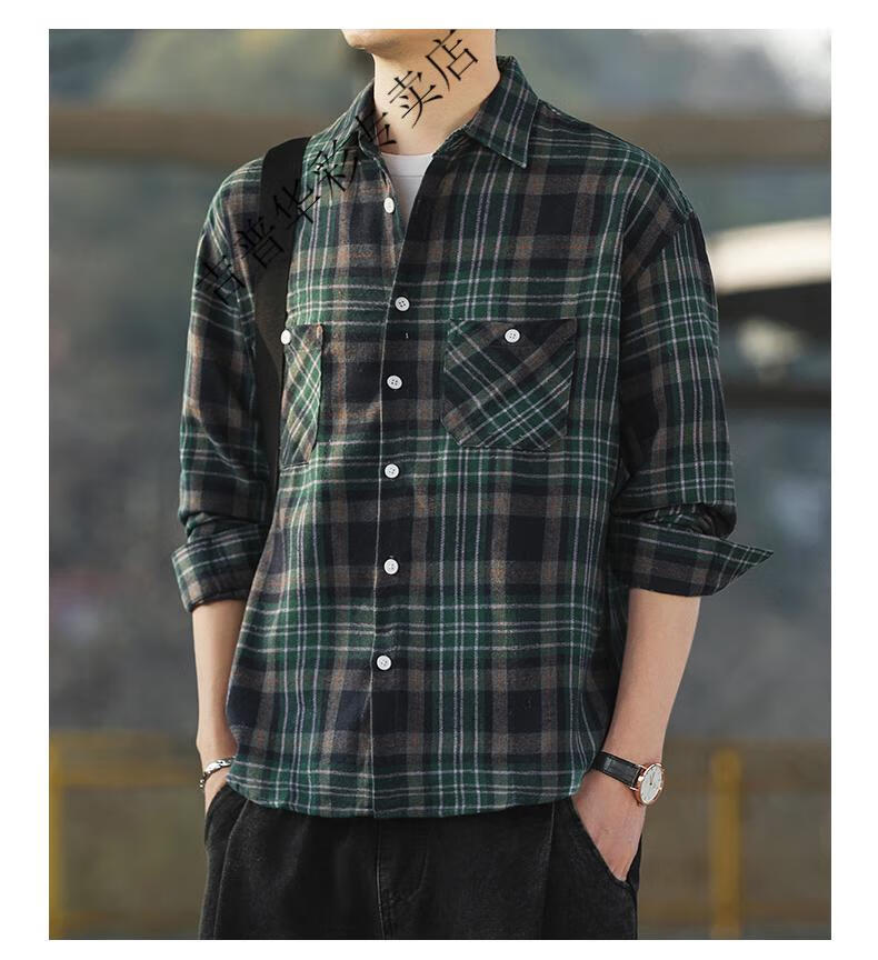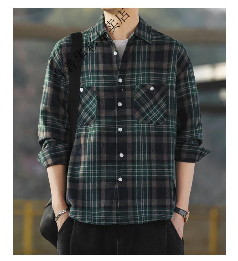 JEEP SPIRIT美式复古格子长袖衬衫男女春秋季2025新款宽松韩式工装衬衣外套潮 K12108白色 M