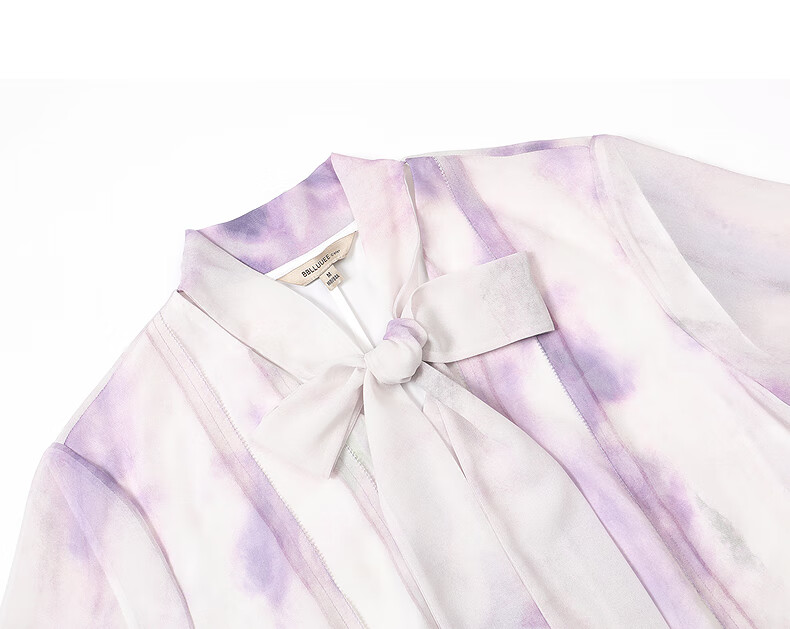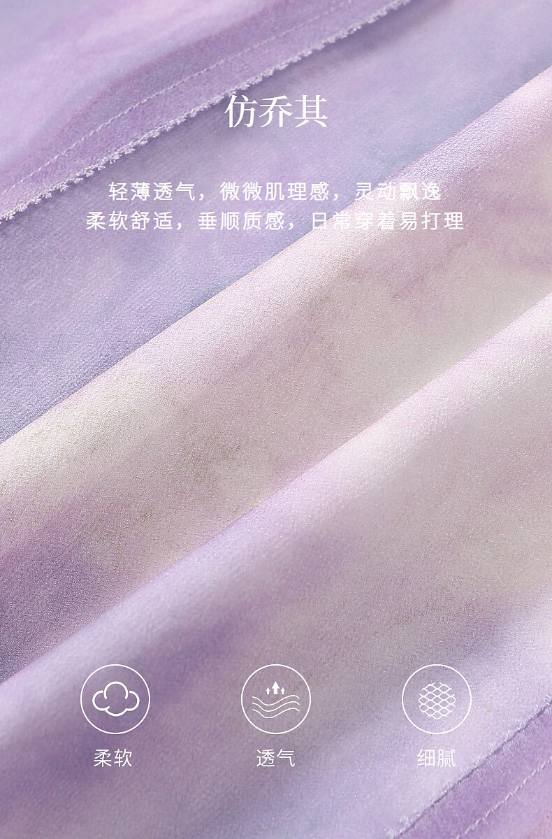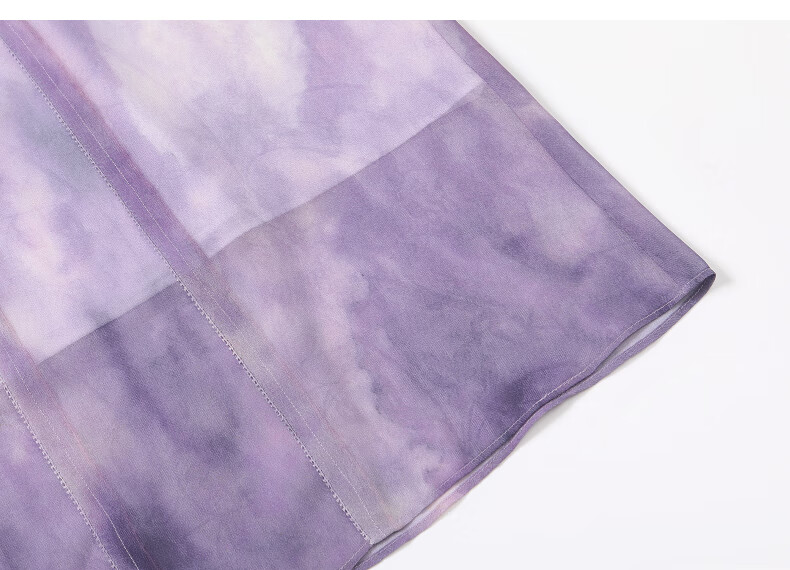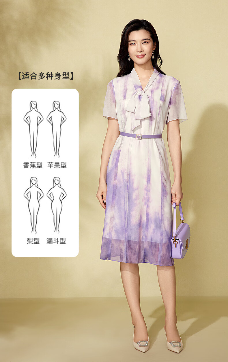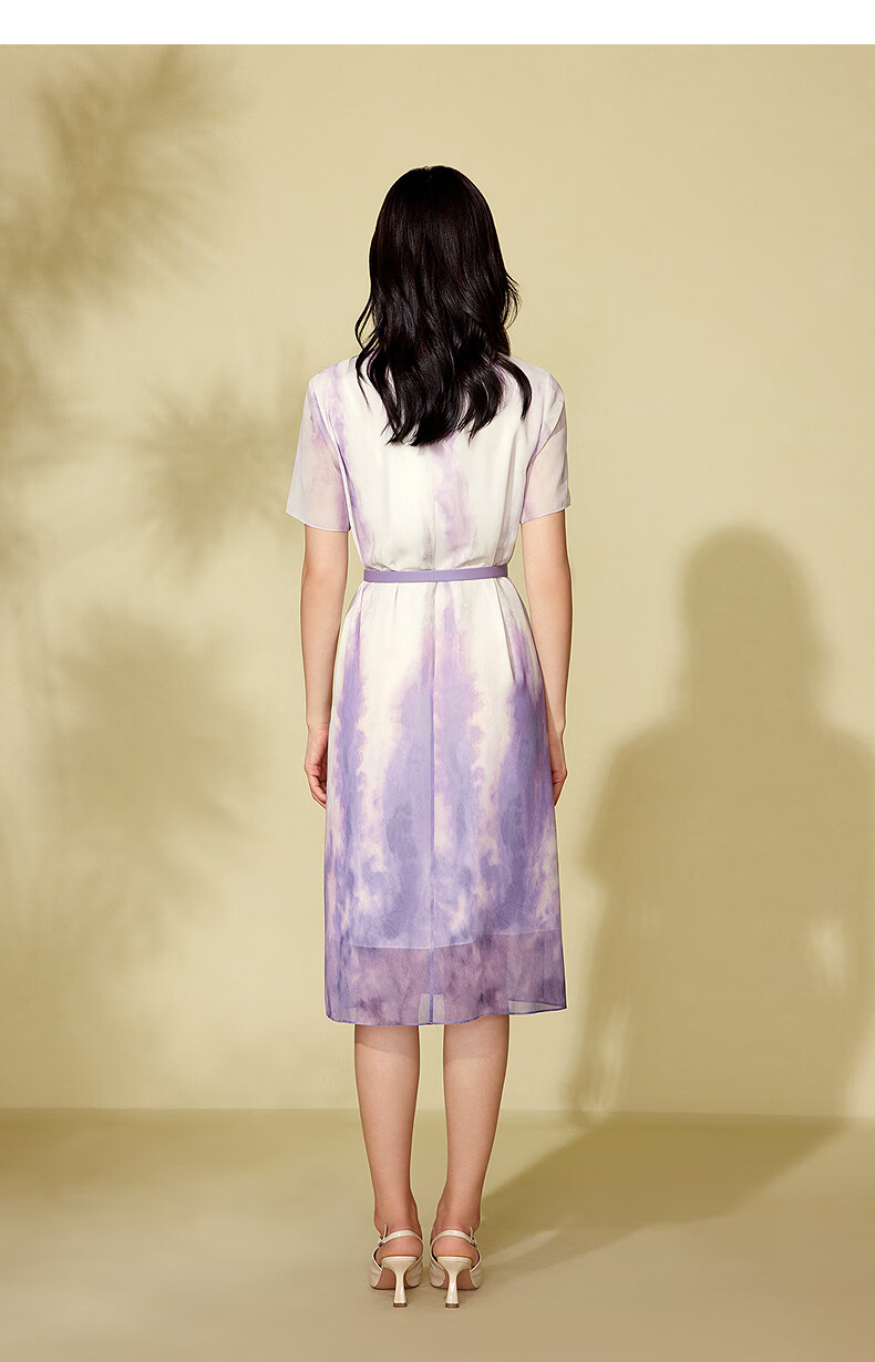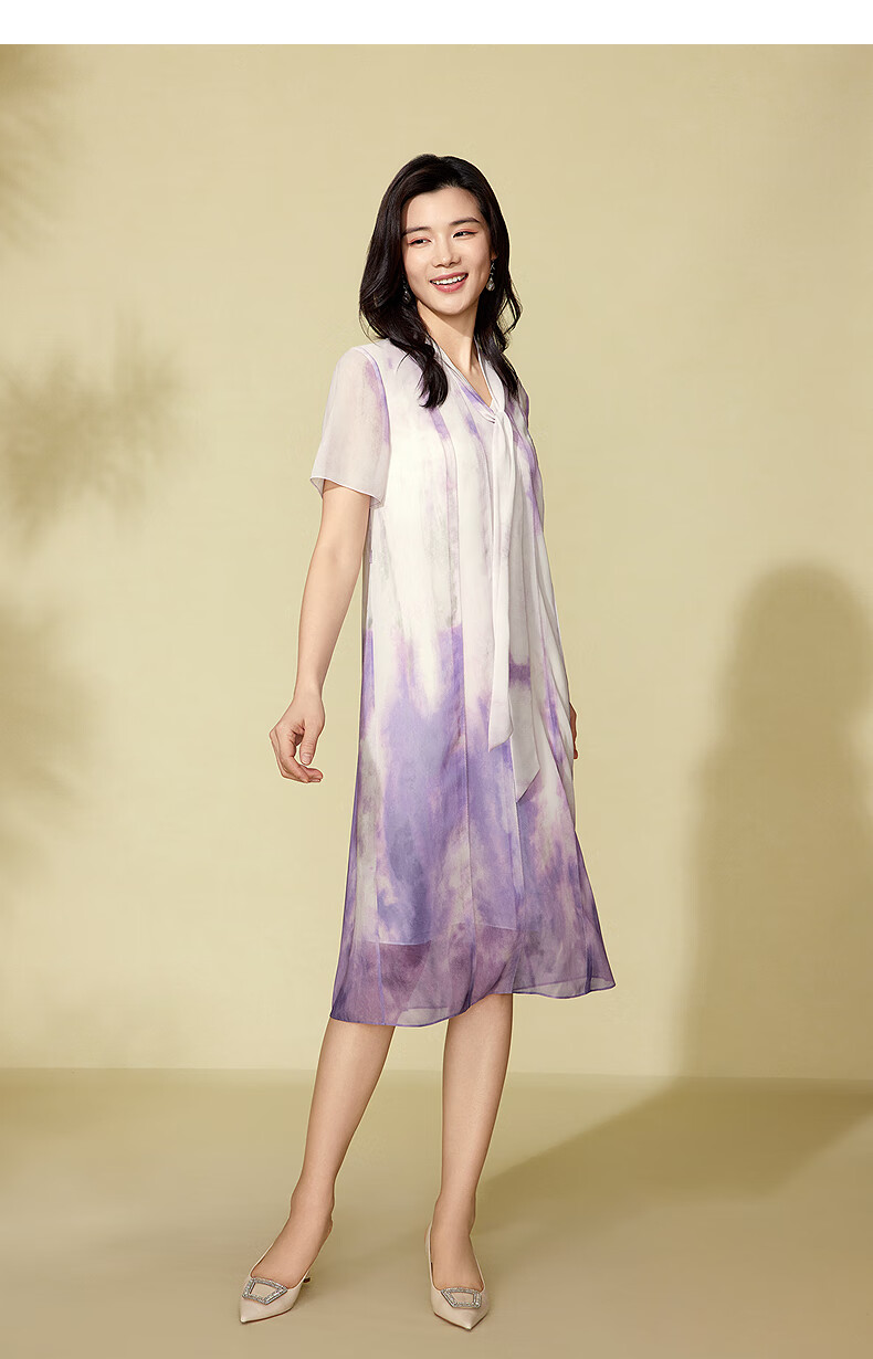 粉蓝衣橱【紫霞绮梦】2025夏装东方感飘带印花短袖连衣裙女552L689 云雾紫 S
