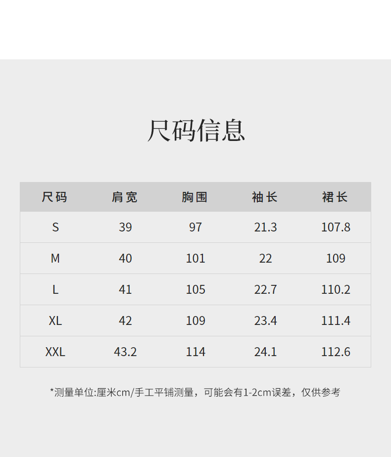 China (cm) 160-165/84-86 165-170 / 88-90 167-172 / 92-96 168-173 / 98-102 170-176 / 106-110