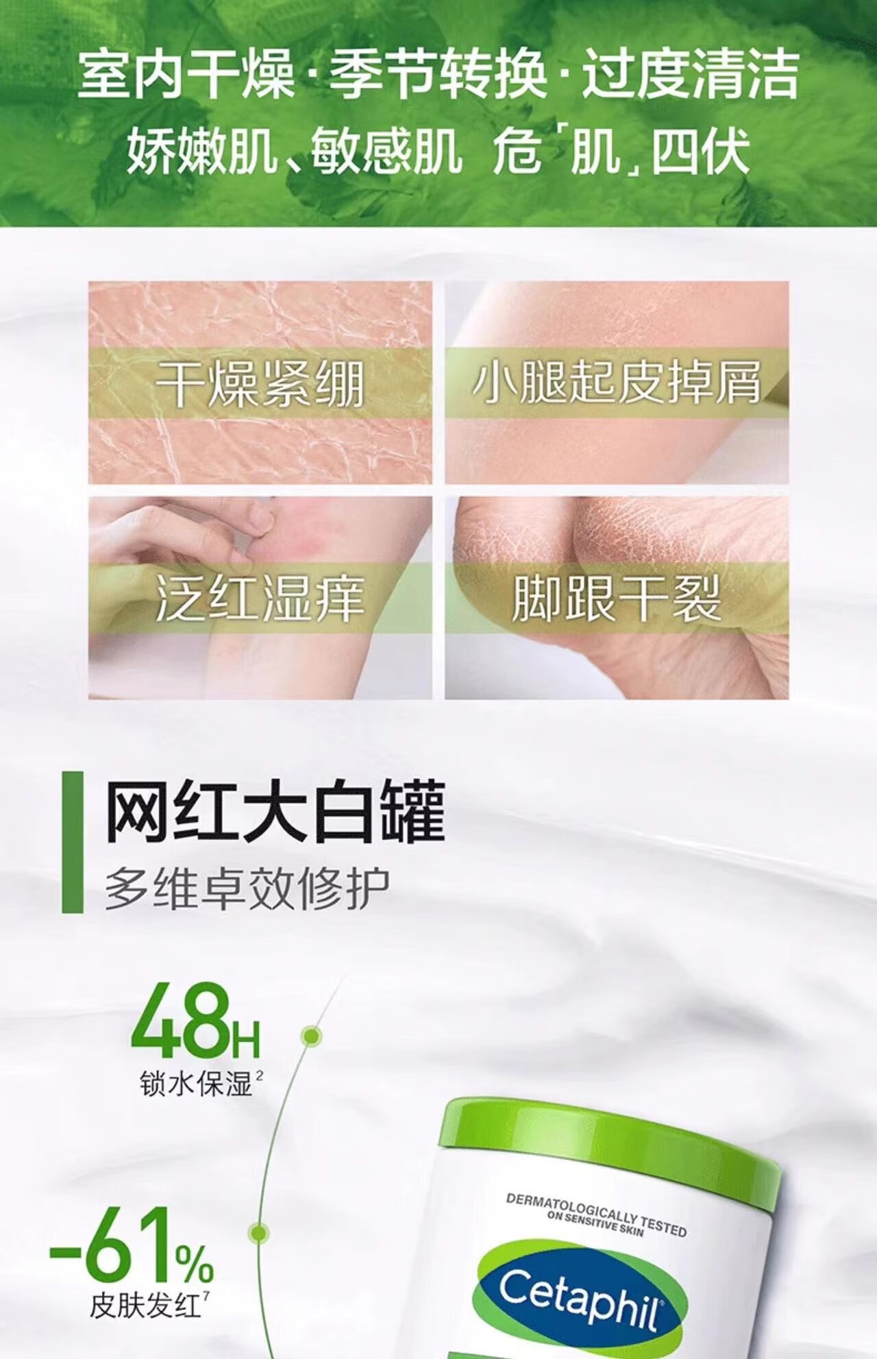 Cetaphil Large White Can Soothing Moisturizing Cream 550g Hydrating Body Cream Sensitive Skin Dry Skin Maternity Baby Cream Available Two bottles 1100g Domestic version official website anti-counterfeiting can be checked