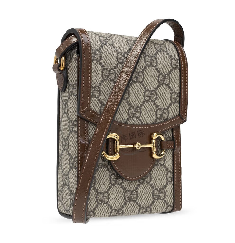 Gucci (GUCCI) presbyopic LOGO horsebit buckle single shoulder crossbody bag mobile phone bag for men and women in stock 625615 92TCG 9761
