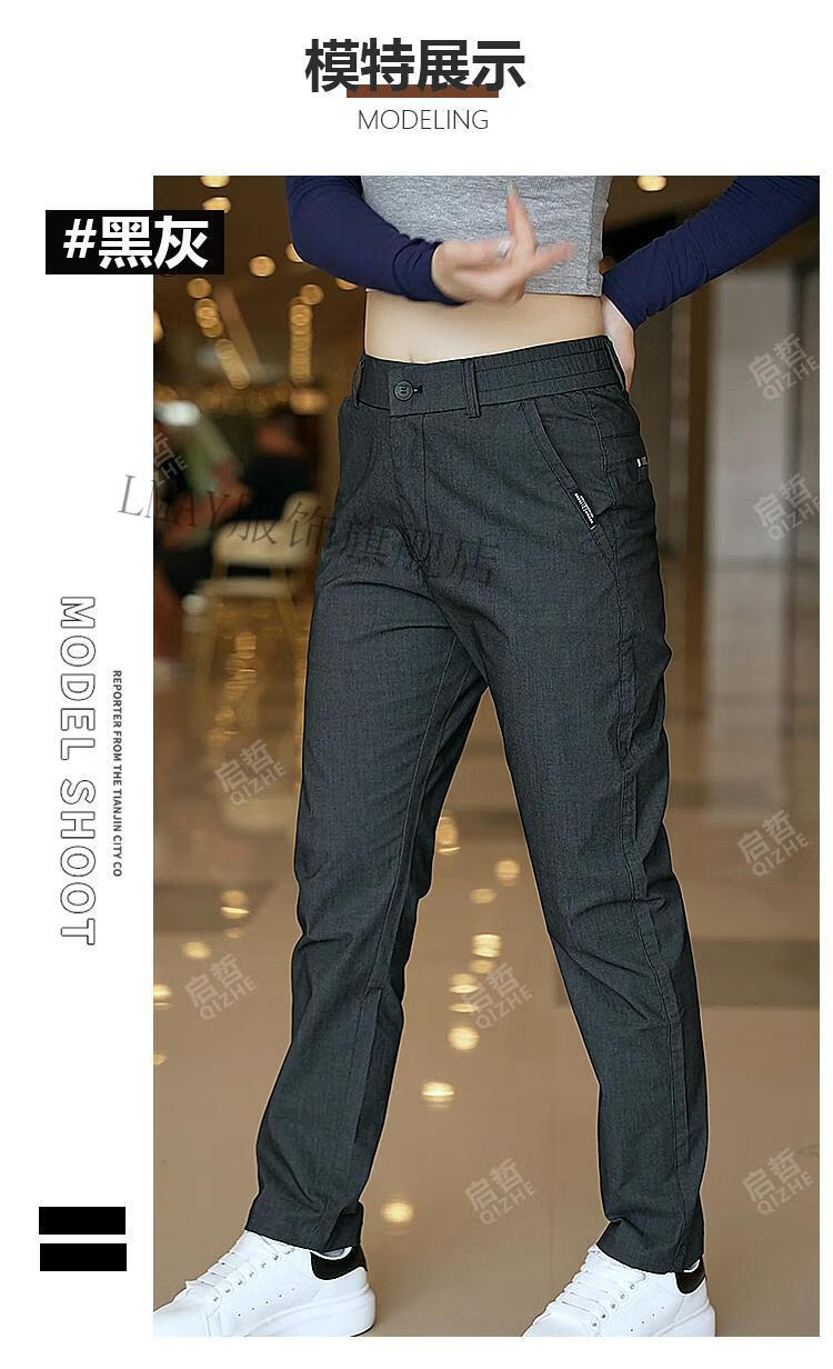 LMAY Qizhe spring new light luxury men's business casual pants, versatile and fashionable four-color straight-leg long pants 838 black gray size 28