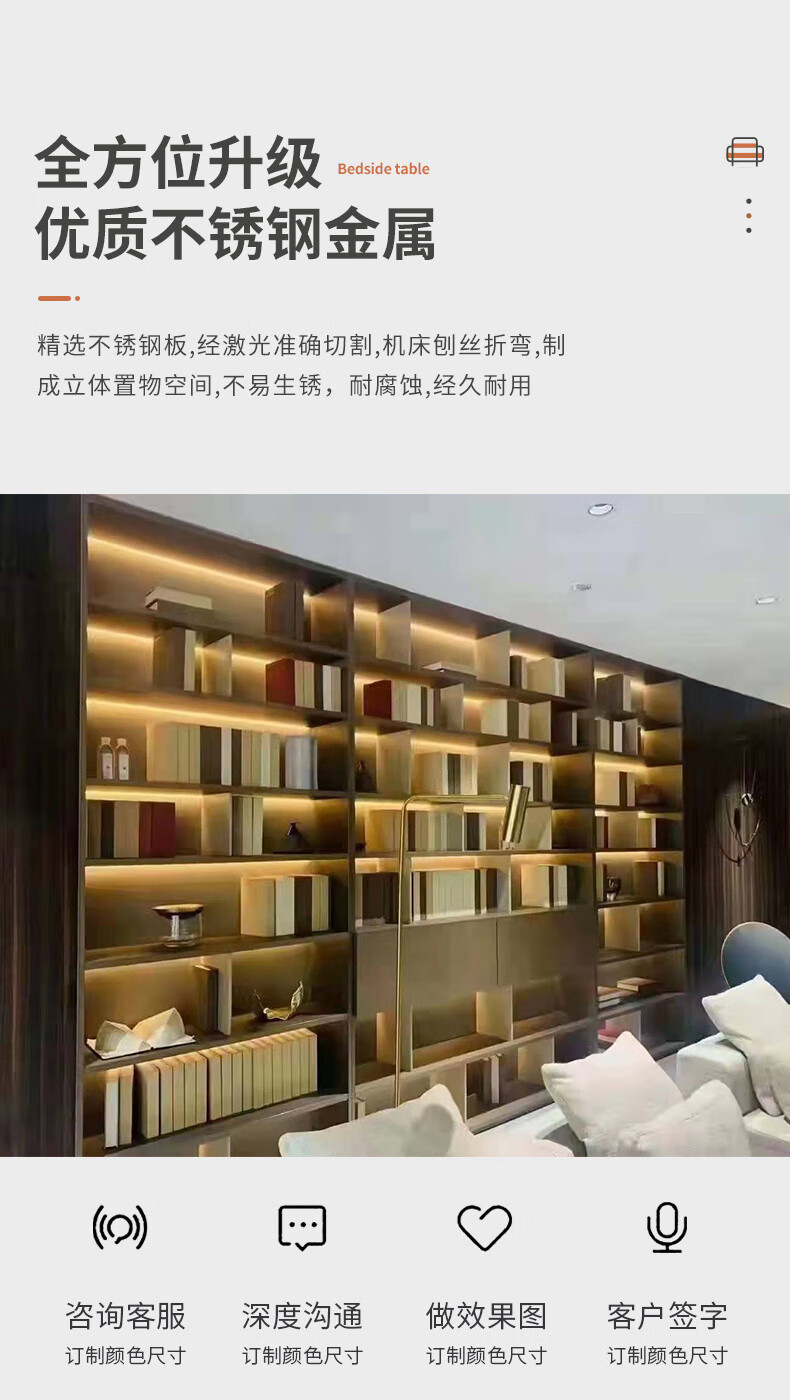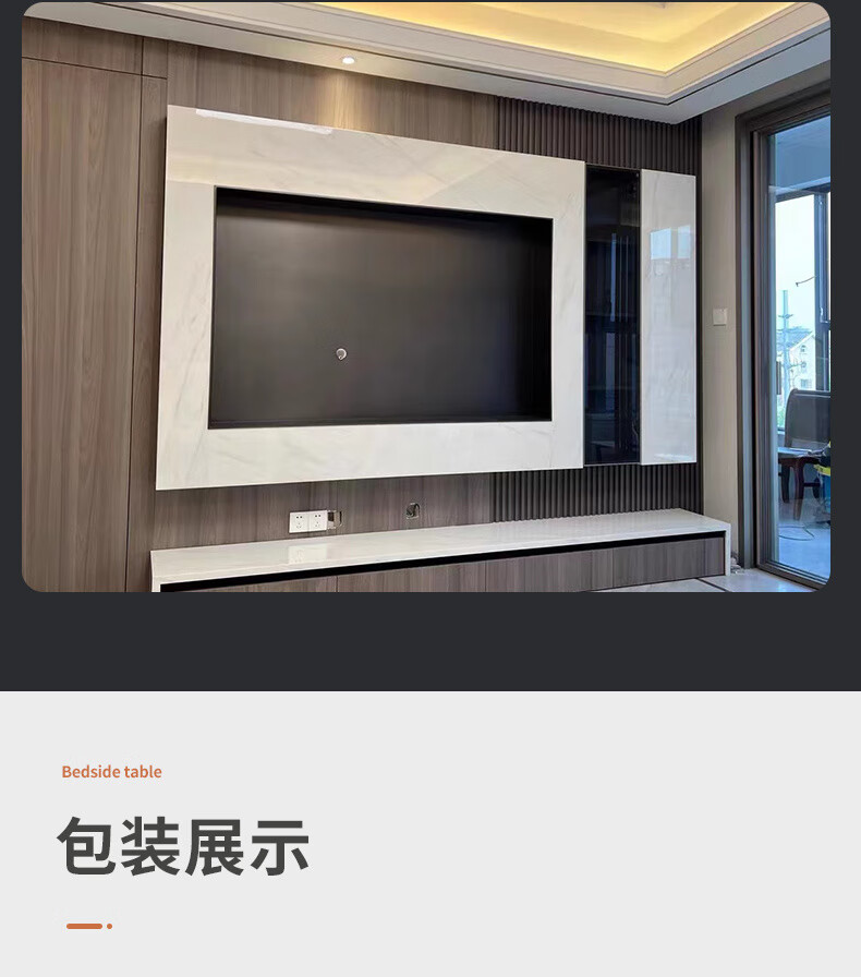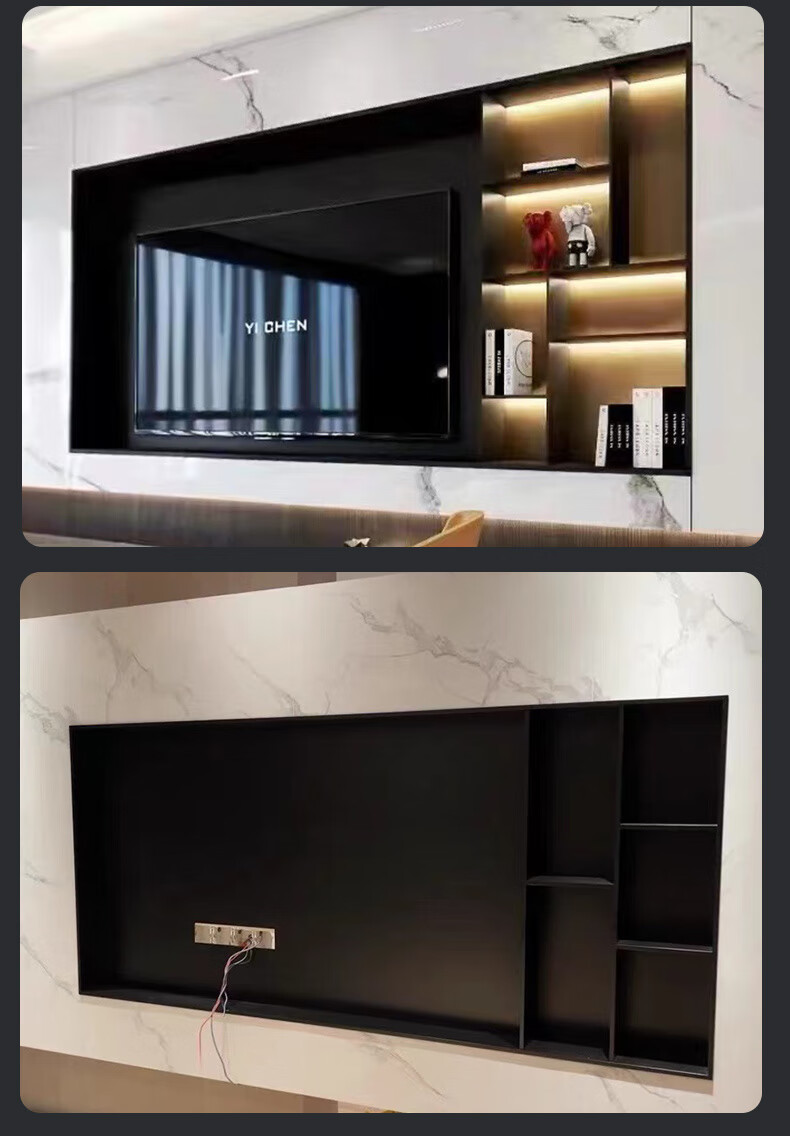 Vinoa personnalisé en acier inoxydable meuble TV et armoire à vin fond décoratif applique murale de luxe salon niche intégré 85 pouces 1155*2960*150E style