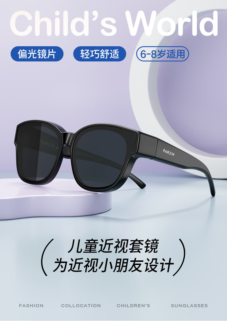 PARZIN polarized children's sunglasses for men and women, fashionable and lightweight, can be worn over glasses, sun protection sunglasses, bright black 12109 polarized
