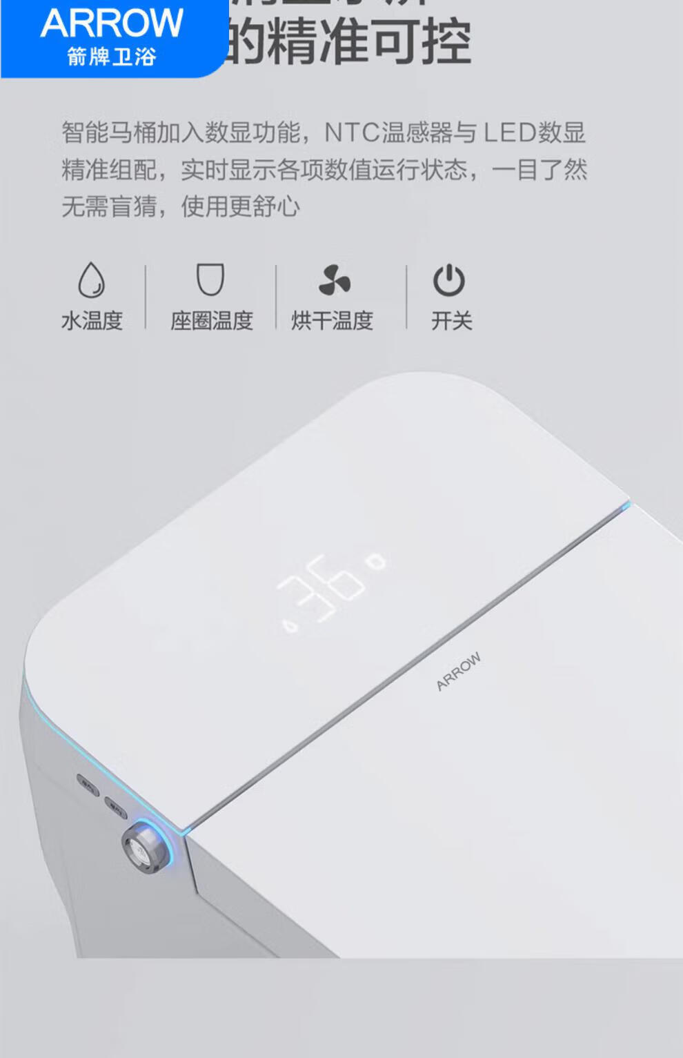 ARROW fully automatic flip-top smart toilet household electric multi-functional instant hot toilet with no water pressure limit 829 high-end version - automatic flip-top (no water pressure 305mm