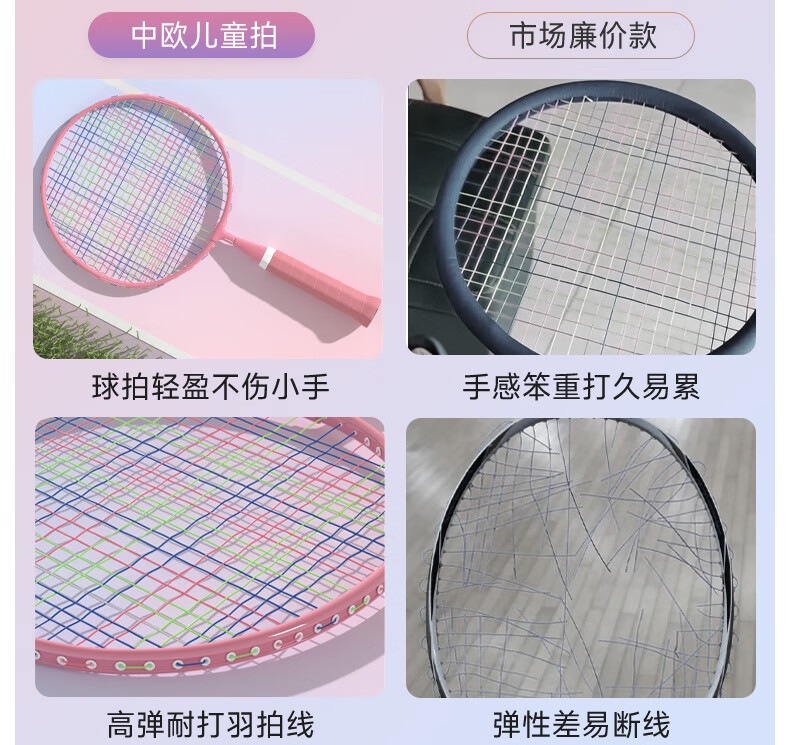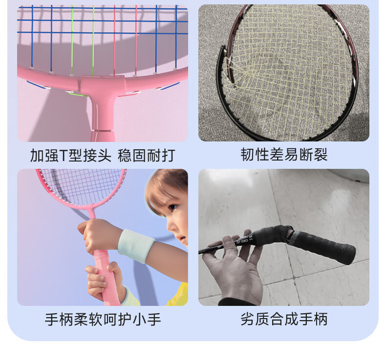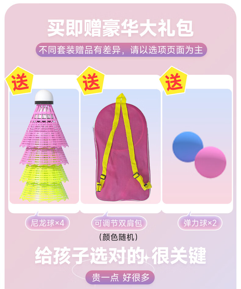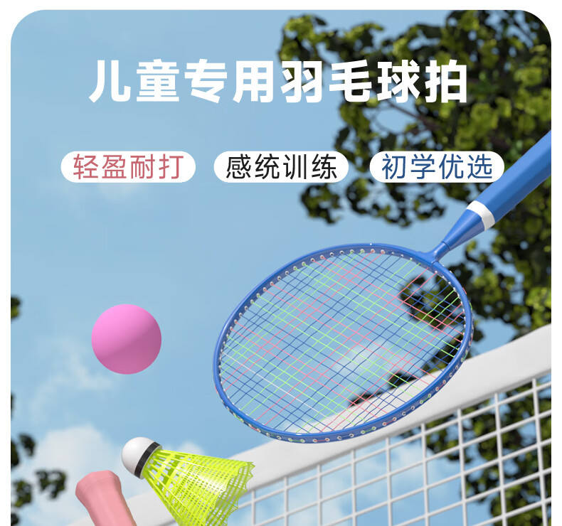 China-Europe racket small badminton racket for children's ultra-light basic double shots for children 6-13-year-old primary school students kindergarten children pink blue double shots [backpack + 6 special balls] finished shot