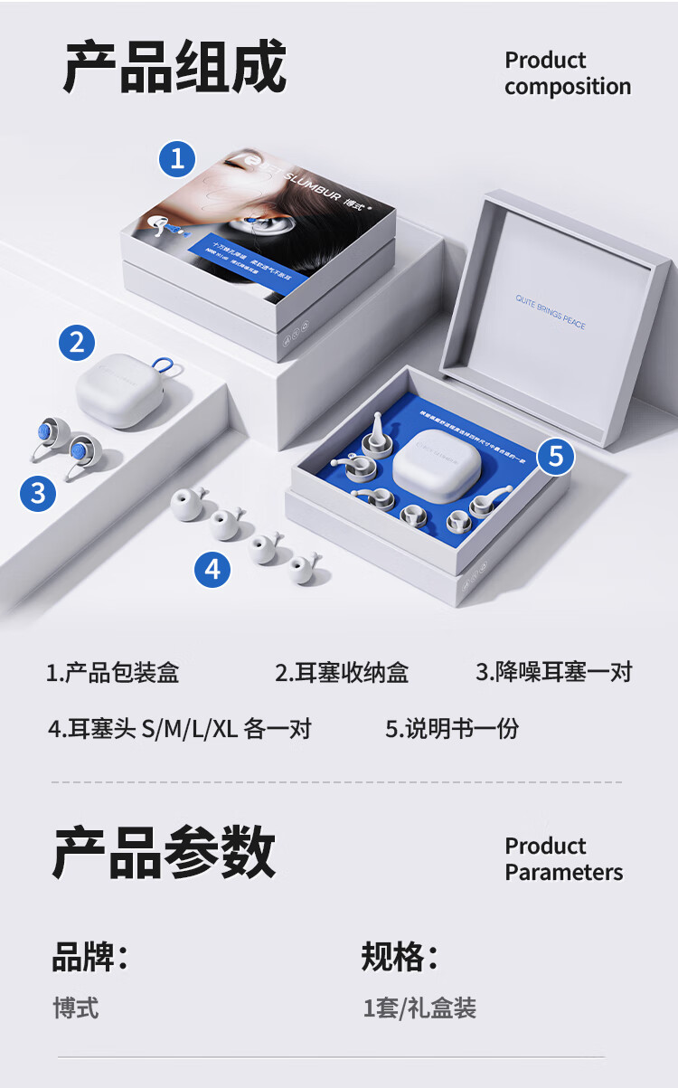 Bo style cloud earplugs for sleeping noise-proof snoring and special sleeping sound insulation noise reduction and quiet artifact silicone super breathable blue set