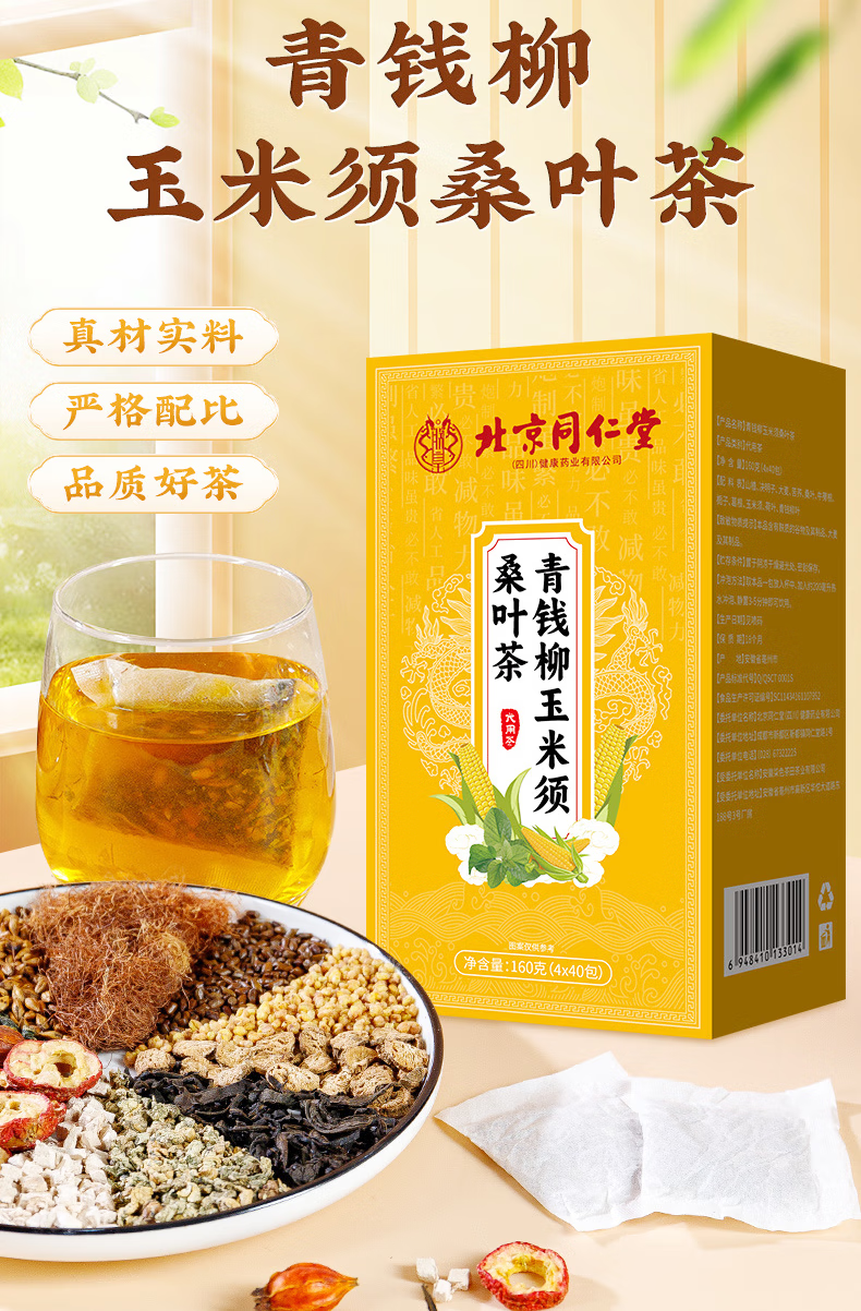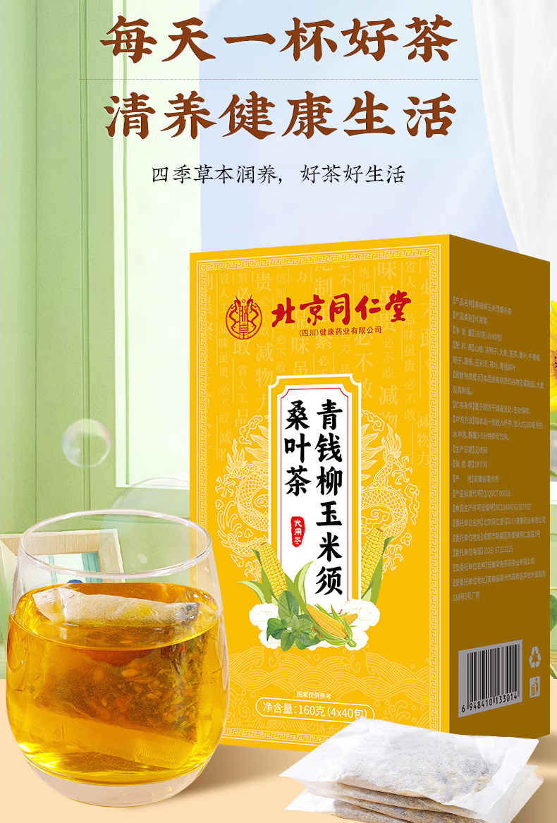 Tongrentang (TRT) Пекин Tongrentang Qingqianliu, кукуруза, кудзу, чай из листьев шелковицы, 6 коробок, 240 маленьких упаковок