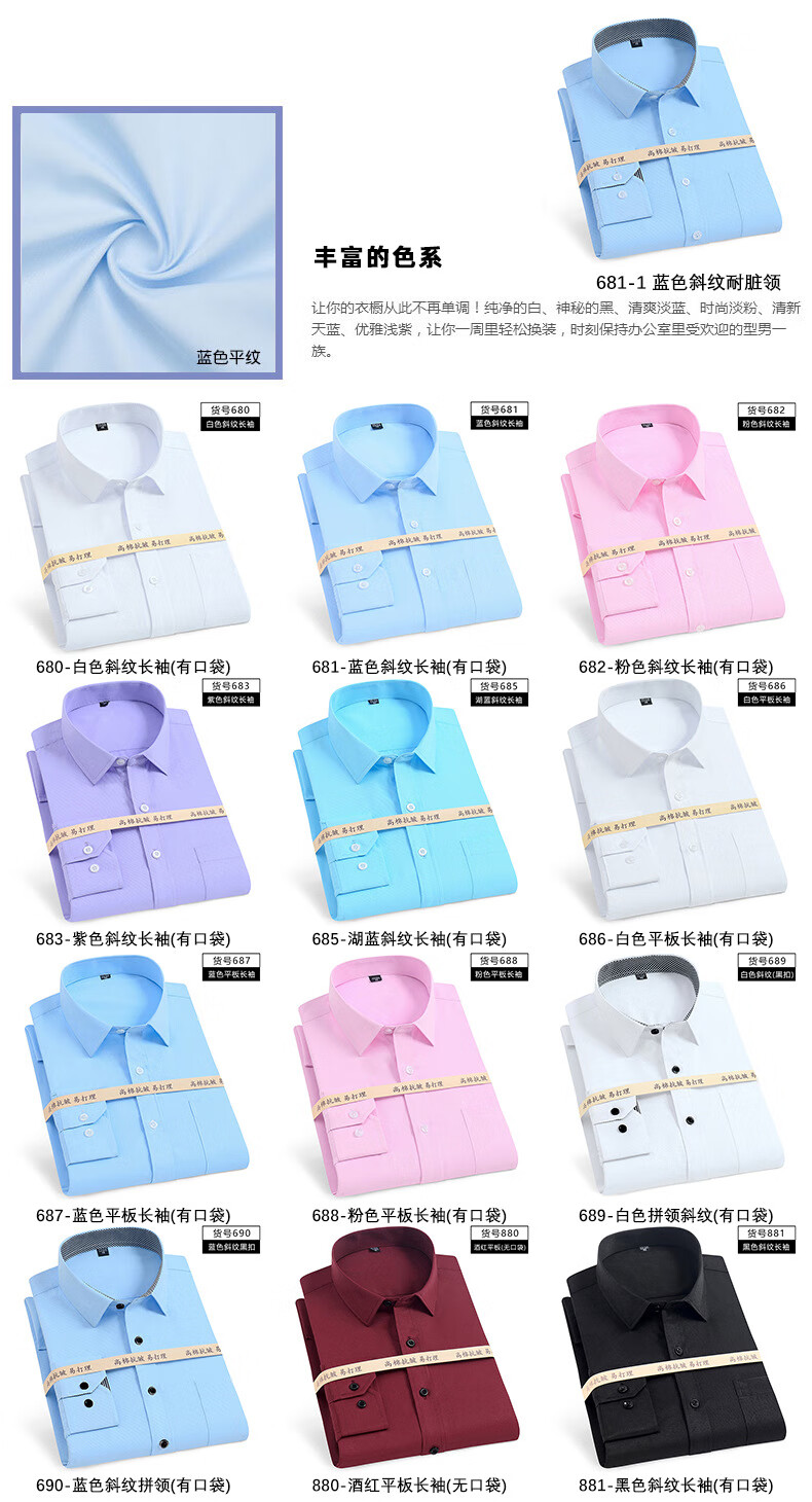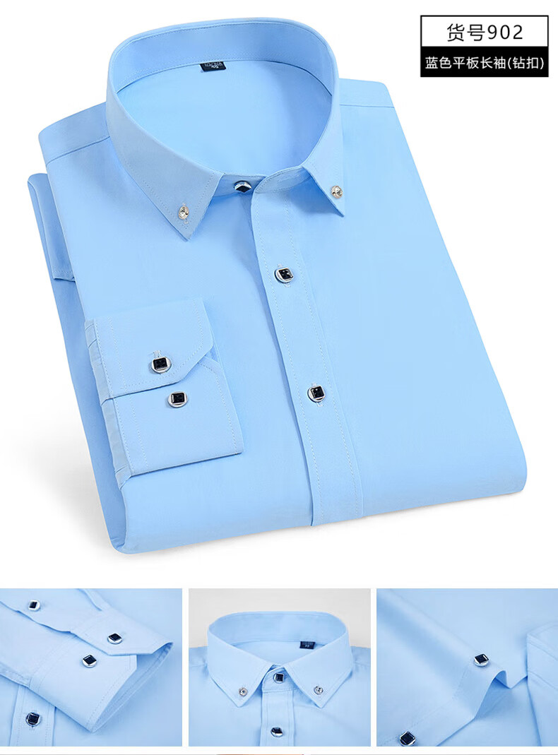 GY shirt men's long-sleeved white shirt business solid color cotton breathable shirt young and middle-aged professional wear formal wear Korean 686-1 white flat without pocket long sleeve 37