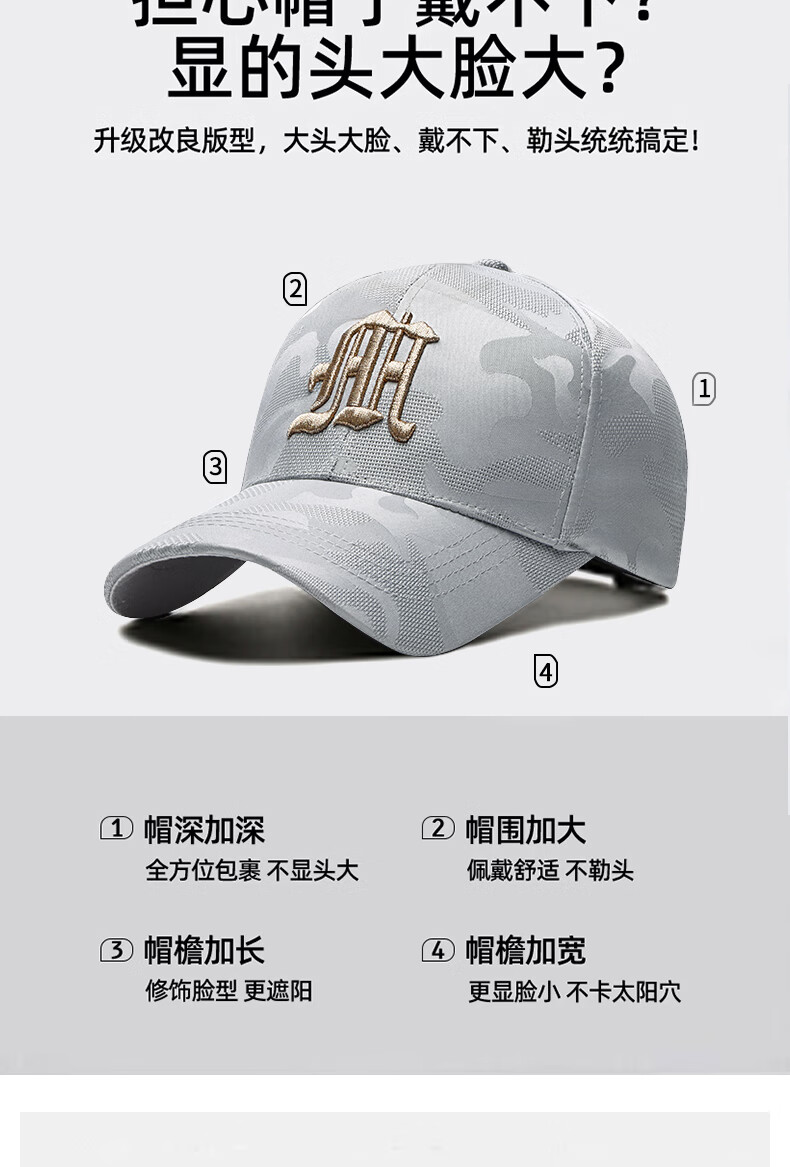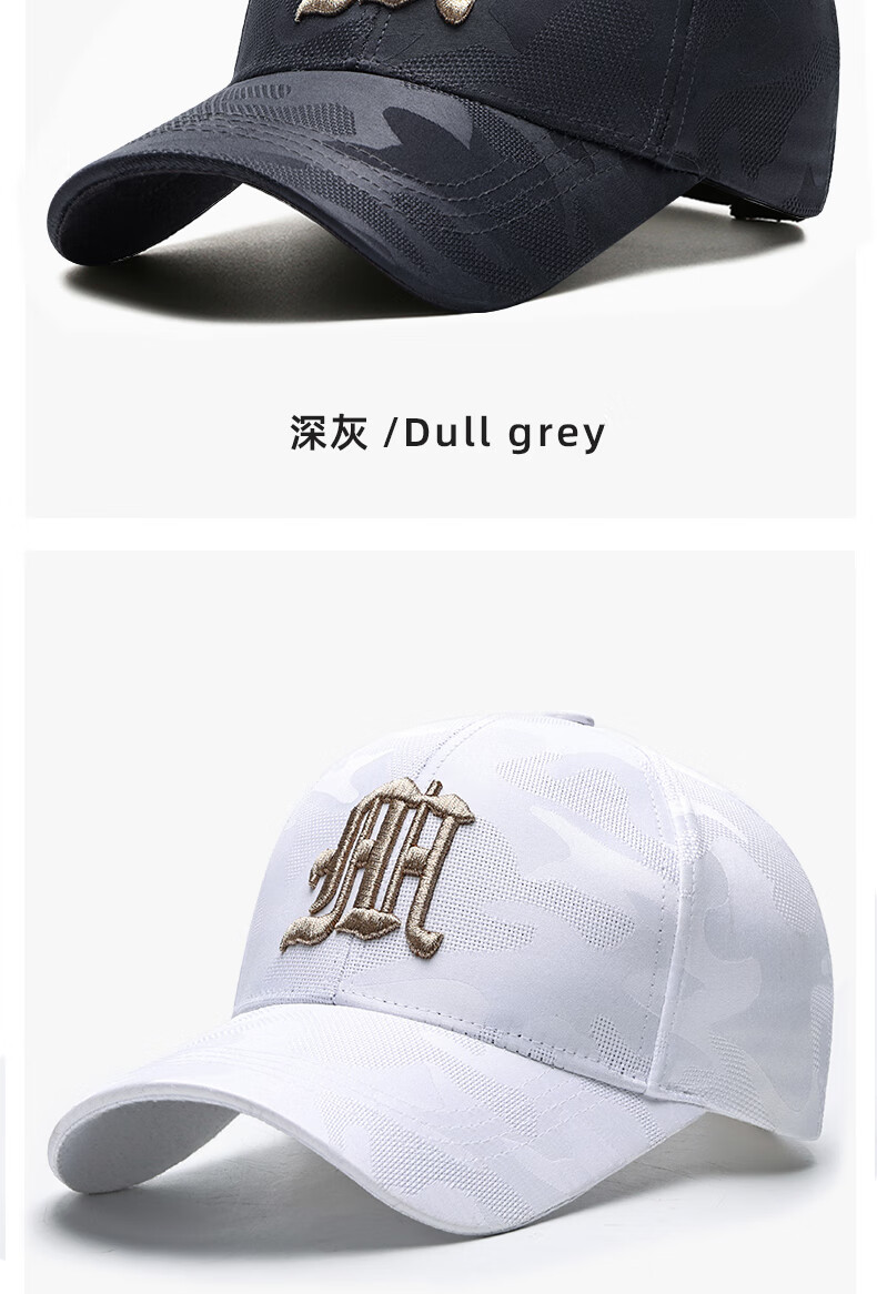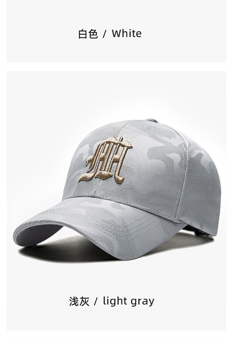 ESSONIO轻奢品牌男士帽子男新款潮流迷彩鸭舌帽户外出游钓鱼宽帽檐棒球帽 浅灰金标【暗纹迷彩 潮流百搭】 均码 可调节